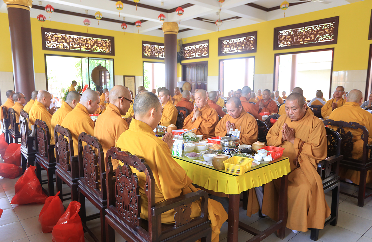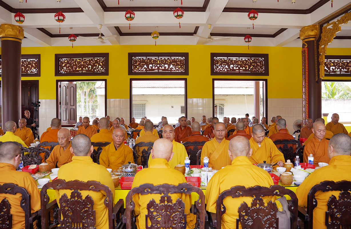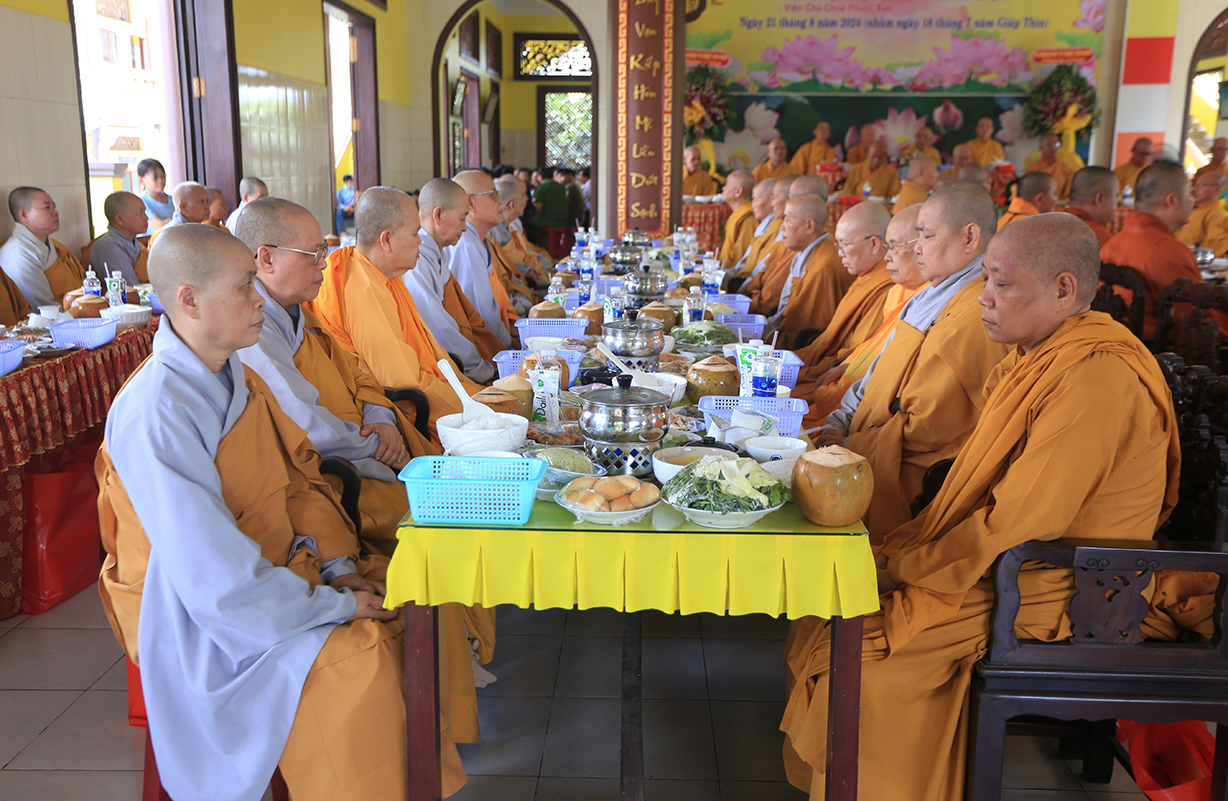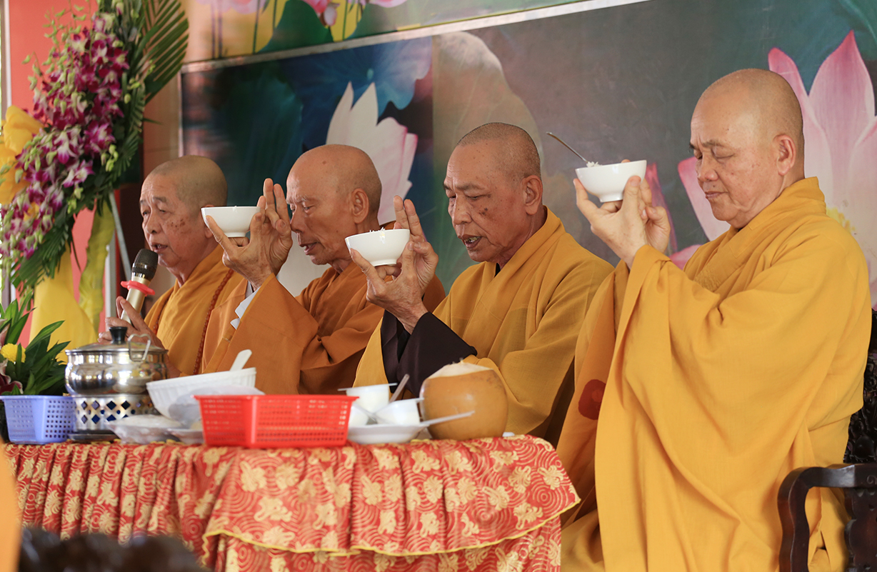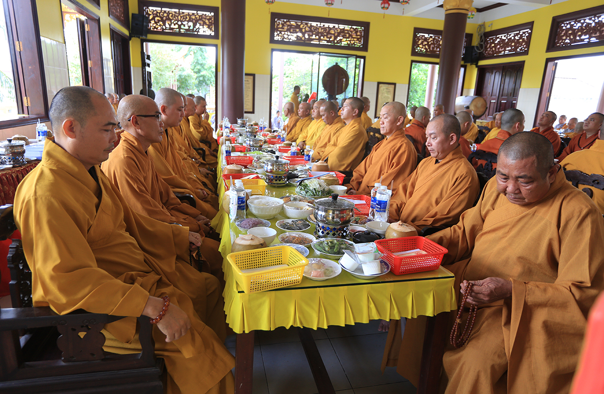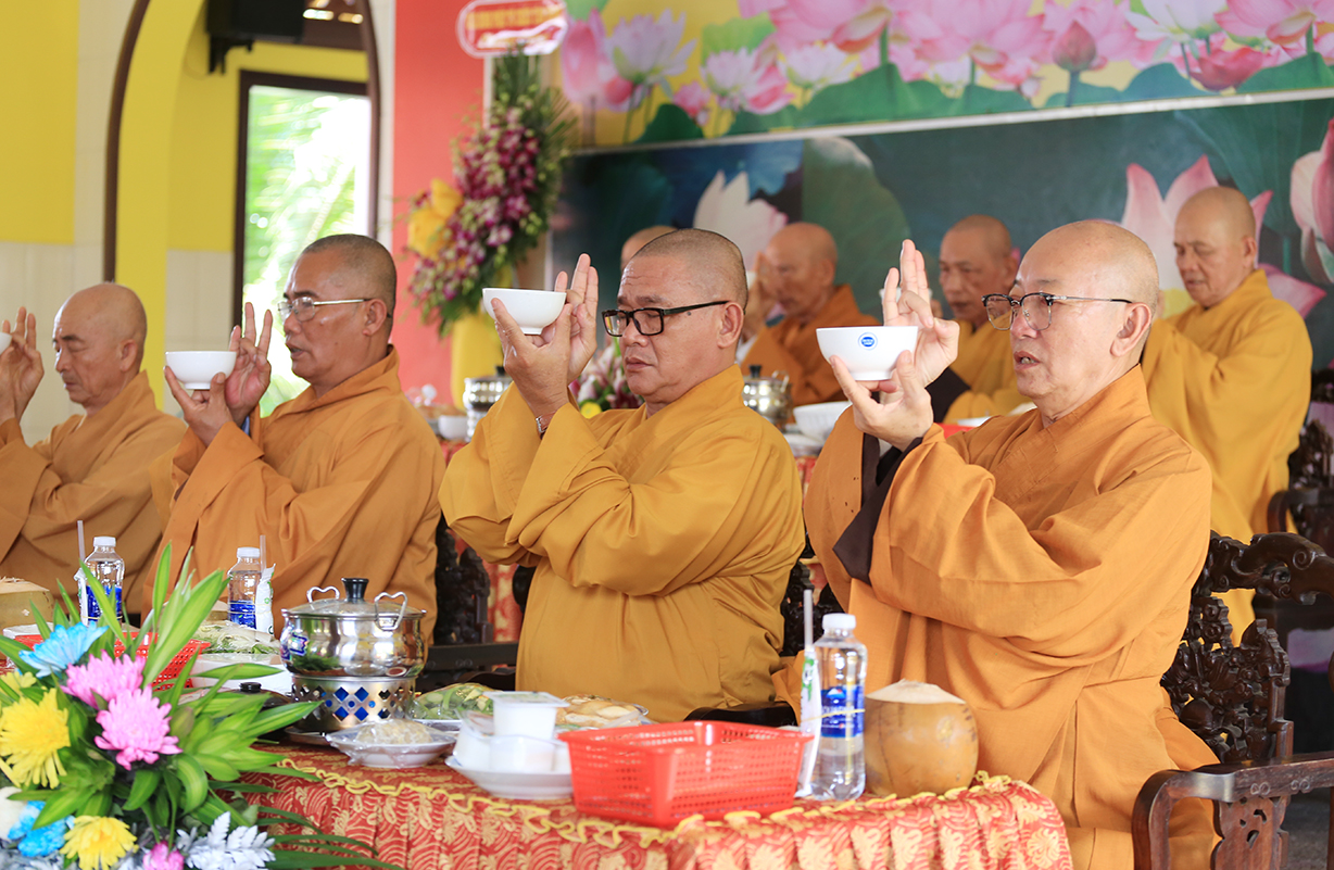 Nghi thức trai đường được diễn ra trong âm điệu chan hòa tình đạo vị, Hòa thượng Thích Thiện Tài đại lao chư Tôn đức Ban chứng minh khởi niệm cúng dường.