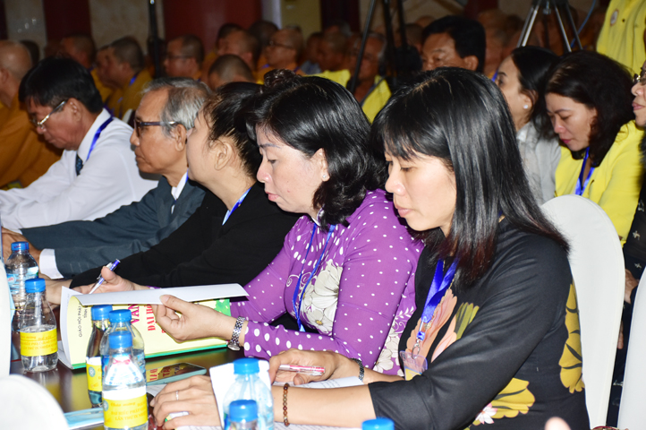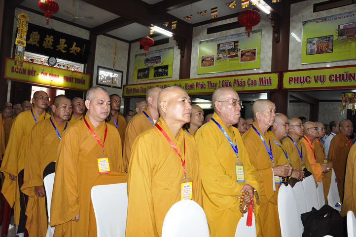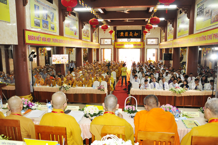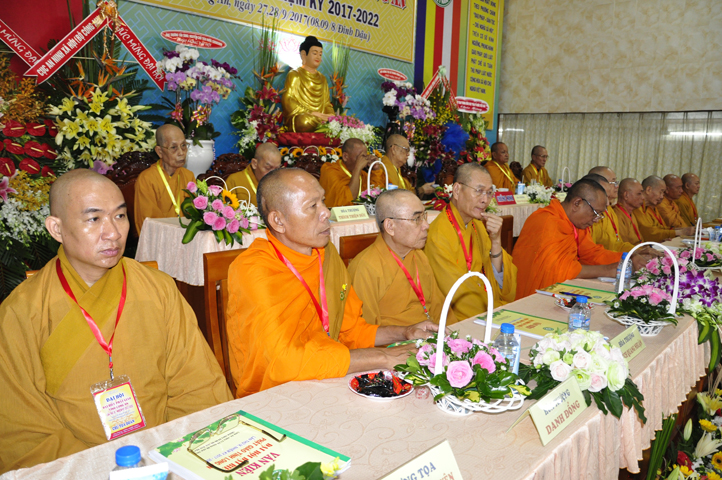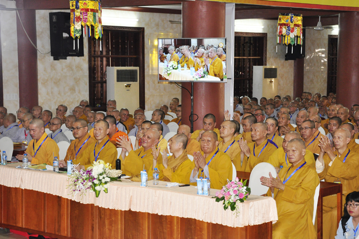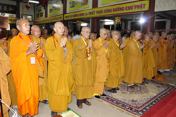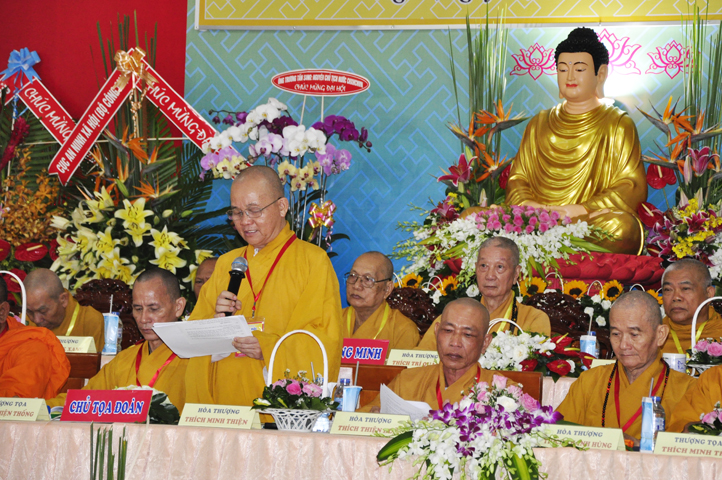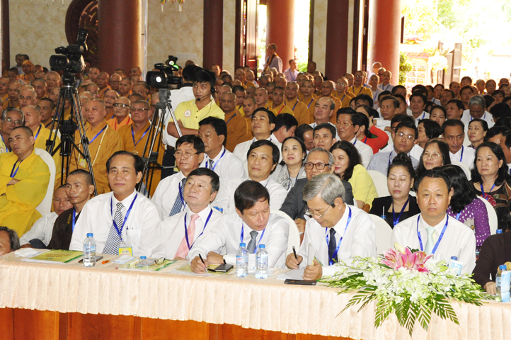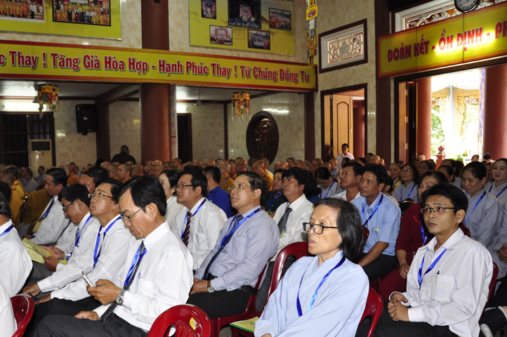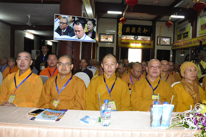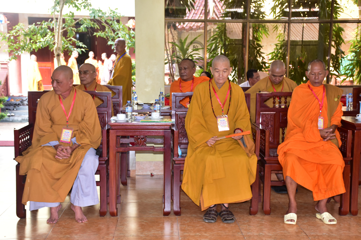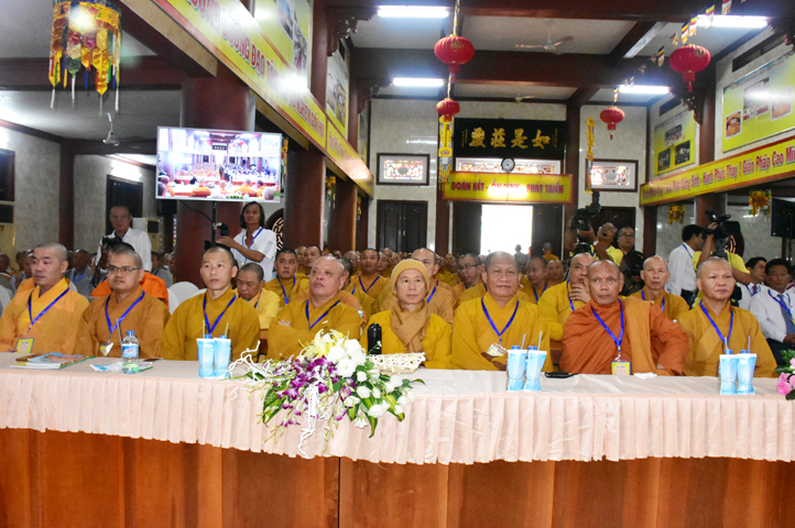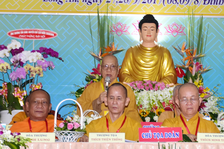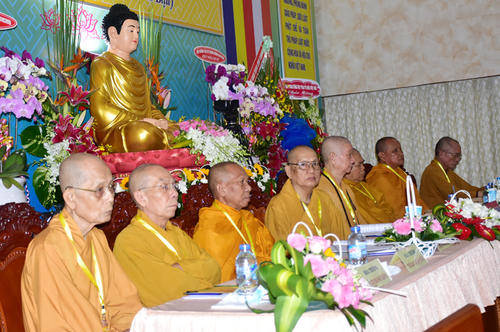 Chư Tôn đức Chủ tọa đoàn: TT. Thích Thiện Thống- Phó Tổng Thư ký kiêm Chánh VP.2 T Ư; HT. Danh Lung – UVTTHĐTS T.Ư, Phó Văn phòng 2 T.Ư; TT. Thích Thanh Phong- UVHĐTSTƯ , Trưởng Ban kinh tế tài chánh Trung ương GHPGVN; HT. Thích Hải Ấn- UVHĐTSTƯ, Phó Trưởng ban Thường trực Ban Văn hóa T.Ư, trú trì tổ đình Từ Đàm Huế, HT. Thích Quang Nhuận- UVTTH ĐTSTƯ, Phó ban thường trực Ban Hoằng pháp trung ương GHPGVN; HT.Thích Danh Đổng- Trưởng Ban trị sự GHPGVN tỉnh Kiên Giang , HT. Thích Thiện Huệ- Chứng minh BTS GHPGVN tỉnh Long An; HT. Thích Thanh Hùng- UVTTHĐTSTƯ, Phó ban Hoằng pháp trung ương; TT. Thích Phước Nguyên – Ủy viên HĐTS làm trụ trì chùa Huyền Trang Tp. HCM., HT. Thích Minh Thiện- UVHĐTSTƯ, Phó Ban Hoằng pháp trung ương, TT. Thích Minh Thọ- Ủy viên HĐTSTƯ, TT. Thích Giác Nguyên, TT. Thích Quảng Tâm.