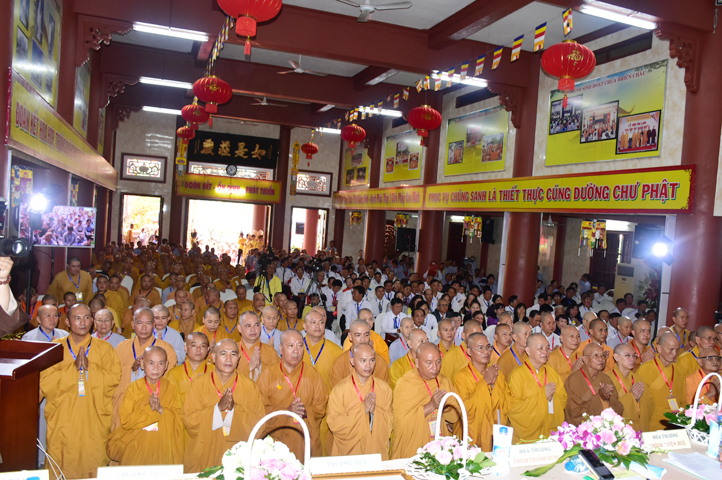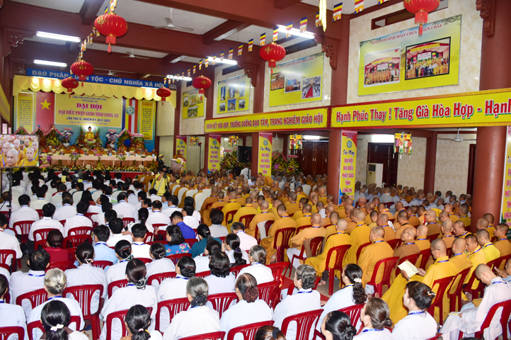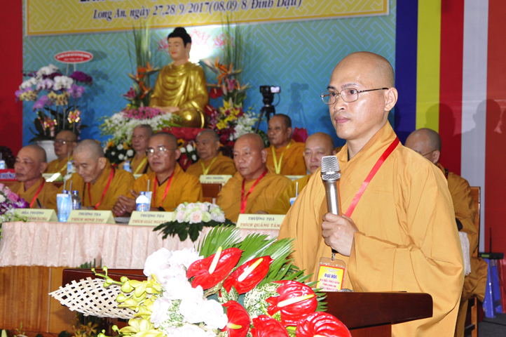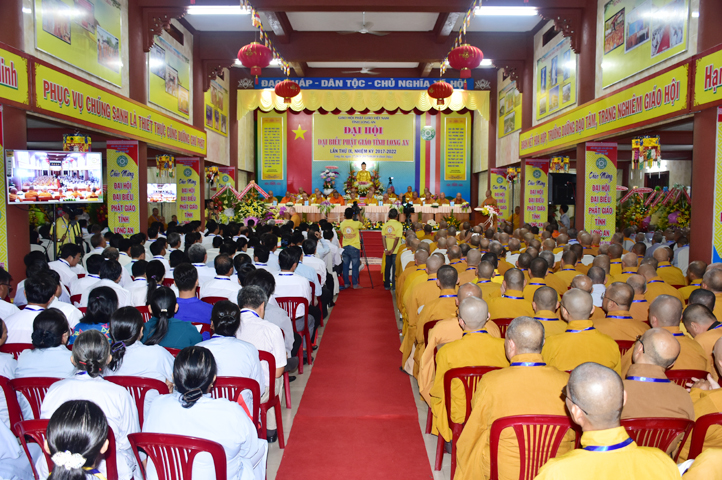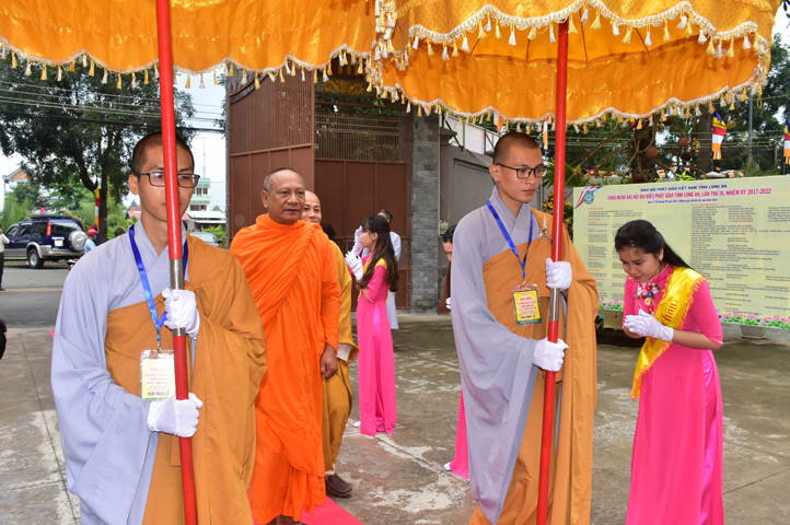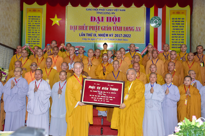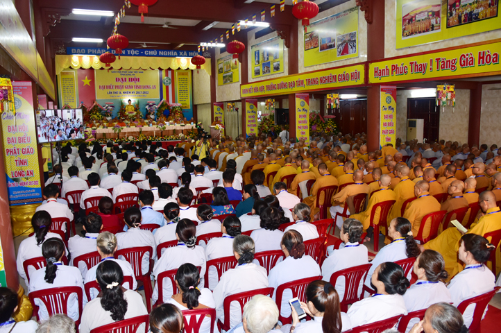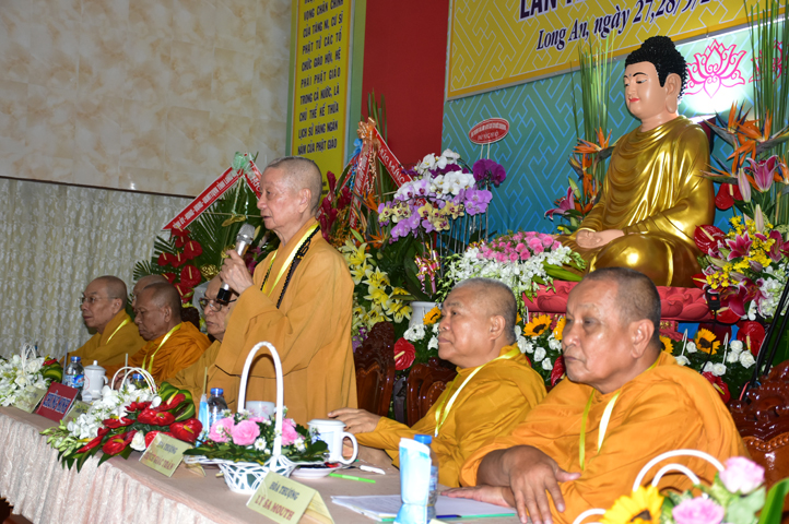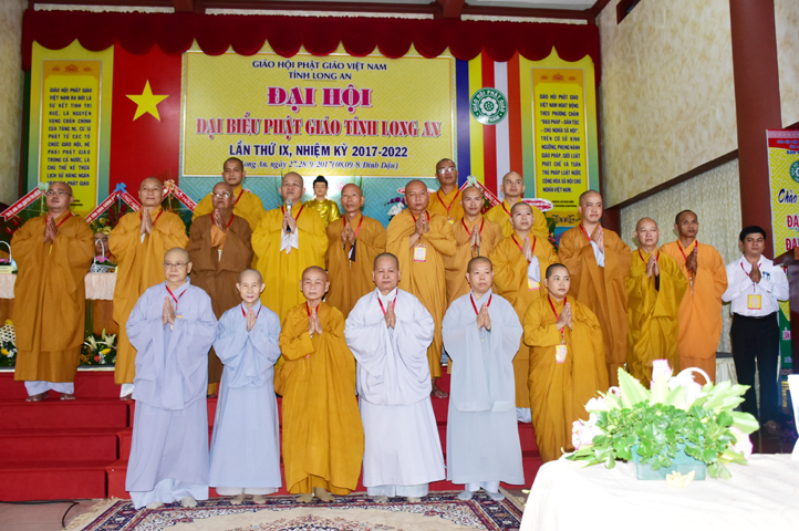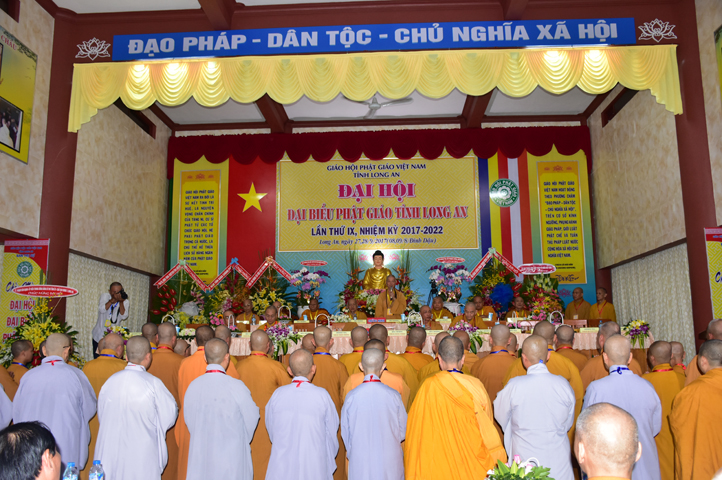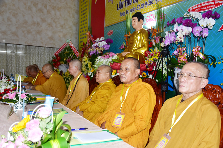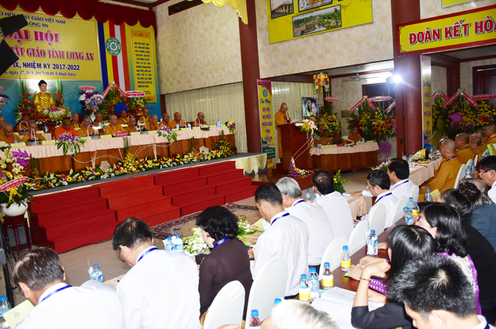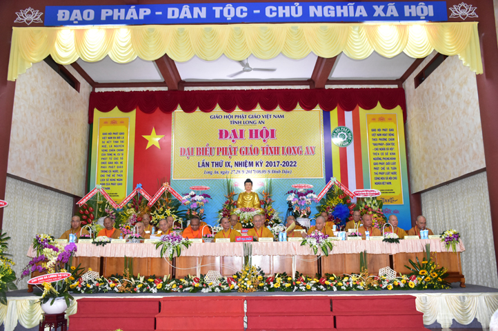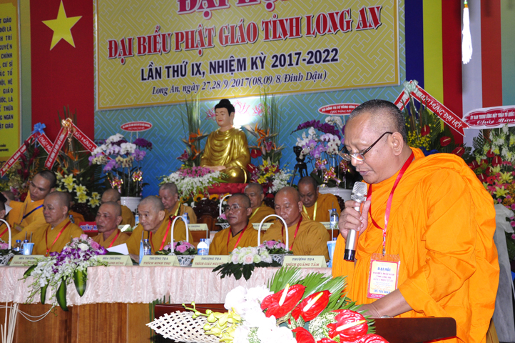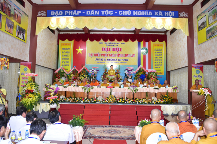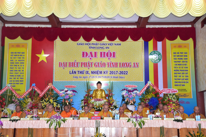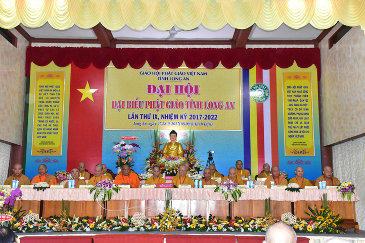 Sau phần cung nghinh chư Tôn đức Giáo phẩm, TT. Thích Minh Thọ -Thường trực Phó Ban Trị sự Phật giáo tỉnh Long An tuyên bố lý do tổ chức Đại hội. Tiếp theo, chư Tôn đức Ban Kiểm soát đã kính trình chư Tôn đức Giáo phẩm, Chủ tọa đoàn danh sách số lượng 769 vị đại biểu chư Tăng Ni và 1000 Phật tử tham dự Đại hội. Với tỷ lệ yêu cầu phù hợp với số Đại biểu tham dự, Đại hội Phật giáo Long An đầy đủ tư cách pháp nhân, pháp lý tiến hành Hội nghị chính thức lần thứ IX nhiệm kỳ (2017-2022).