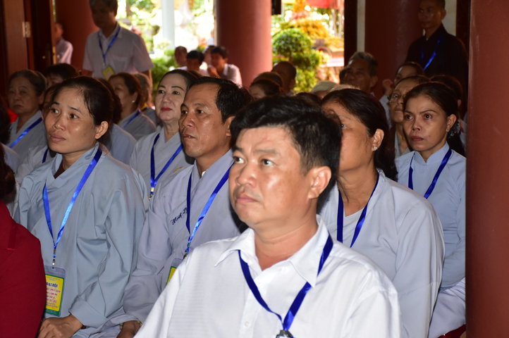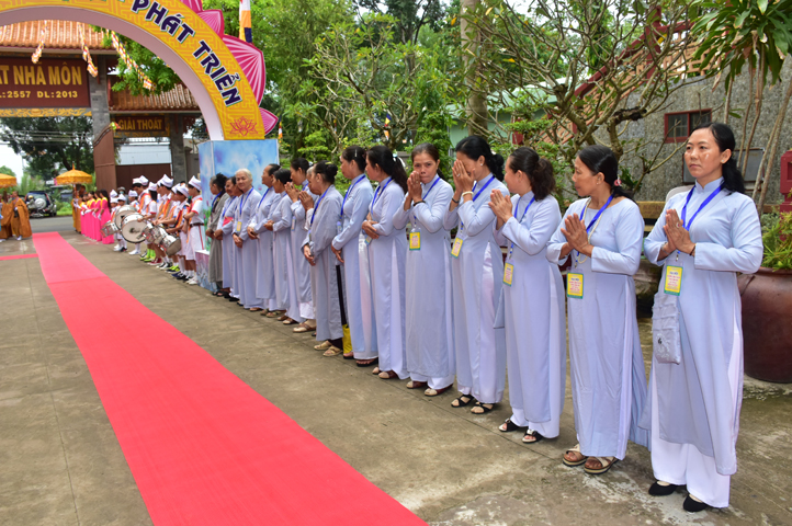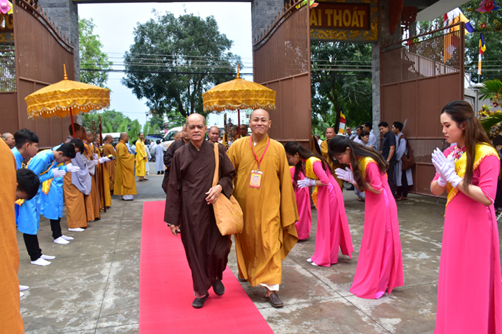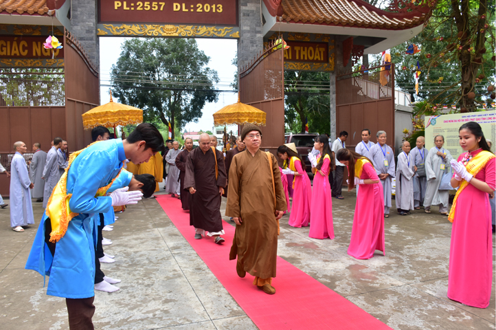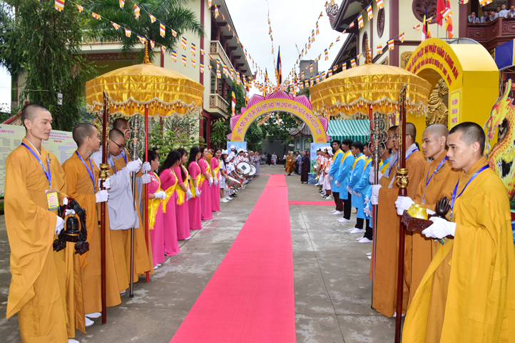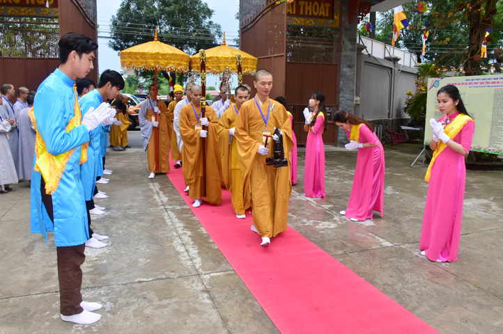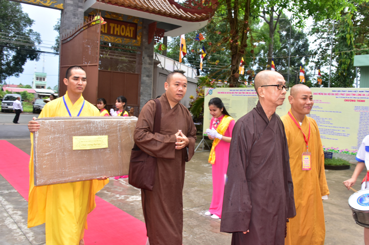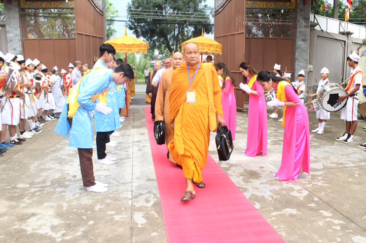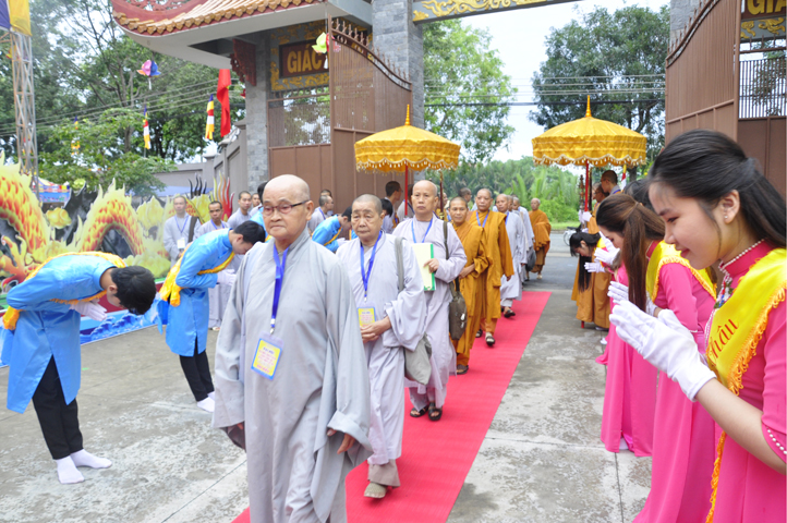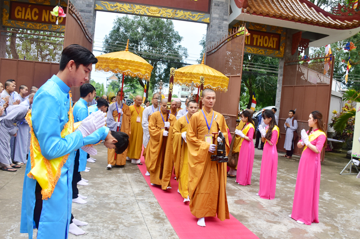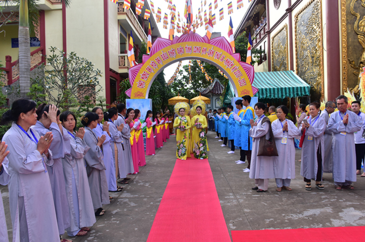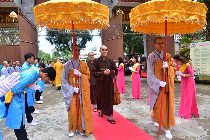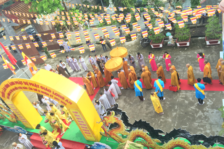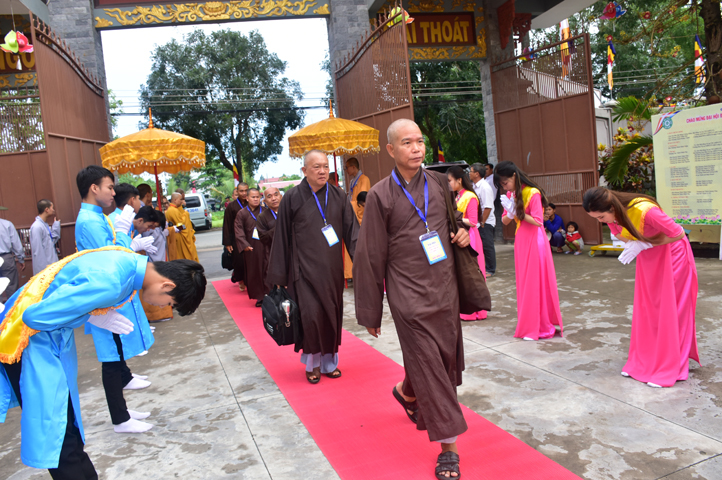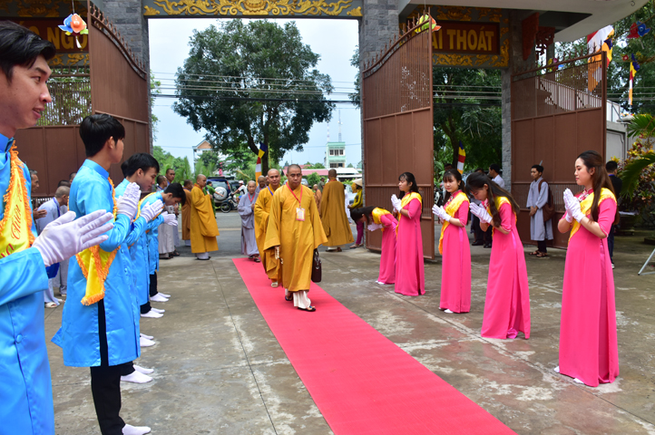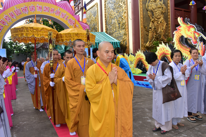 Từ 6g sáng, Tăng Ni sinh Trường Trung cấp Phật học tại 2 cơ sở chùa Thiên Khánh, chùa Thiên Phước và các Phật tử xa gần đã tập trung đông đủ. Chư Tôn đức trong các Ban điều hành cũng nhanh chóng đảm nhận nhiệm vụ đã được phân công. Đoàn nghi lễ thanh thiếu niên trang nghiêm đội hình túc trực tại cổng chính để cung nghinh chư Tôn đức Giáo phẩm, chư Tôn đức trong các Ban Trị sự, chư Tôn đức các tỉnh, thành, các vị khách quý lãnh đạo các Ban, Ngành đoàn thể tỉnh Long An và Tôn giáo bạn quang lâm.