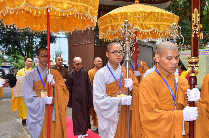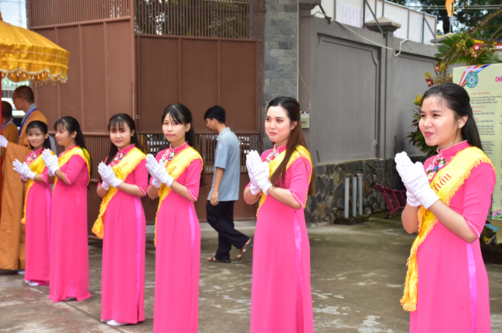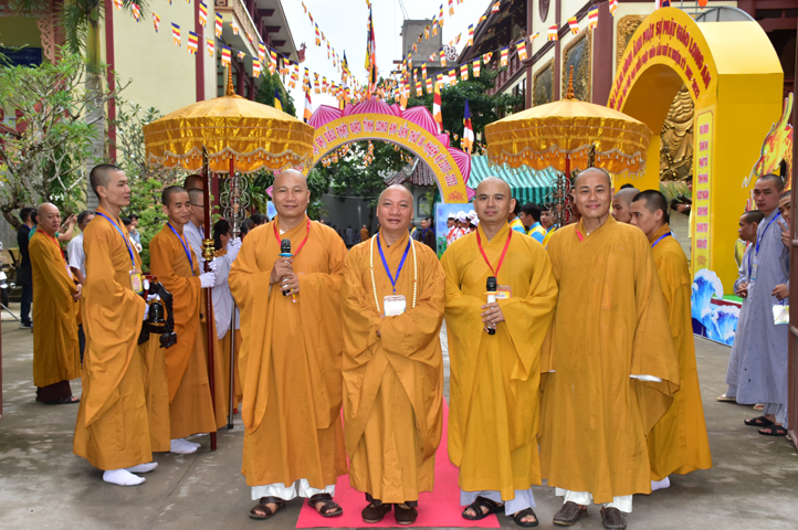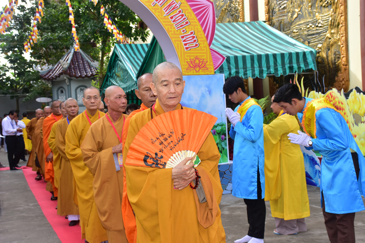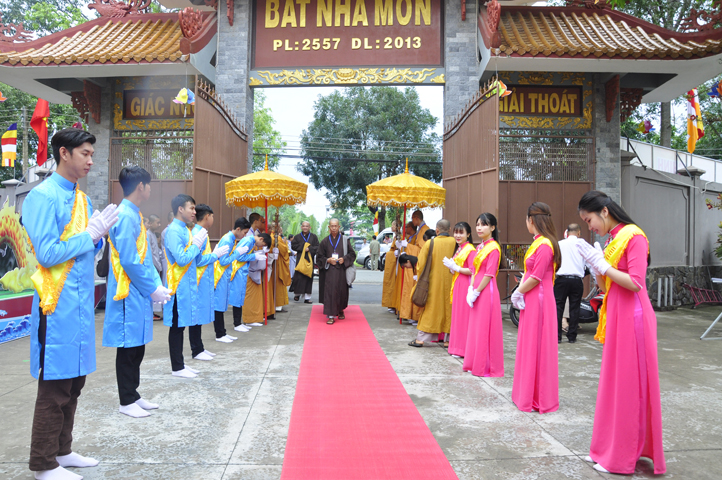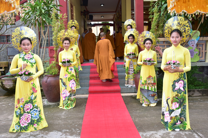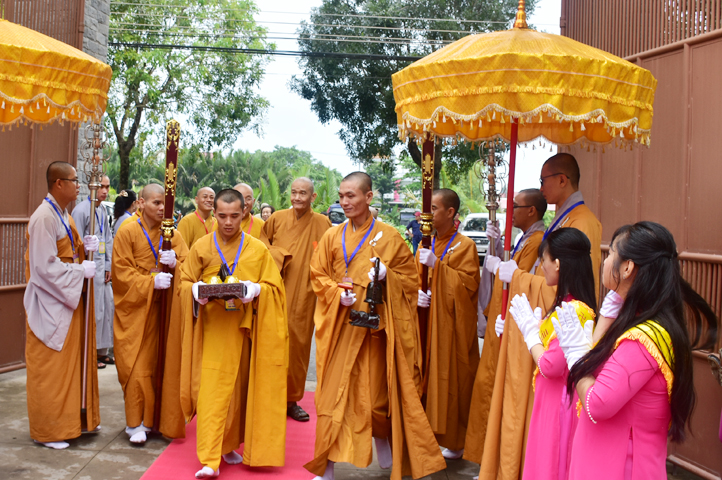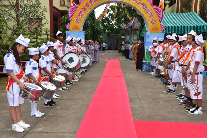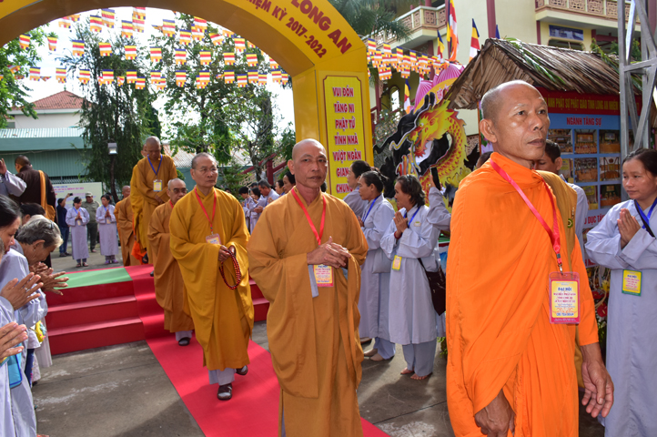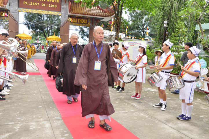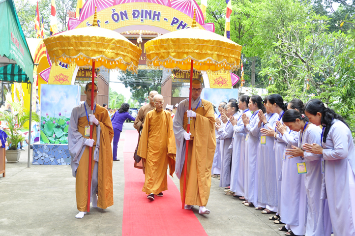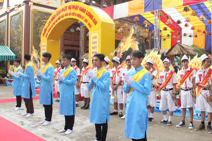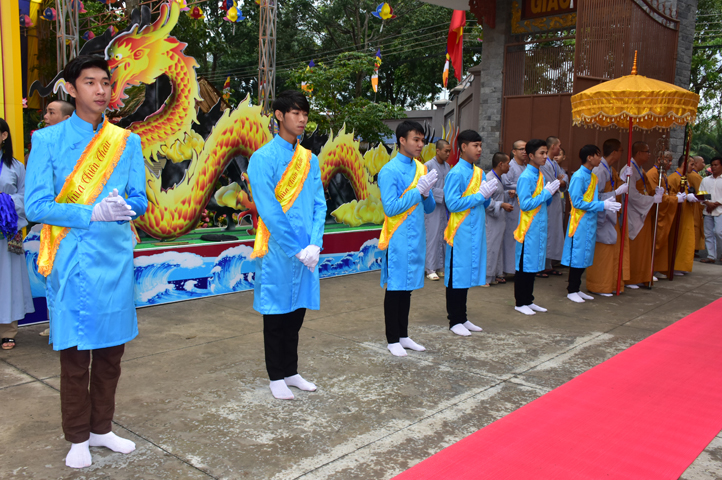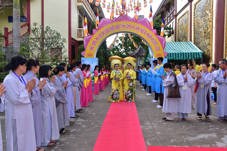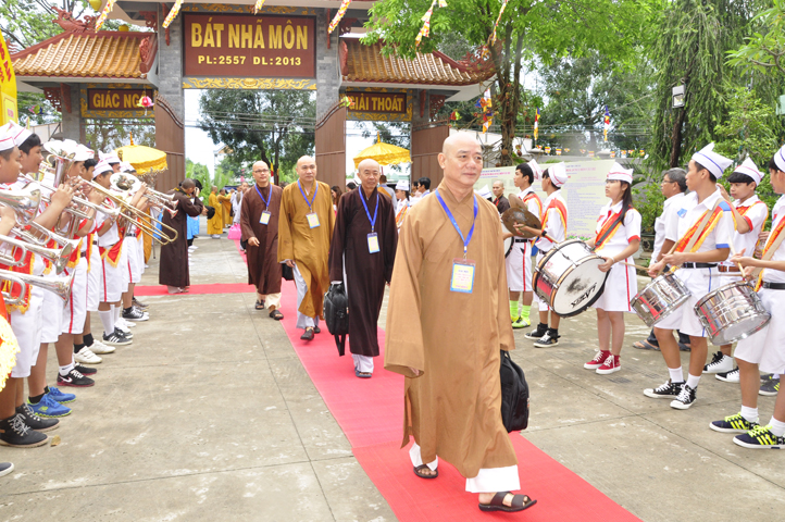 Từ 6g sáng, Tăng Ni sinh Trường Trung cấp Phật học tại 2 cơ sở chùa Thiên Khánh, chùa Thiên Phước và các Phật tử xa gần đã tập trung đông đủ. Chư Tôn đức trong các Ban điều hành cũng nhanh chóng đảm nhận nhiệm vụ đã được phân công. Đoàn nghi lễ thanh thiếu niên trang nghiêm đội hình túc trực tại cổng chính để cung nghinh chư Tôn đức Giáo phẩm, chư Tôn đức trong các Ban Trị sự, chư Tôn đức các tỉnh, thành, các vị khách quý lãnh đạo các Ban, Ngành đoàn thể tỉnh Long An và Tôn giáo bạn quang lâm.
