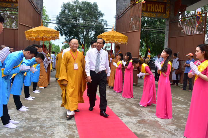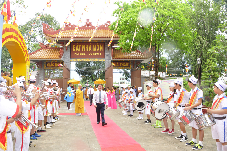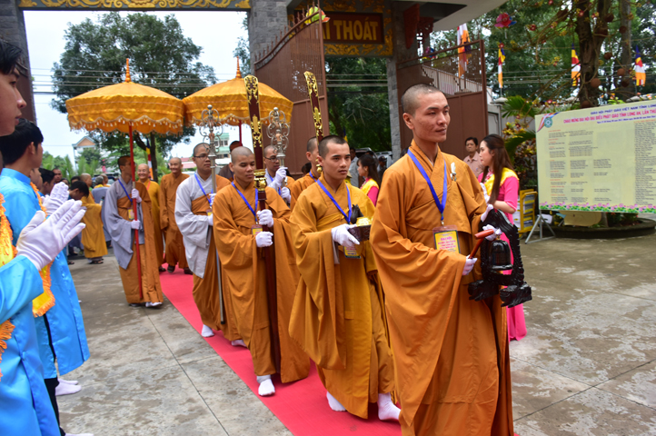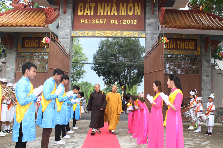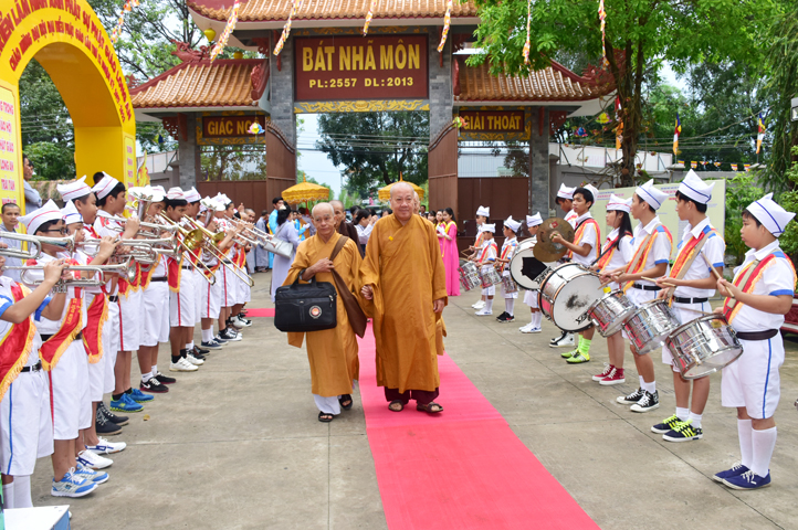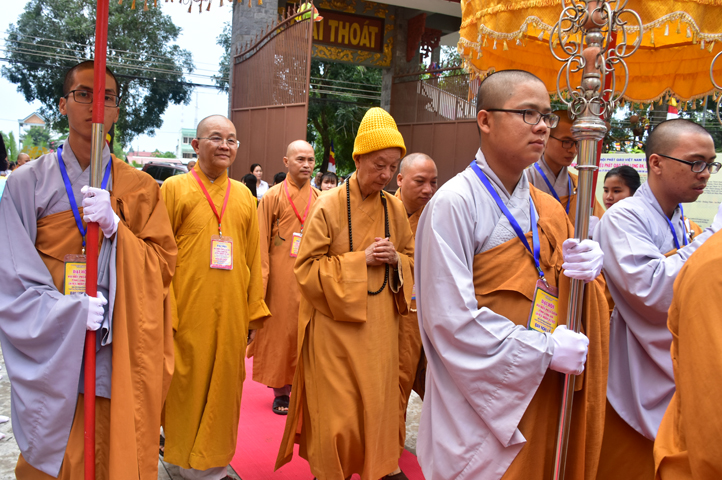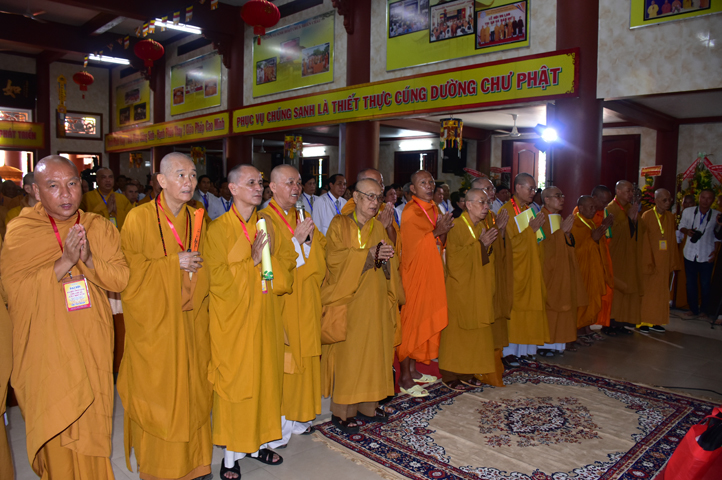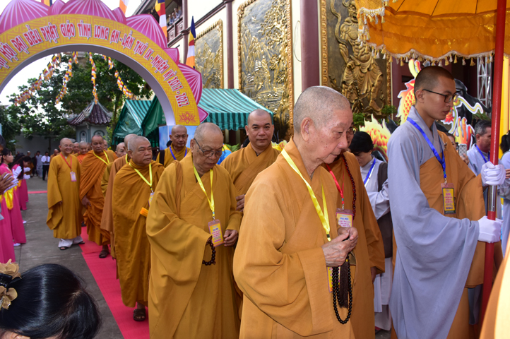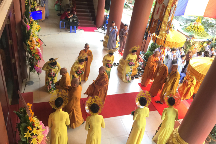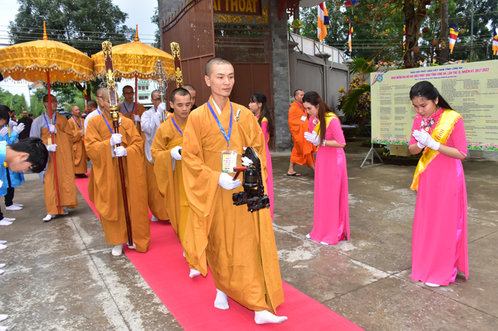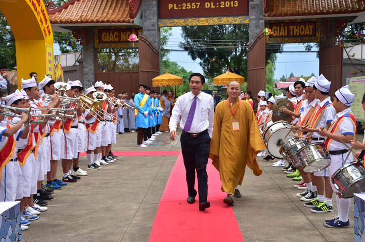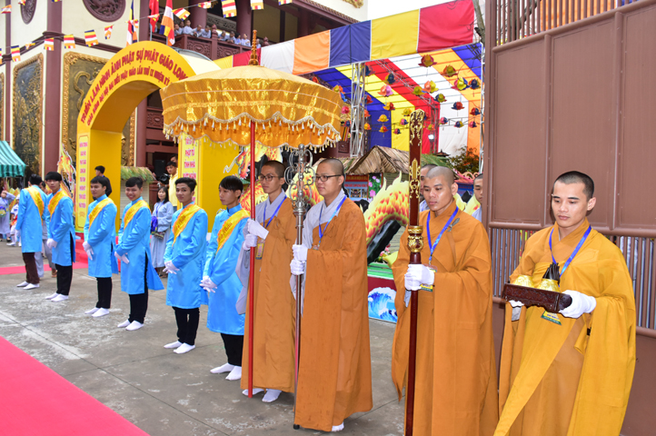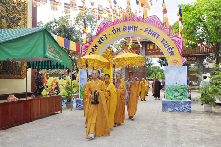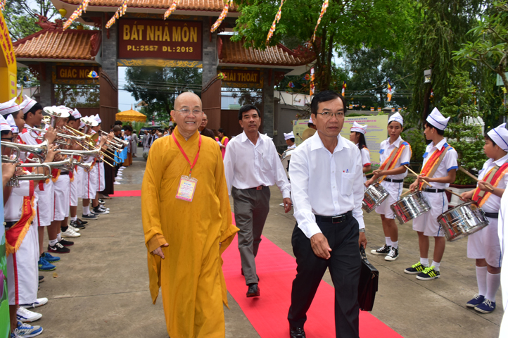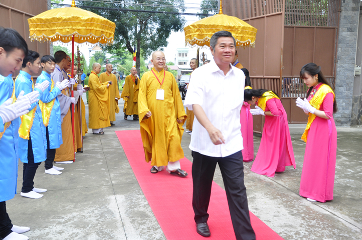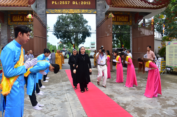 Từ 6g sáng, Tăng Ni sinh Trường Trung cấp Phật học tại 2 cơ sở chùa Thiên Khánh, chùa Thiên Phước và các Phật tử xa gần đã tập trung đông đủ. Chư Tôn đức trong các Ban điều hành cũng nhanh chóng đảm nhận nhiệm vụ đã được phân công. Đoàn nghi lễ thanh thiếu niên trang nghiêm đội hình túc trực tại cổng chính để cung nghinh chư Tôn đức Giáo phẩm, chư Tôn đức trong các Ban Trị sự, chư Tôn đức các tỉnh, thành, các vị khách quý lãnh đạo các Ban, Ngành đoàn thể tỉnh Long An và Tôn giáo bạn quang lâm.