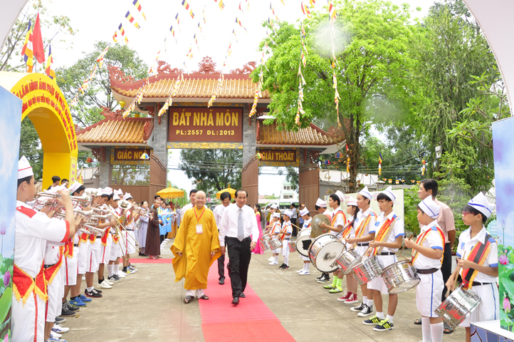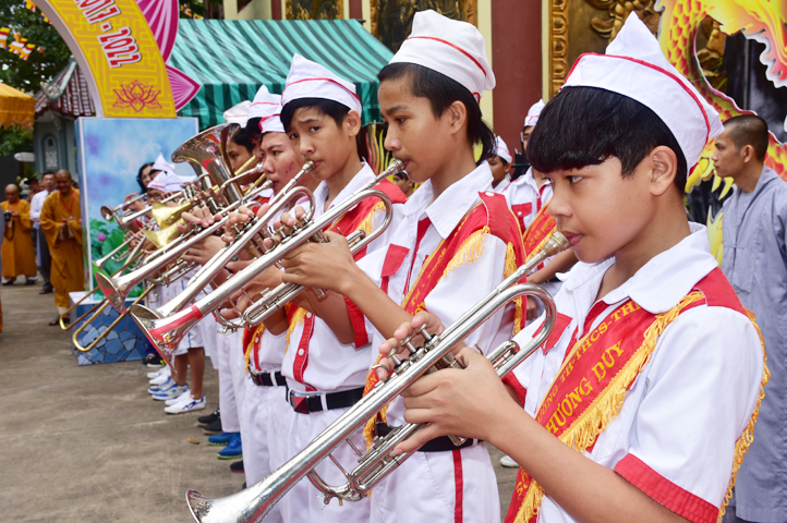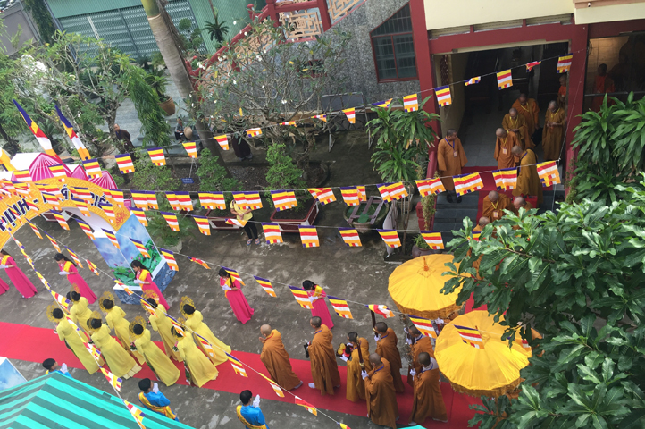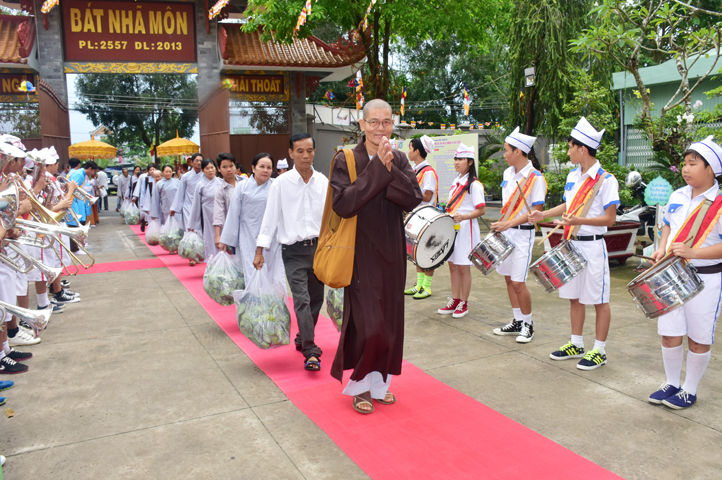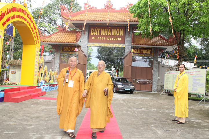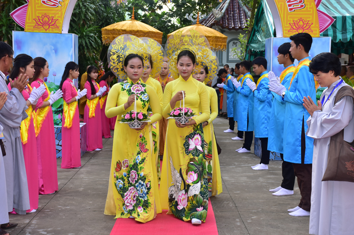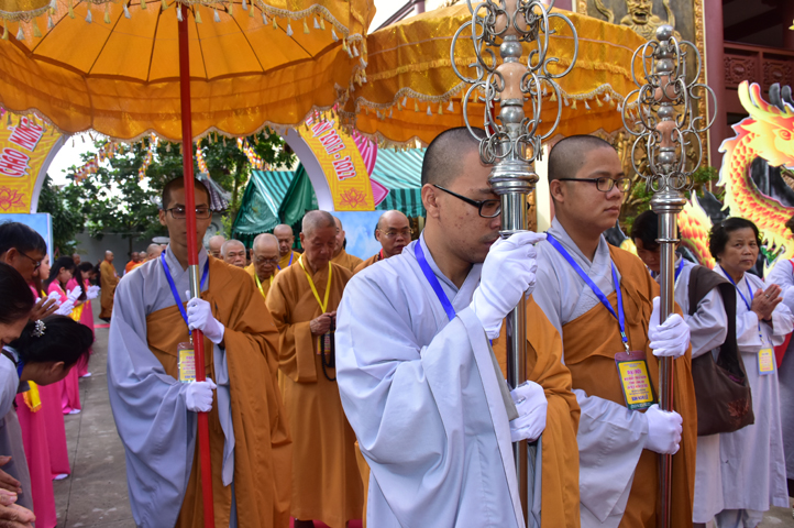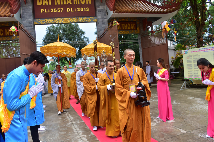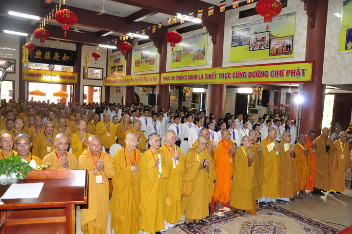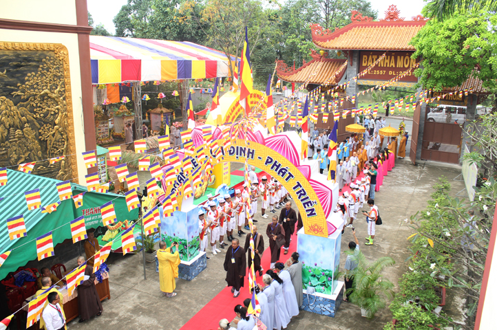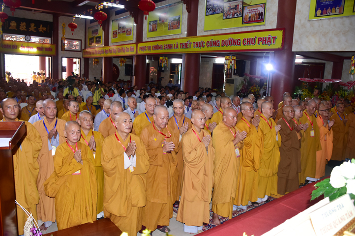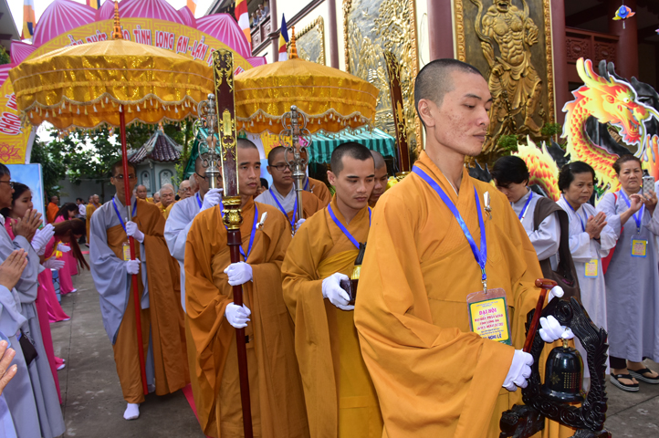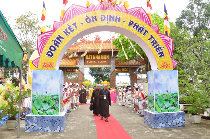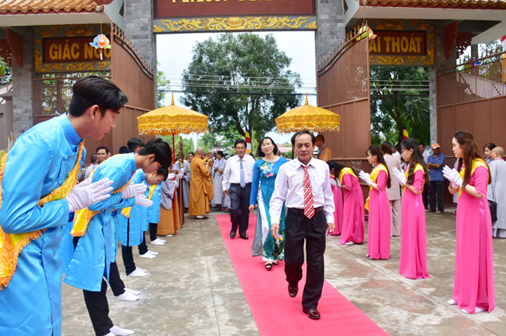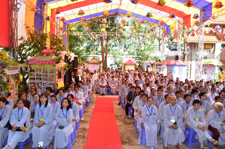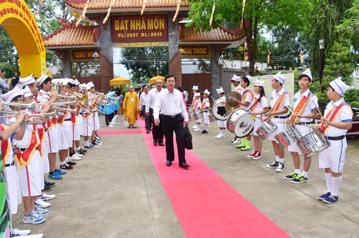 Từ 6g sáng, Tăng Ni sinh Trường Trung cấp Phật học tại 2 cơ sở chùa Thiên Khánh, chùa Thiên Phước và các Phật tử xa gần đã tập trung đông đủ. Chư Tôn đức trong các Ban điều hành cũng nhanh chóng đảm nhận nhiệm vụ đã được phân công. Đoàn nghi lễ thanh thiếu niên trang nghiêm đội hình túc trực tại cổng chính để cung nghinh chư Tôn đức Giáo phẩm, chư Tôn đức trong các Ban Trị sự, chư Tôn đức các tỉnh, thành, các vị khách quý lãnh đạo các Ban, Ngành đoàn thể tỉnh Long An và Tôn giáo bạn quang lâm.