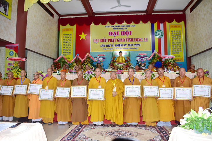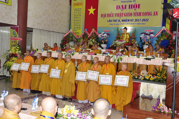 Ngoài ra, để khích lệ chư Tăng Ni thuộc các đơn vị Ban Trị sự huyện, thị có công hoàn thành các Phật sự trong nhiệm kỳ VIII, Thường trực Ban Trị sự lãnh đạo Phật giáo tỉnh Long An đã quyết định trao tặng bằng tuyên dương công đức cho 58 tập thể và 62 cá nhân Tăng Ni trực thuộc Ban Trị sự GHPGVN tỉnh Long An.