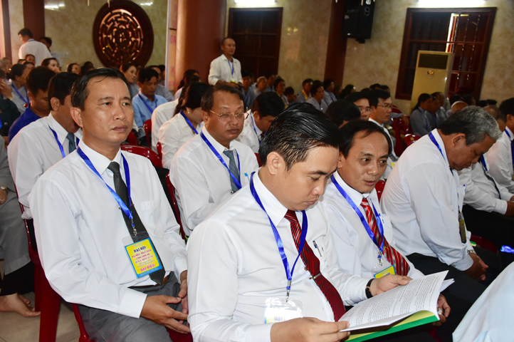 Diễn tiến nội dung, TT. Thích Minh Thọ kính trình chư Tôn đức văn bản báo cáo tổng kết các hoạt động Phật sự tiêu biểu của Phật giáo Long An trong nhiệm kỳ VIII (2012-2017). Với số lượng 1574 Tăng Ni nội tại, 29 ngàn Phật tử tham gia tu học và khoảng 2000 thanh thiếu niên dự các khóa tu Mùa hè, Hội trại; 234. 300 Phật tử quy y Tam Bảo …, Phật giáo Long An hằng năm duy trì 9 trú xứ An cư kiết hạ, quan tâm giải quyết 246 cơ sở tự viện được cấp phép sử dụng đất, và hướng dẫn Tăng Ni tham gia nhiều Phật sự từ thiện, làm tốt đẹp cho Phật giáo tỉnh nhà.