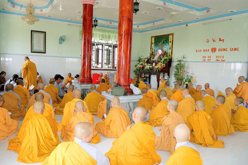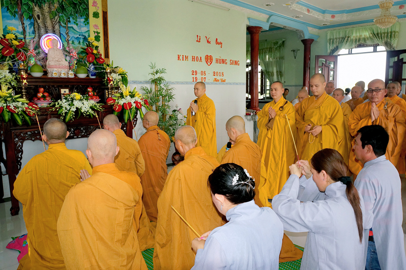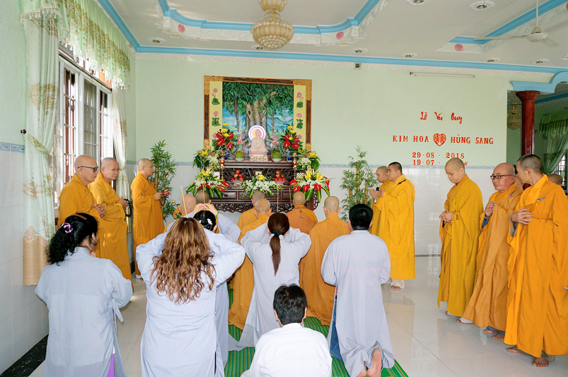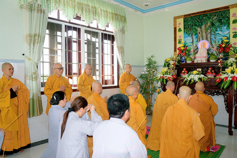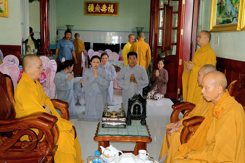 Đáp lại tấm lòng tha thiết hoài vọng của Phật tử và gia đình, HT. Thích Minh Thiện –UVHĐTS, Trưởng phó Ban Hoằng pháp TW, Trưởng Ban Trị sự GHPGVN tỉnh Long An, Chứng minh chủ lễ đàn tràng ân cần trân trọng ban đạo từ chúc nguyện.