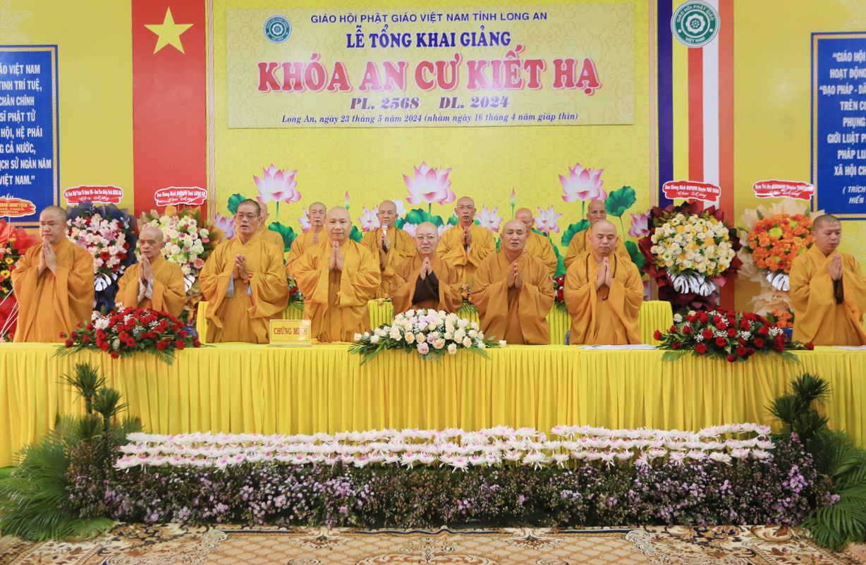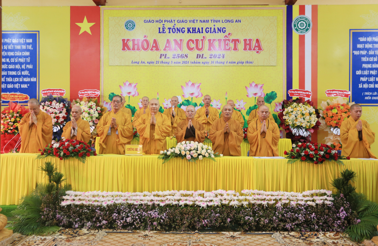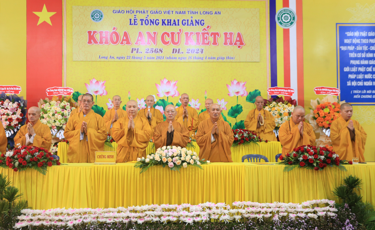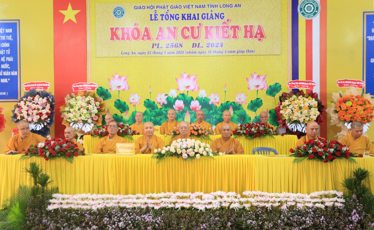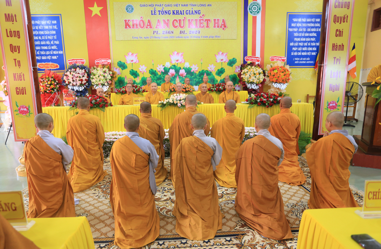 Thực hiện theo hướng dẫn của Hội đồng Trị sự Trung ương GHPGVN tại Thông bạch số 089/TBHĐTS ngày 28 tháng 3 năm 2024 về việc tổ chức An cư Kiết hạ PL. 2568 – DL 2024. Thực hiện theo kế hoạch tổ chức khóa An cư Kiết Hạ của Phật giáo tỉnh Long An năm 2024. Sáng ngày 23 tháng 5 năm 2024 (nhằm ngày 16 tháng 4 năm Giáp Thìn) Thường trực Ban trị sự GHPGVN tỉnh Long An long trọng tổ chức lễ tổng Khai giảng Khóa An cư cho 13 trú xứ An cư tỉnh Long An tại Chùa Kim Cang, huyện Thủ thừa, tỉnh Long An.