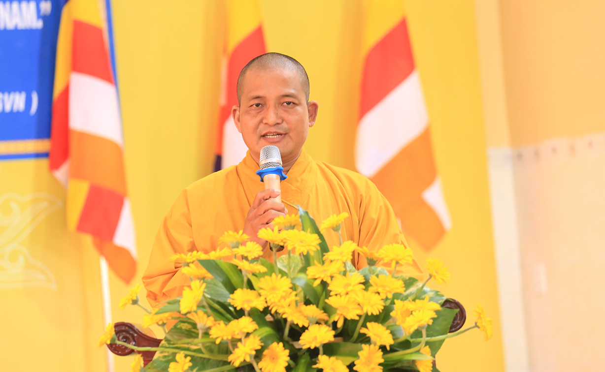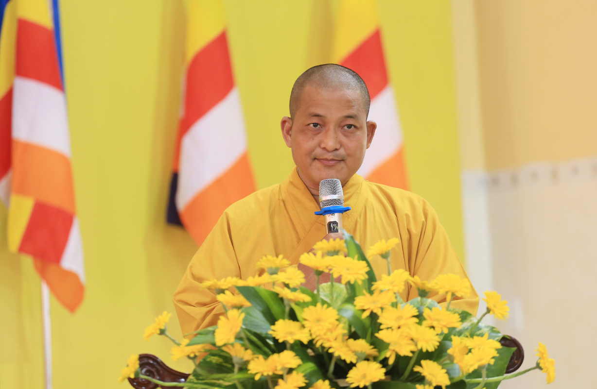 Đại đức Thích Lệ Duyên – Phó trưởng Ban, Chánh Thư ký BTS GHPGVN tỉnh Long An đã phát biểu cảm tạ, tri ân chư tôn đức hoàn mãn buổi lễ.