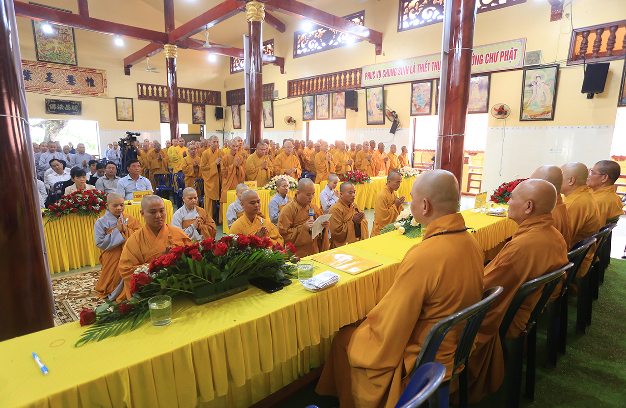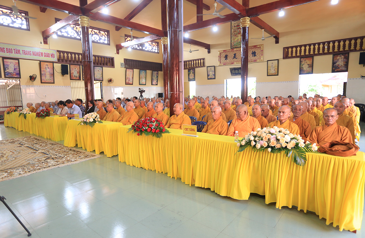 Ban đạo từ tail buổi lễ, Hòa thượng Thích Thiện Huệ – Thành viên HĐCM, Chứng ming BTS GHPGVN tỉnh Long An, Hòa thượng hoan hỷ với thời khóa tu học được báo cáo trong chương trinh tu học tại các Hạ trường, Hòa thượng nhấn mạnh việc chuyên tu tu tập của Tăng, Ni trong thời điểm hiện tại để tăng cường đạo lực nơi tự tâm của mình, để giữ vững hoạt động Tăng đoàn, kế thừa mạng mạch Phật pháp tại thế gian, Hòa thượng mong rằng trong ba tháng an cư chư Hành giả sẽ chuyên tâm tu học thật tốt để gia cố niềm tin Tam bảo đối với tín đồ Phật tử trước những biến cố xã hội mà Phật giáo đang chịu ảnh hưởng.
