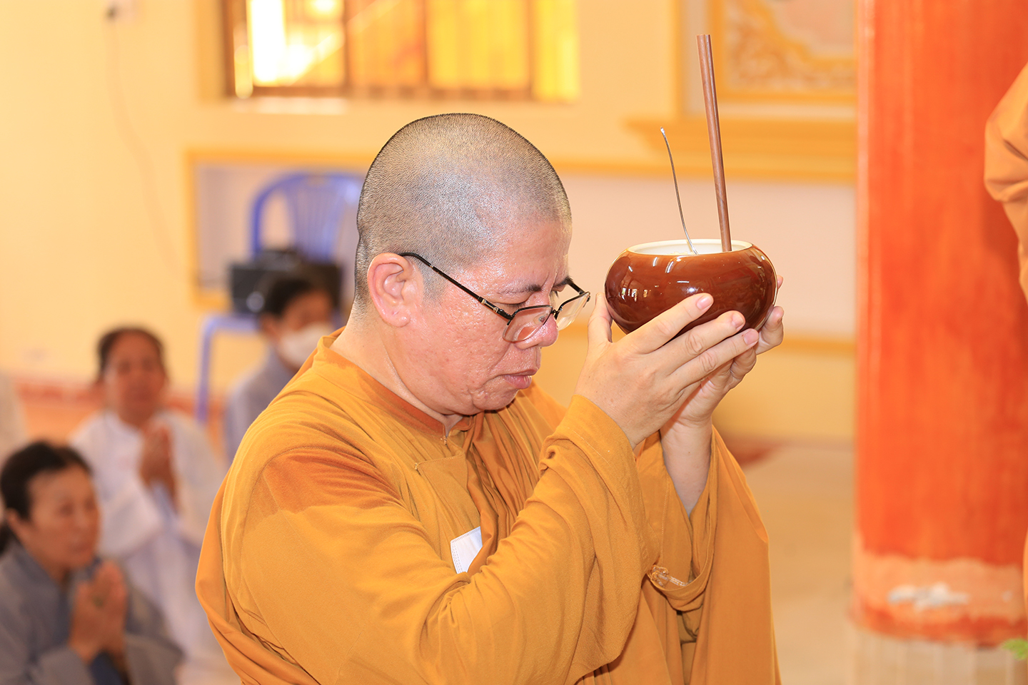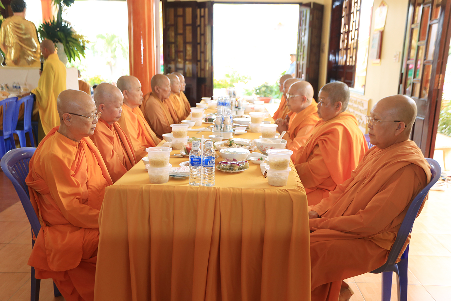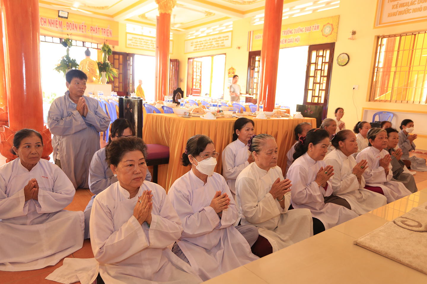 Tại buổi lễ môn đồ pháp quyến cung thỉnh chư Tôn đức h sư thực hiện khóa lễ tụng kinh, cúng Ngọ, cúng Tiến giác linh