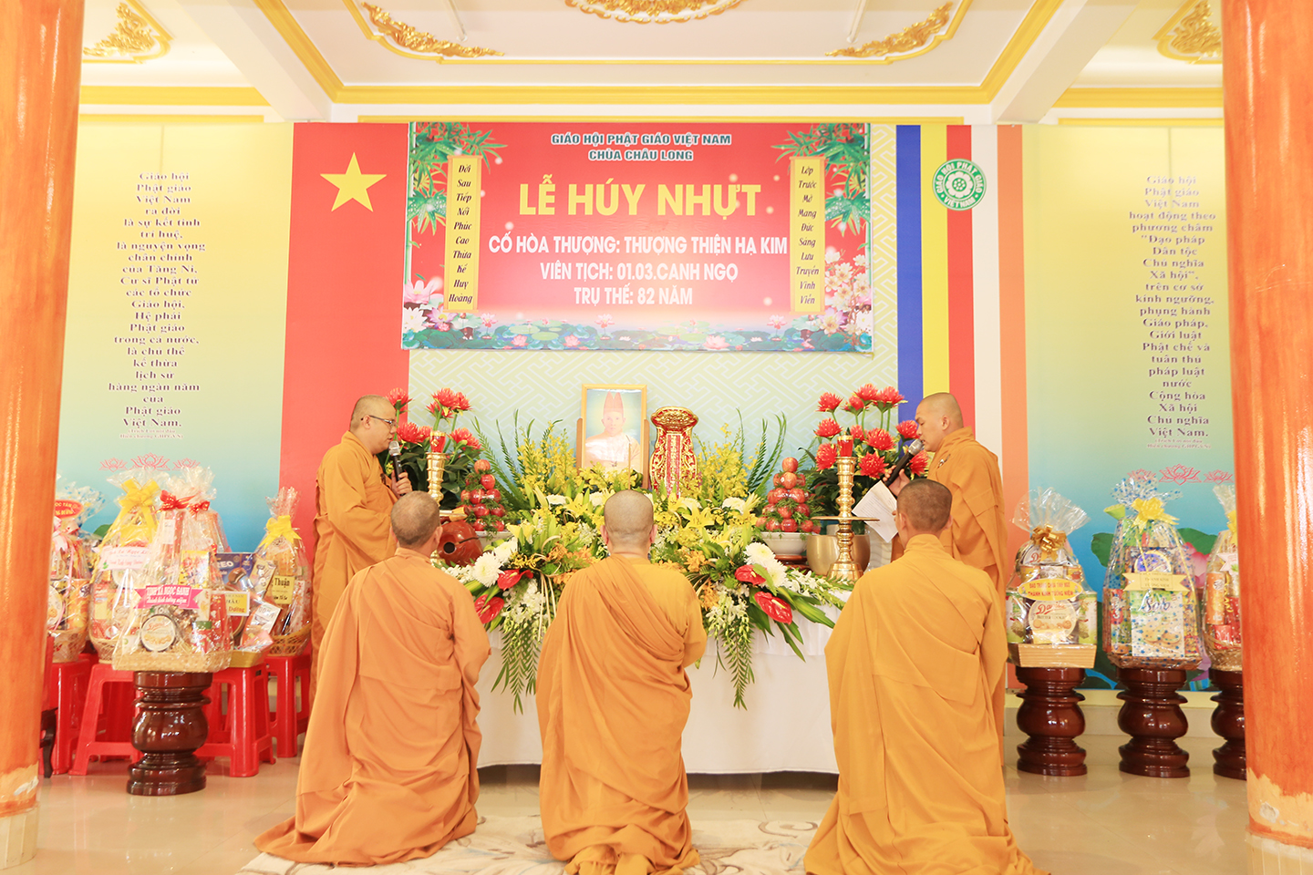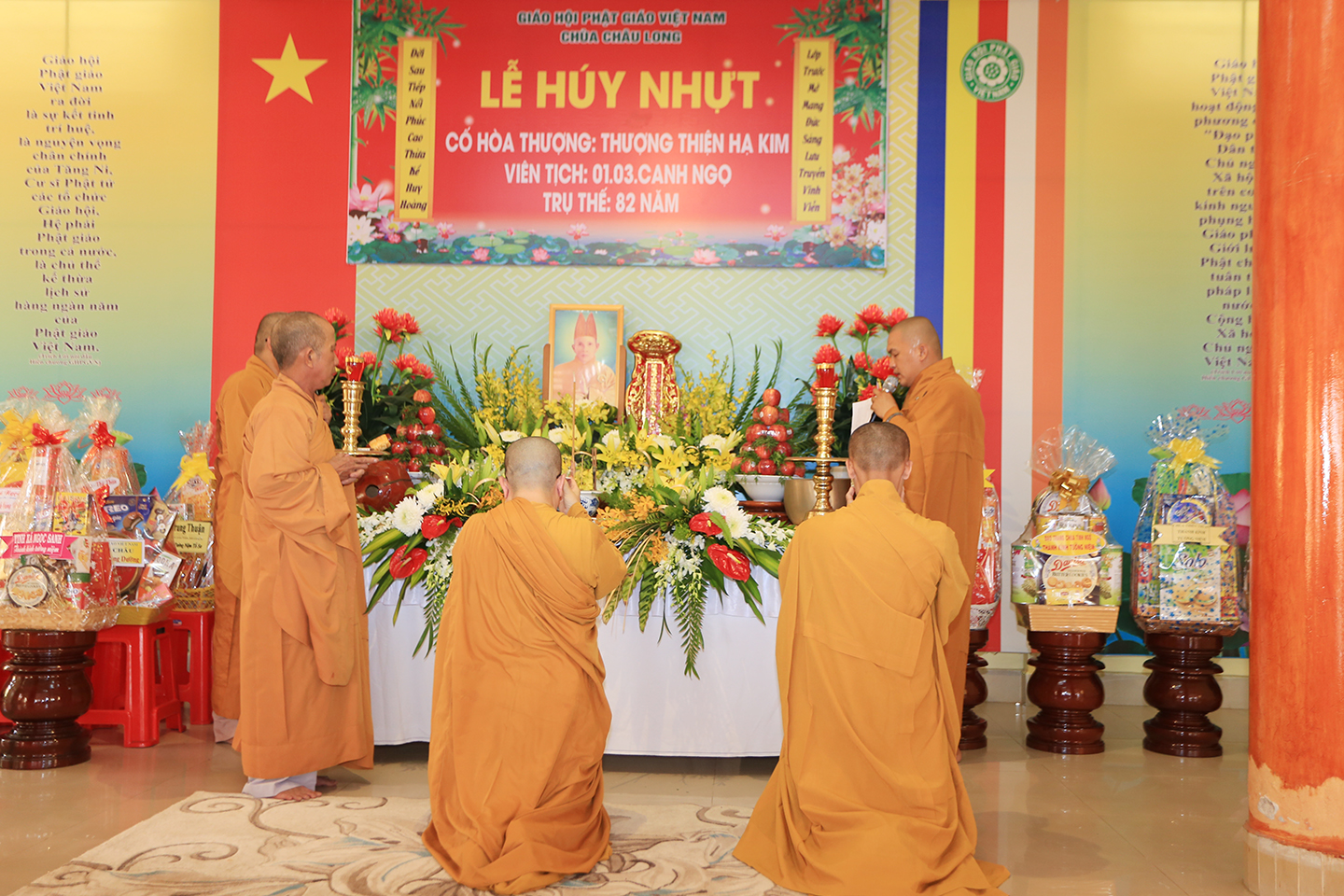 Sau khóa lễ, Ni Sư Thích Nữ Thường Liên – Trụ trì chùa Châu Long, đối trước chư Tôn thiền đức tác pháp cung thỉnh chư Tôn đức thành kính thắp hương tưởng niệm, nhất tâm cầu nguyện Giác linh cố Hòa thượng cao đăng thượng phẩm.