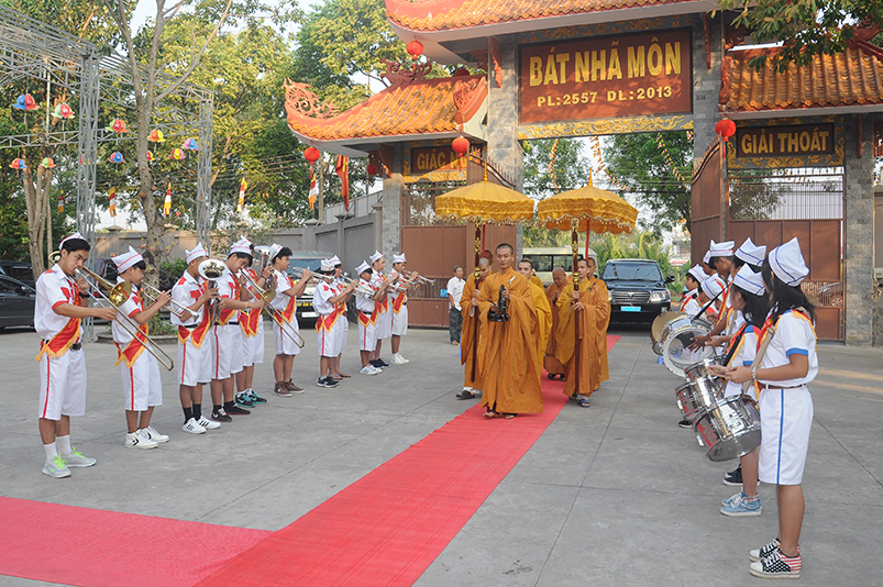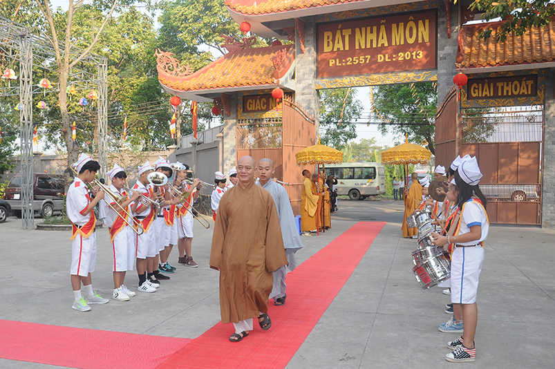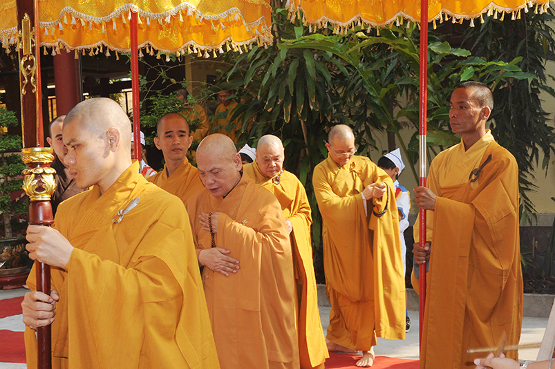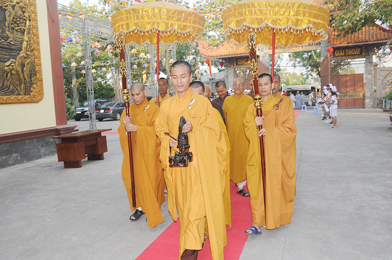 Thành phần chư Tôn đức Giáo phẩm TW chứng minh buổi lễ, Ban Trị sự Phật giáo tỉnh Long An trân trọng cung đón: Trưởng lão HT. Thích Thiện Nhơn – Chủ tịch HĐTSTW GHPGVN; HT. Thích Thiện Pháp – Phó Chủ tịch thường trực HĐTS kiêm trưởng ban Tăng sự trung ương; Thích Tấn Đạt – Uỷ viên thường trực HĐTSTƯ, Phó Ban Hoằng pháp trung ương.