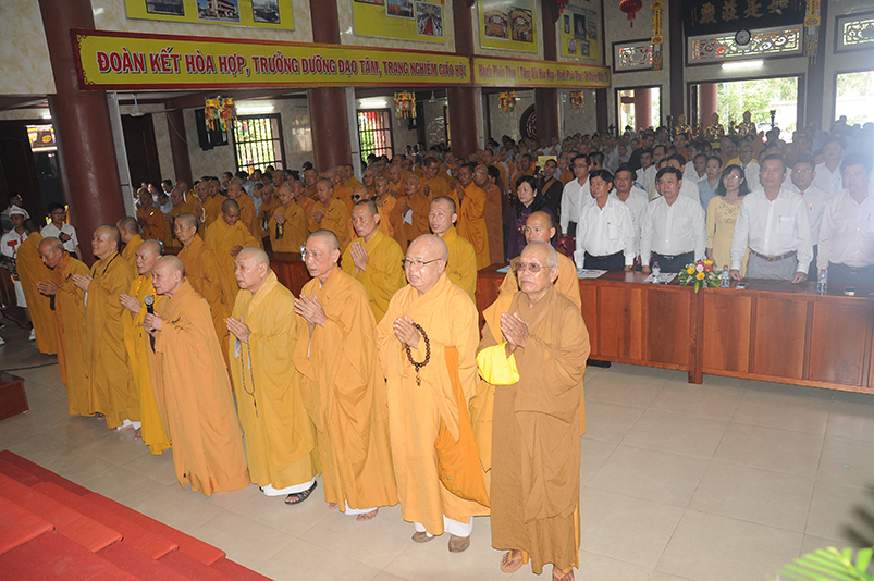 Về khách quý lãnh đạo chính quyền các cấp tỉnh: Ông Võ Lê Tuấn- Nguyên Chủ tịch MTTQVN tỉnh Long An; Bà Phạm Ngọc Tiệp- Phó chủ tịch MTTQVN tỉnh Long An; Ông Công Hòang Bạch- Phó Ban Dân vận tỉnh uỷ tỉnh Long An; Ông Huỳnh Văn Thừng- Phó giám đốc sở Nội vụ- Trưởng Ban Tôn giáo tỉnh Long An; cùng quý vị đại diện Ban Dân vận huyện uỷ- UBND- UBMTTQ các huyện thị xã thành phố sở tại và gần 500 Phật tử trong các đoàn Phật giáo huyện thị về tham dự.