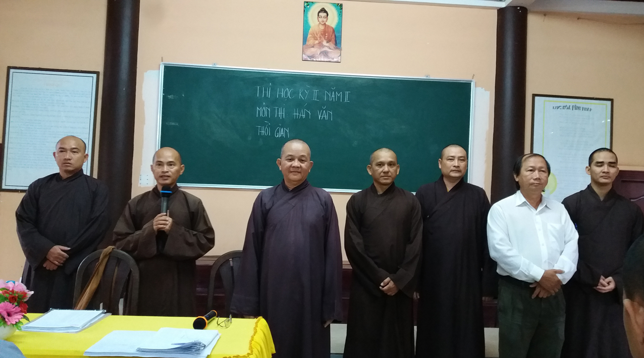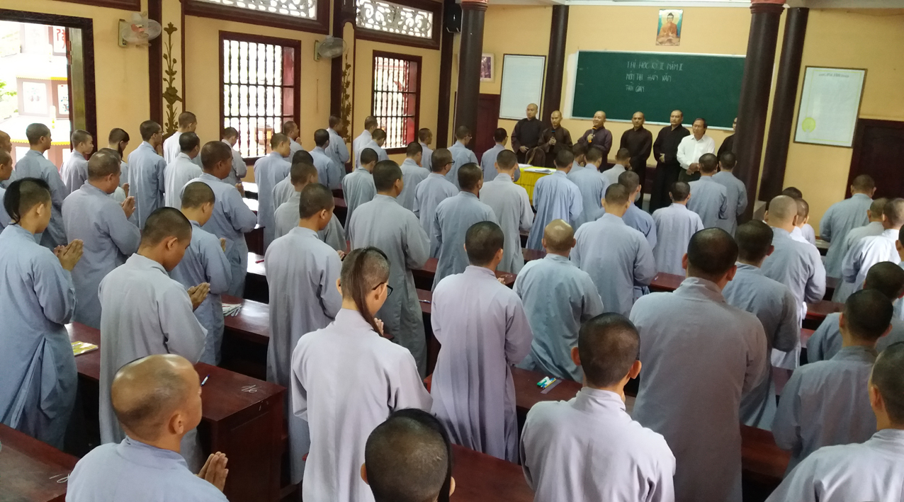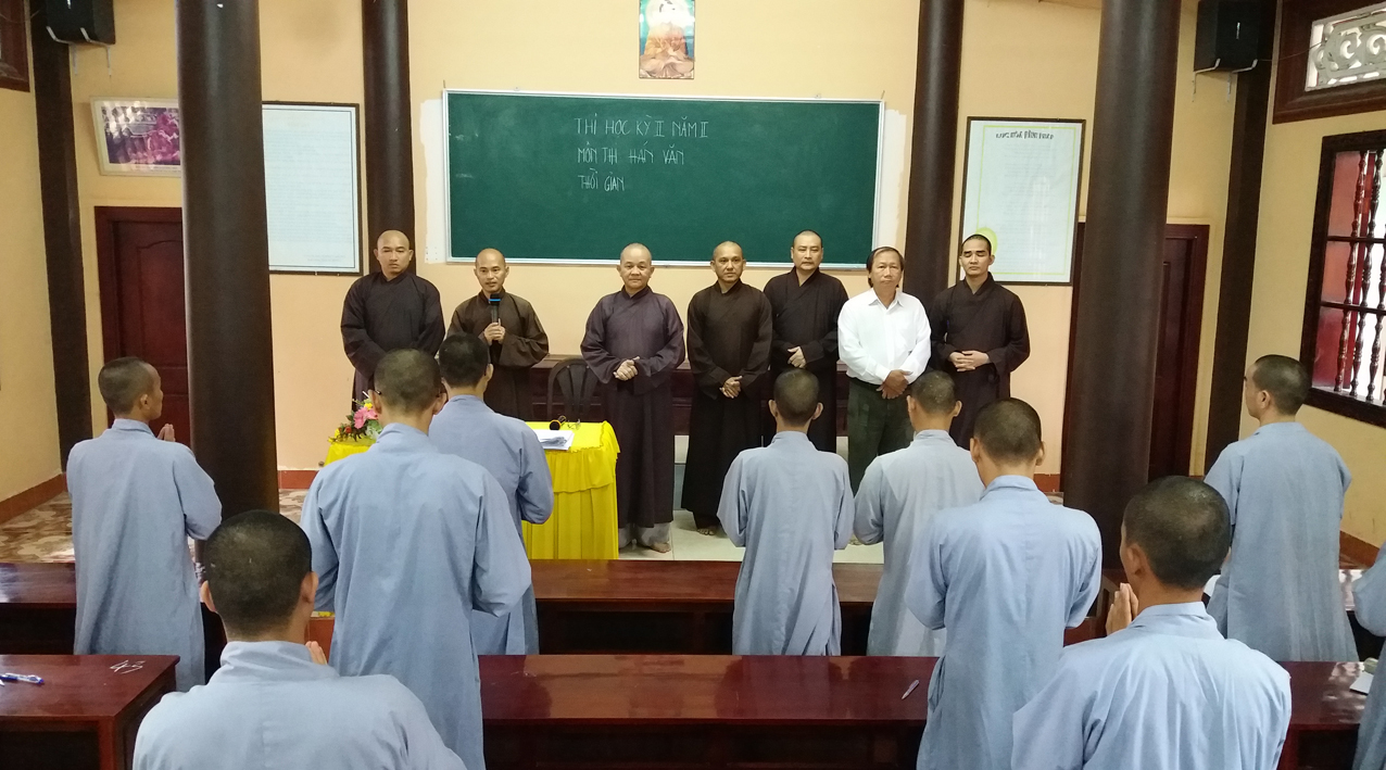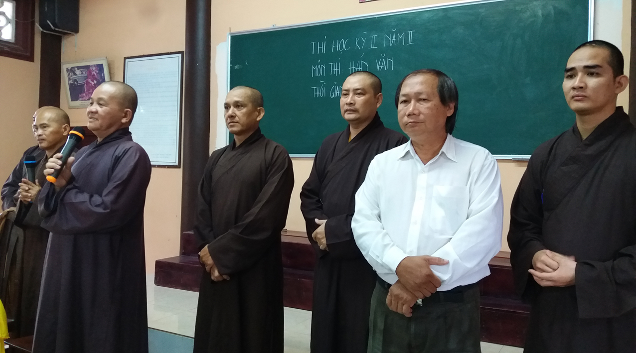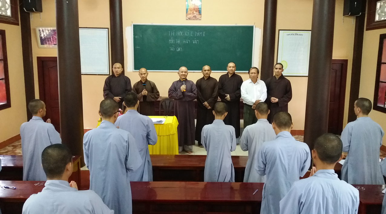 Sau khi khai mạc, khích lệ các Tăng Ni sinh tại hai điểm trường, mỗi nơi, HT. Hiệu trưởng đều thân hành tham quan phòng thi, hướng dẫn và ân cần dặn dò các Giám thị, cố gắng hạn chế những điều sơ suất đáng tiếc, bảo đảm quy trình thi cử tốt đẹp.
