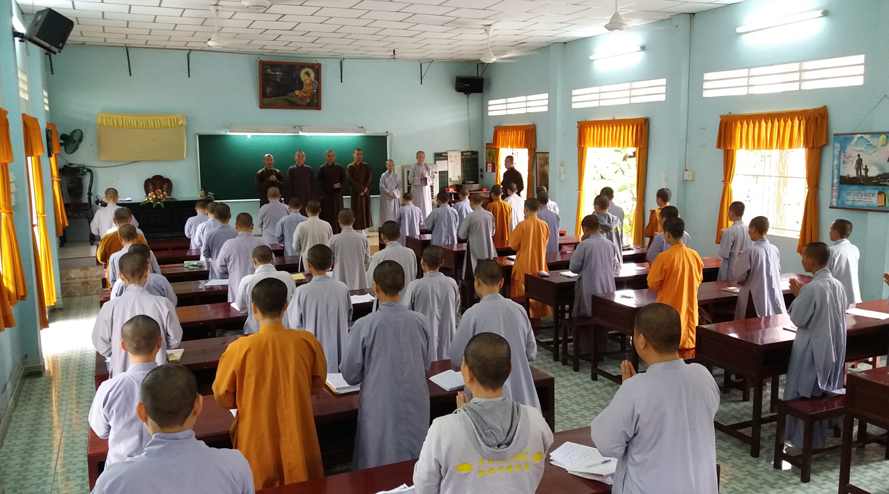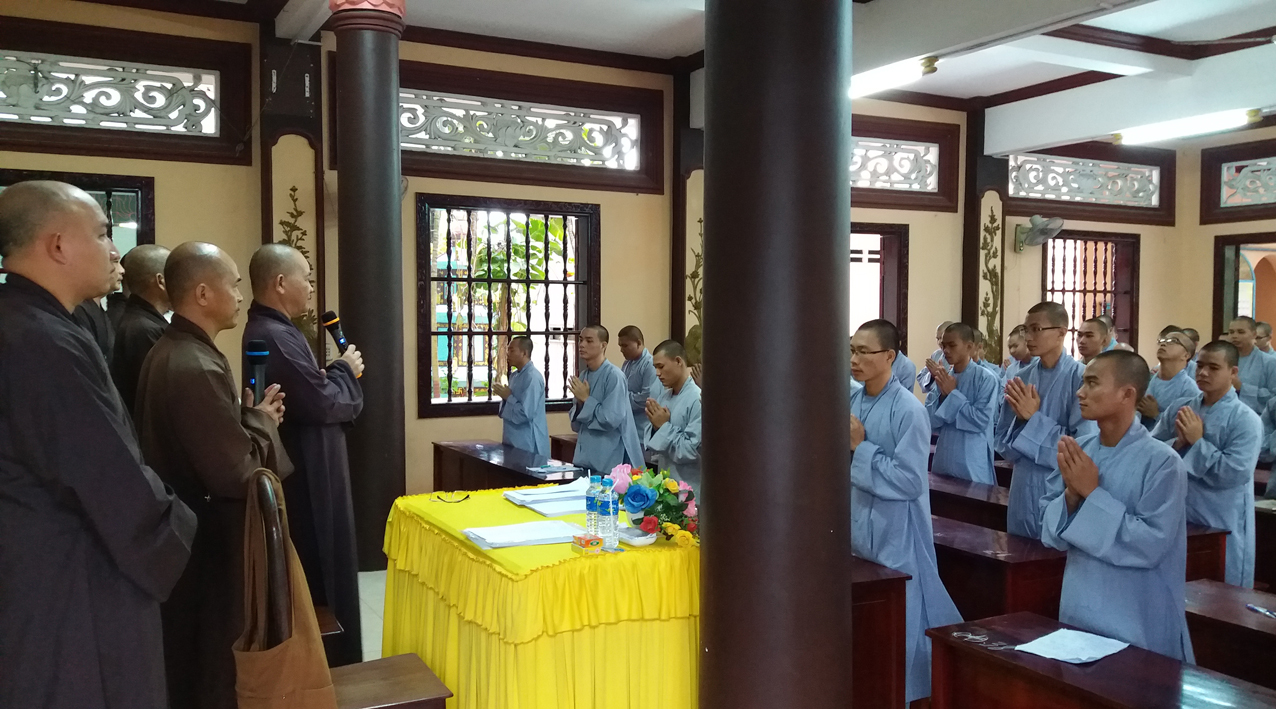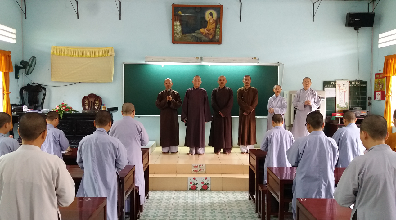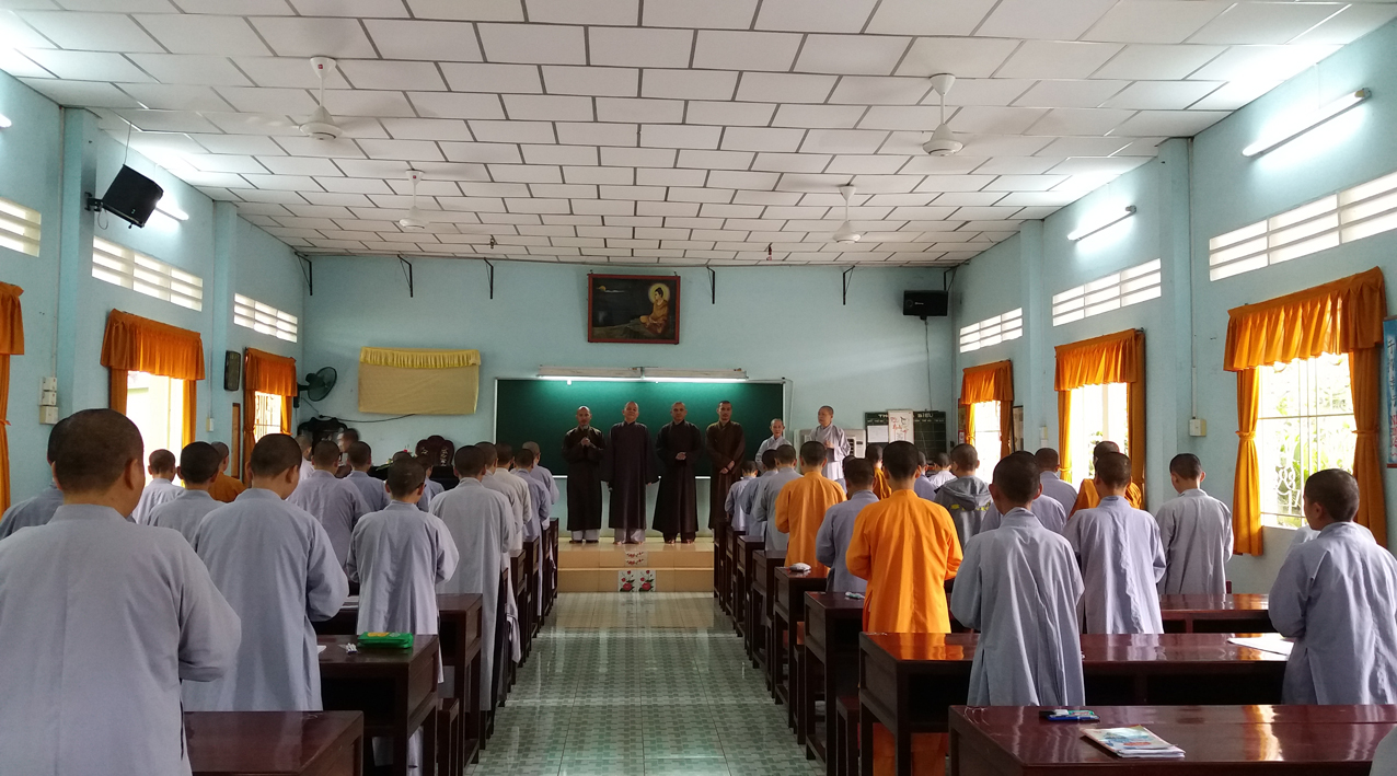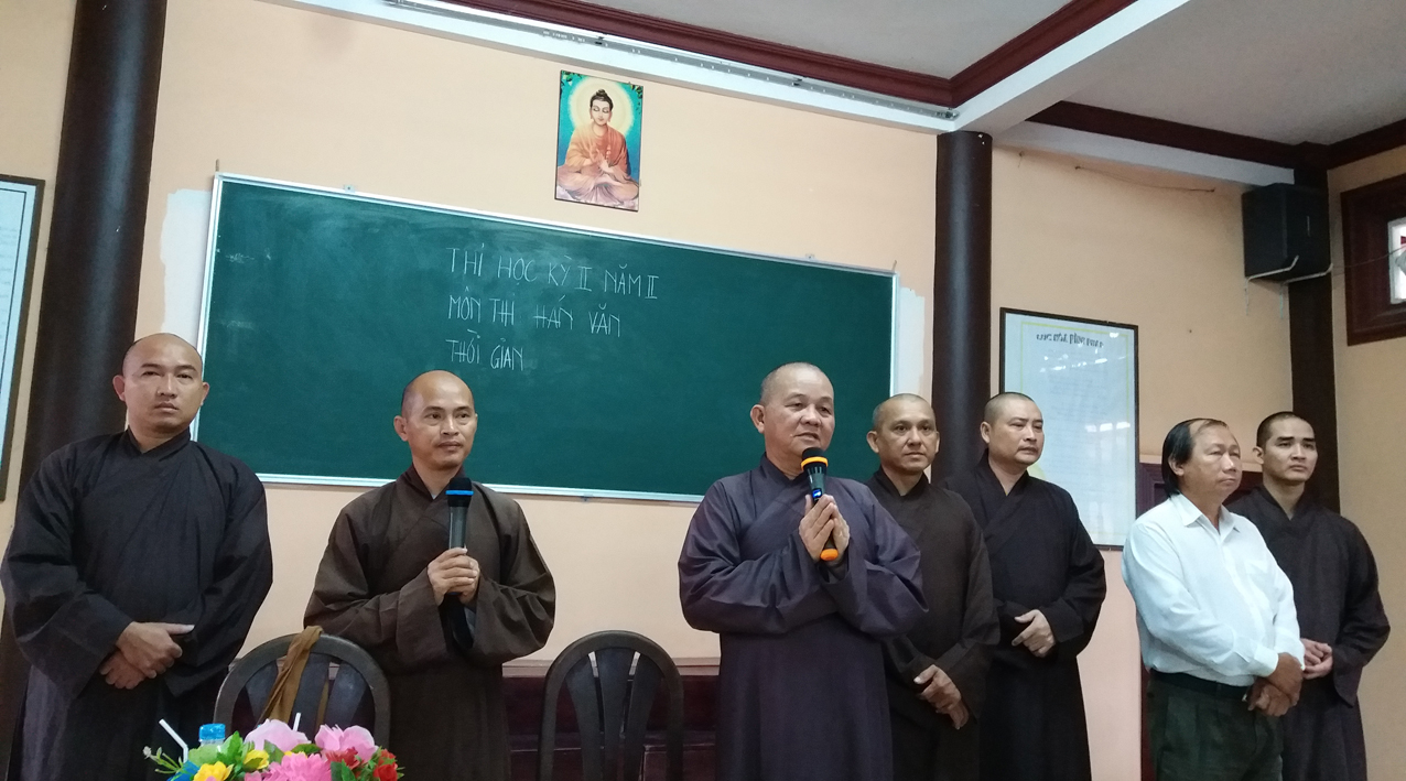 Khởi đầu ngày thi, HT. Thích Minh Thiện – Hiệu trưởng Trường Trung cấp Phật học, Trưởng ban Trị sự GHPGVN tỉnh Long An đã thân lâm chứng minh khai mạc, ân cần sách tấn, khích lệ các Tăng Ni sinh tại hai điểm thi.