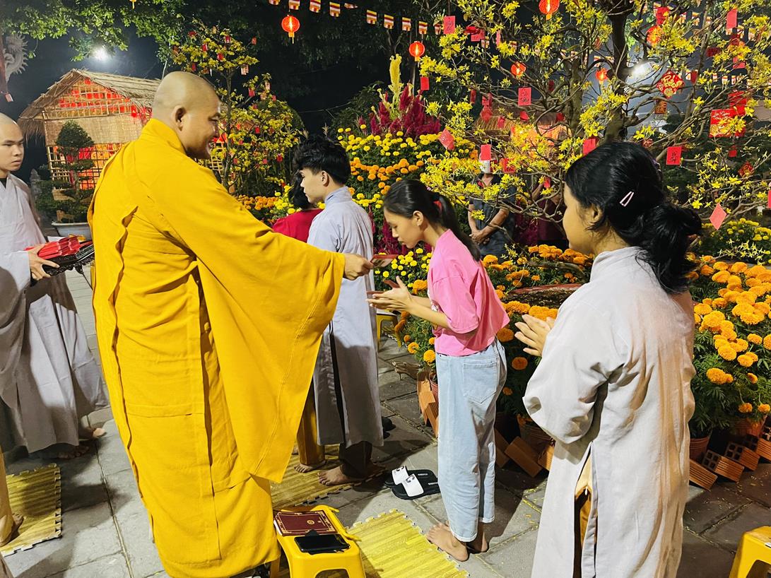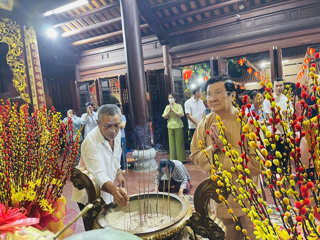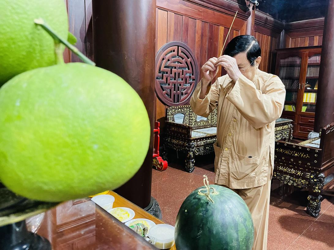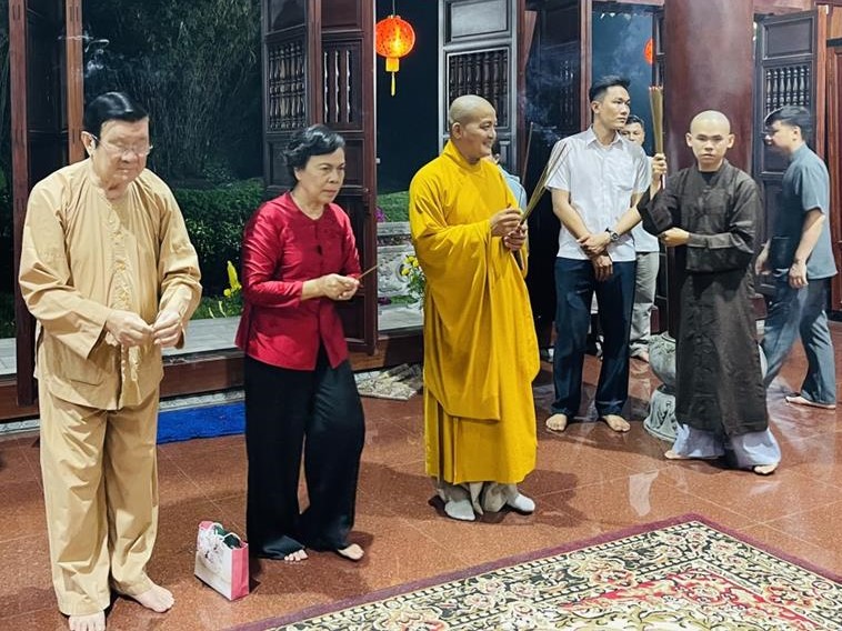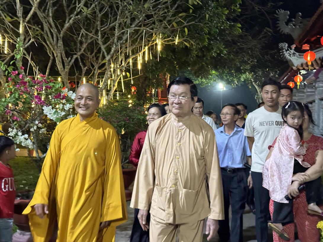 Sau khi Ngài nguyên Chủ tịch nước, phu nhân, tộc họ Trương dâng hương đầu năm Giáp Thìn và có lời thăm hỏi, chúc tết đến với Đại đức Thích Lệ Duyên và chư Tăng, Phật tử chùa Pháp Minh.