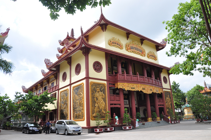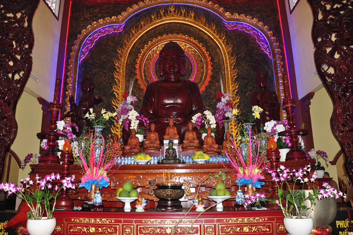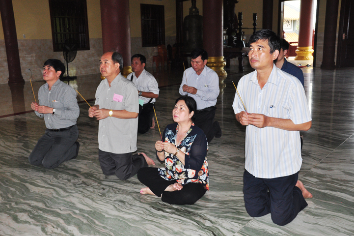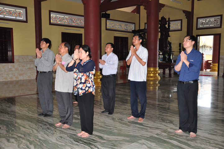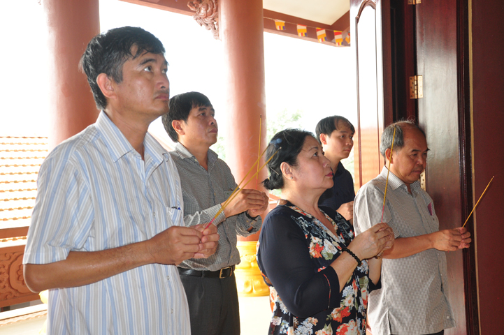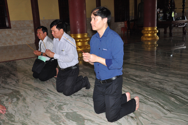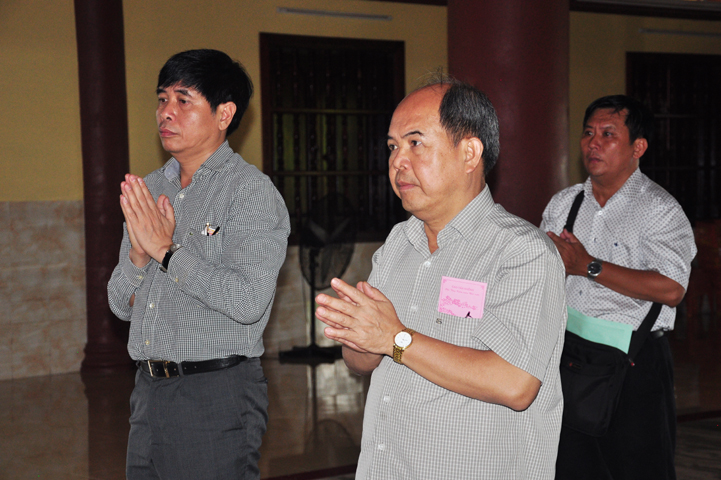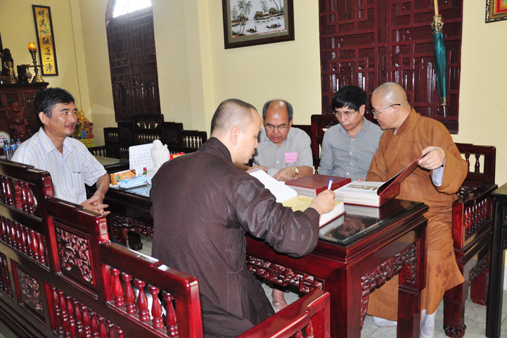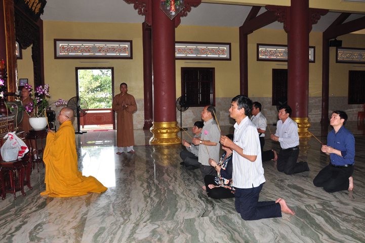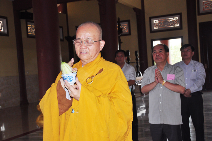 Tiếp đón đoàn có HT. Thích Minh Thiện- UVHĐTSTƯ, Phó Ban Hoằng Pháp trung ương, Trưởng Ban trị sự GHPGVN tỉnh Long An, Trụ trì chùa Thiên Châu; Ông Nguyễn Văn Thuần- Trưởng Ban Tôn Giáo tỉnh Long An.