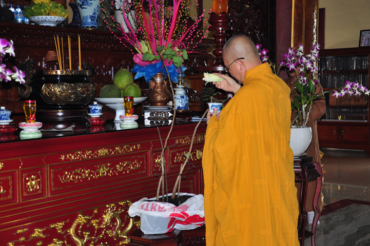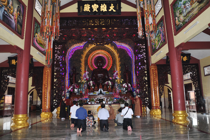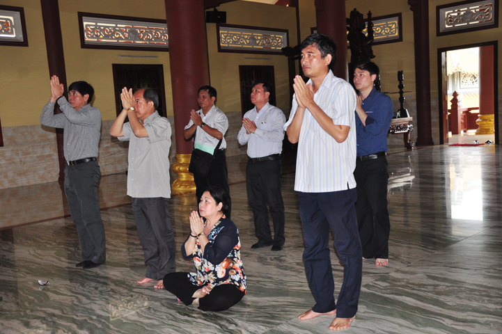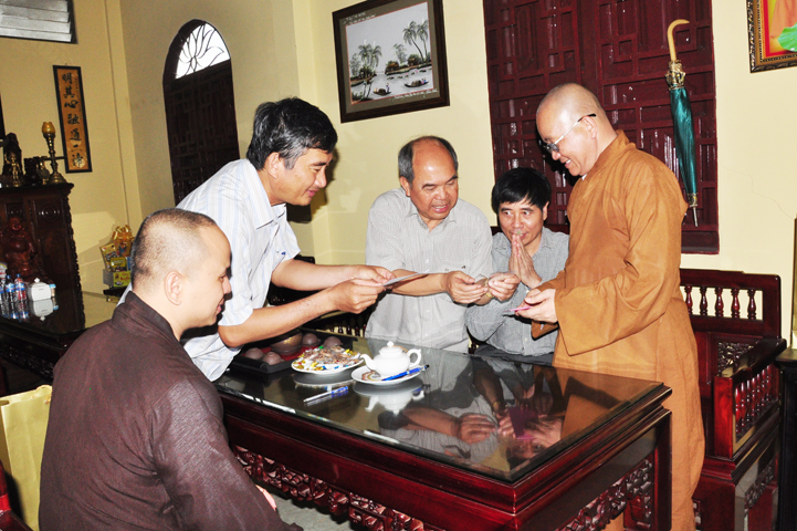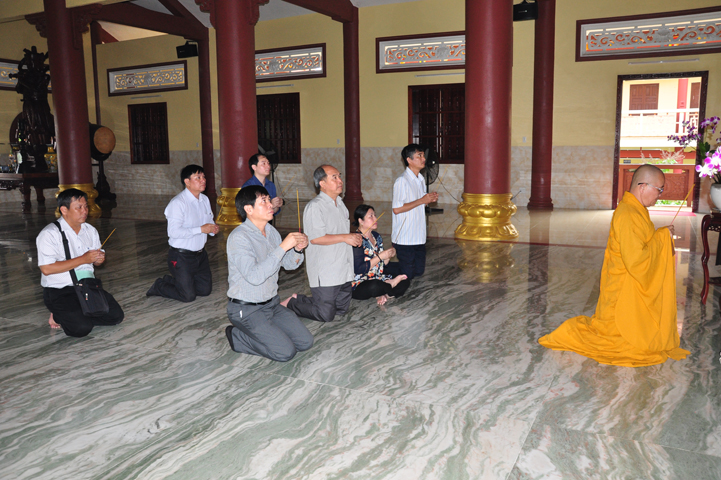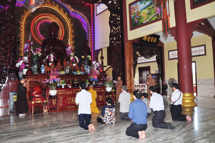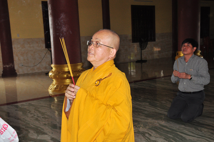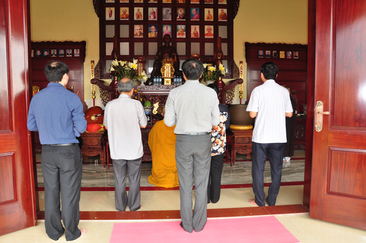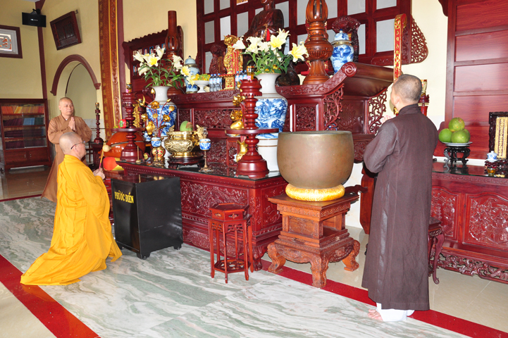 Sau khi vấn an sức khỏe Hòa thượng Minh Thiện, quý thành viên trong đoàn đảnh lễ Tam bảo.