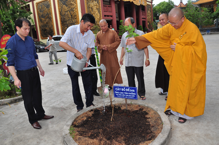 Hòa thượng Thích Minh Thiện niêm hương bạch Phật, Sái tịnh cầu phước lộc đến phái đoàn và chú nguyện cho cây Bồ Đề sớm đơm chồi nảy lộc.
