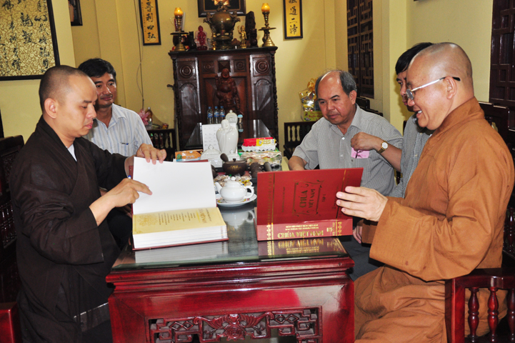 Cũng trong dịp này, HT. Thích Minh Thiện trao tặng quý thành viện trong đoàn cuốn sách Chùa Việt Nam.