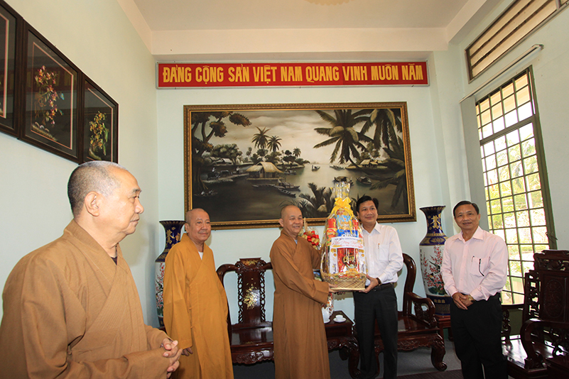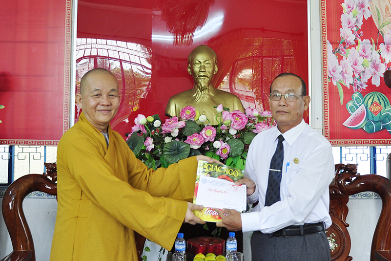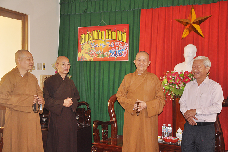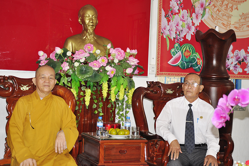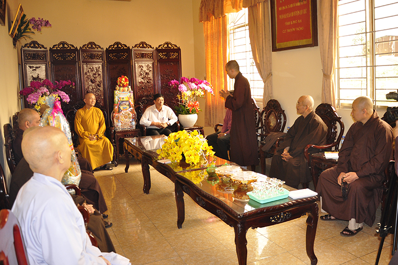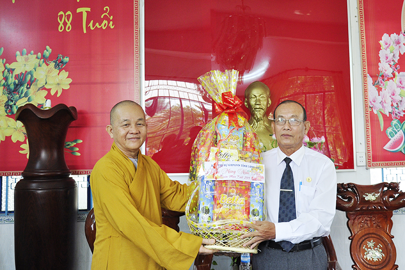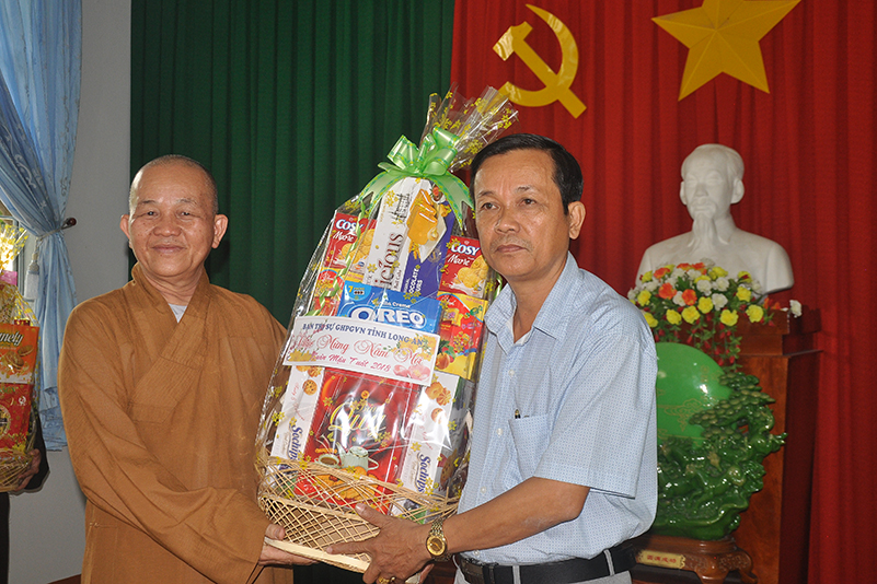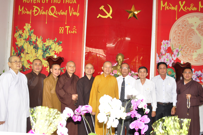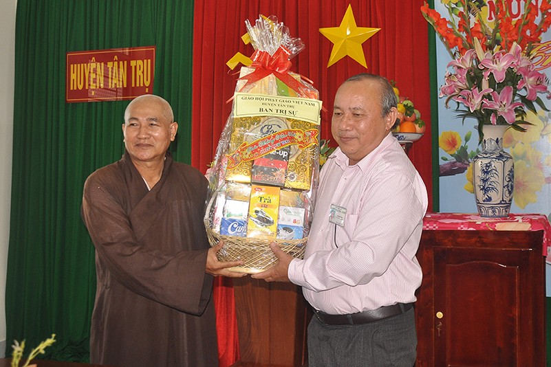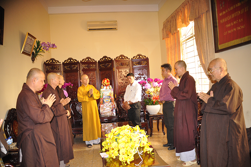 Nhân dịp xuân Mậu Tuất – 2018, Hòa thượng Thích Minh Thiện – Trưởng BTS GHPGVN tỉnh Long An thay mặt các thành viên trong đoàn gửi lời chúc toàn thể lãnh đạo các cấp chính quyền ban ngành đoàn thể huyện thị dồi dào sức khỏe, đón một mùa xuân an lành, hạnh phúc và gặt hái nhiều thành tích trong công tác.
