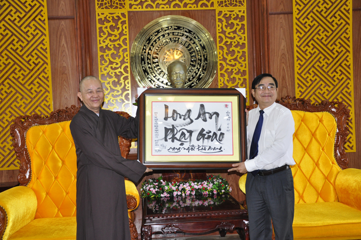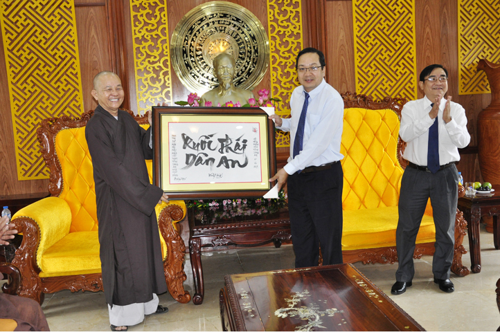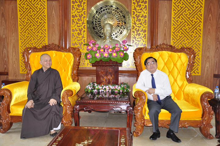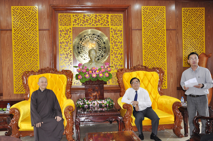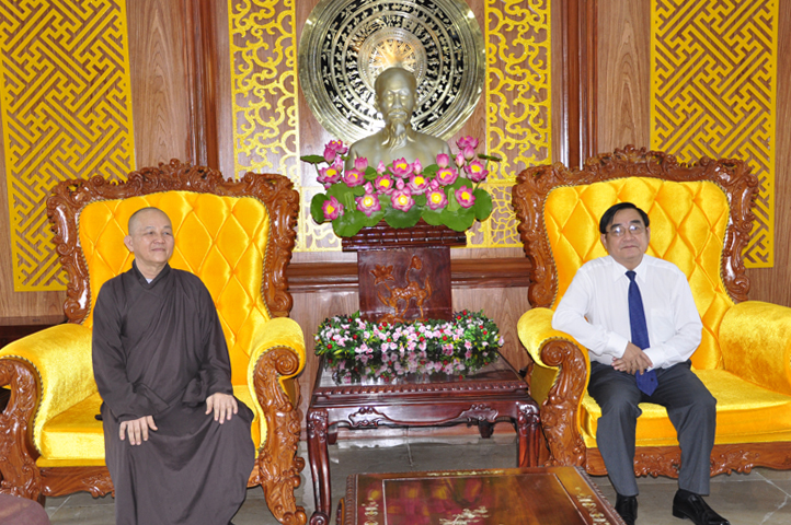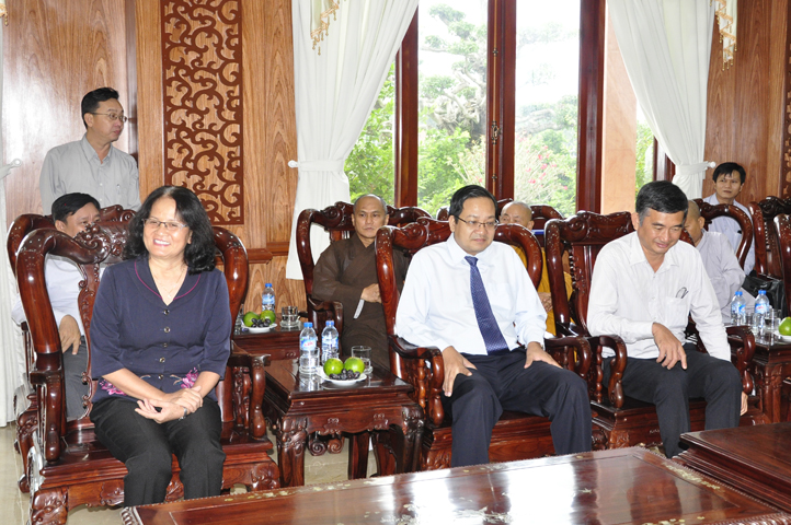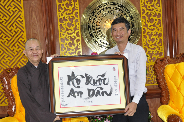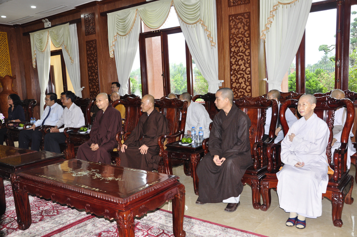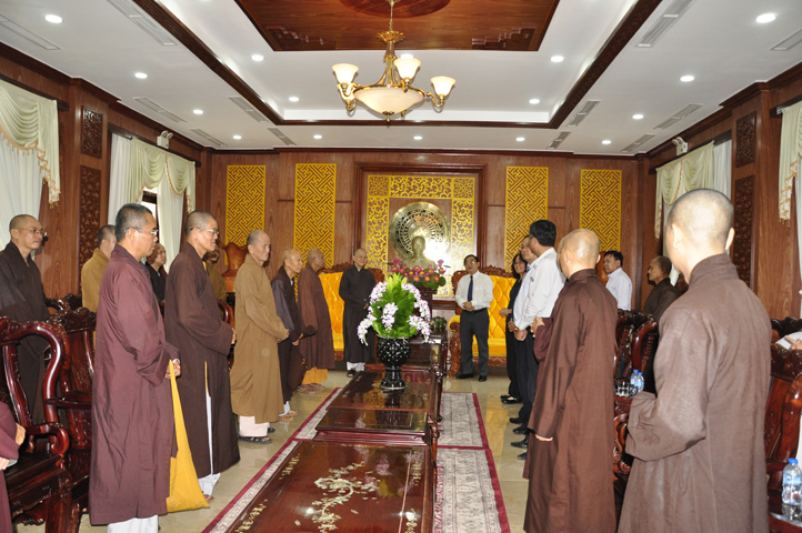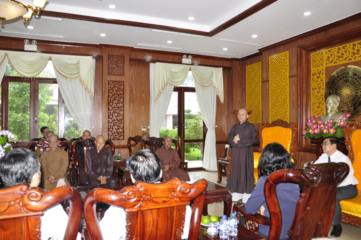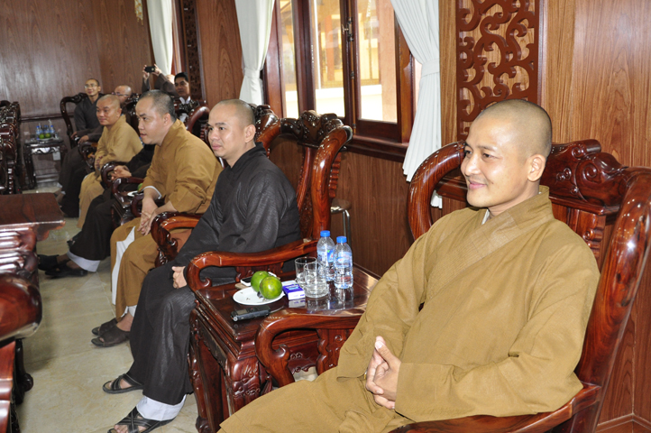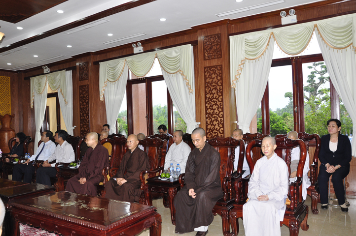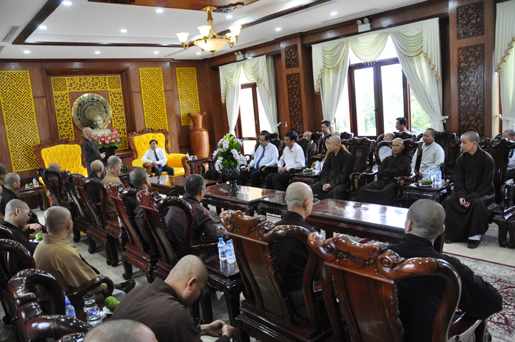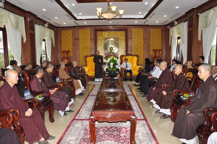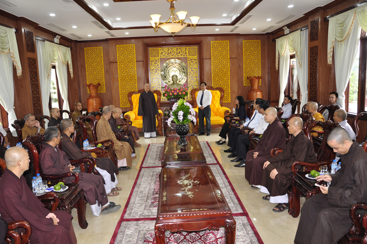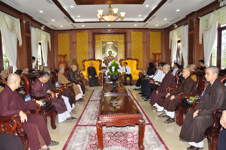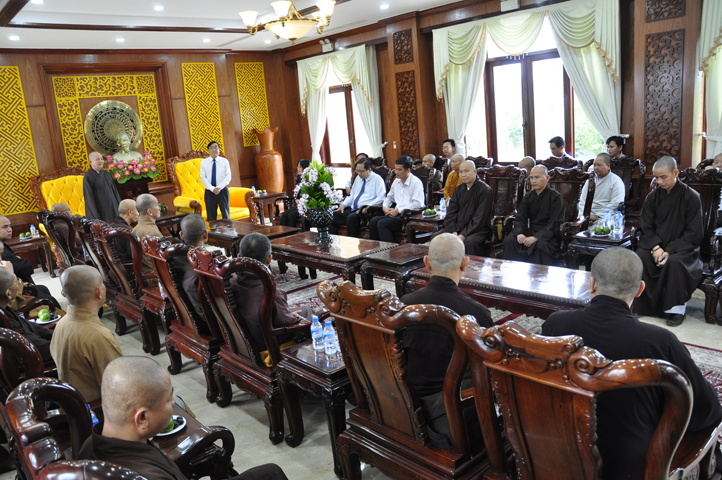 Tại buổi gặp mặt Hoà thượng Thích Minh Thiện thay mặt phái đoàn đã có lời chúc sức khoẻ đến quý vị lãnh đạo. Đồng thời Hoà thượng cũng hoan hỷ báo cáo kết quả thành tựu tốt đẹp Đại hội đại biểu Phật giáo tỉnh nhà. Qua đó, Hoà thượng cũng báo cáo Chư tôn đức Tăng Ni tham dự đại Hội đại biểu Phật giáo toàn quốc lần thứ VIII tại Thủ đô Hà Nội sắp đến.