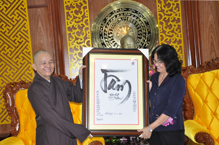 Chiều ngày 07 tháng 11 năm 2017(19/ 09/ Đinh Dậu) Phái đoàn Chư tôn đức Ban trị sự GHPGVN tỉnh Long An do HT. Thích Minh Thiện – Uỷ viên HĐTSTƯ, Phó Ban Hoằng Pháp trung ương, Trưởng Ban trị sự GHPGVN tỉnh Long An làm trưởng đoàn đến thăm và giới thiệu nhân sự lãnh đạo Phật giáo tỉnh nhiệm kỳ IX ( 2017- 2022) tại hội trường Tỉnh Uỷ tỉnh Long An.