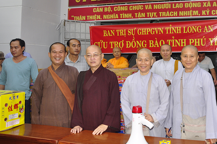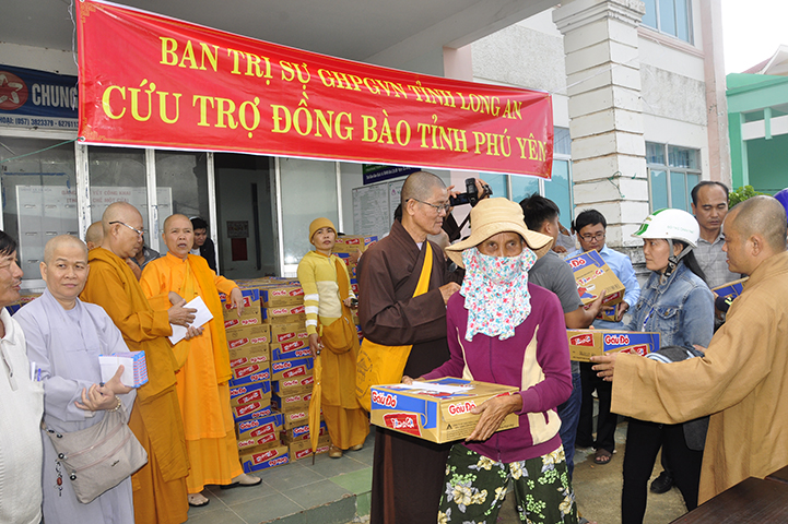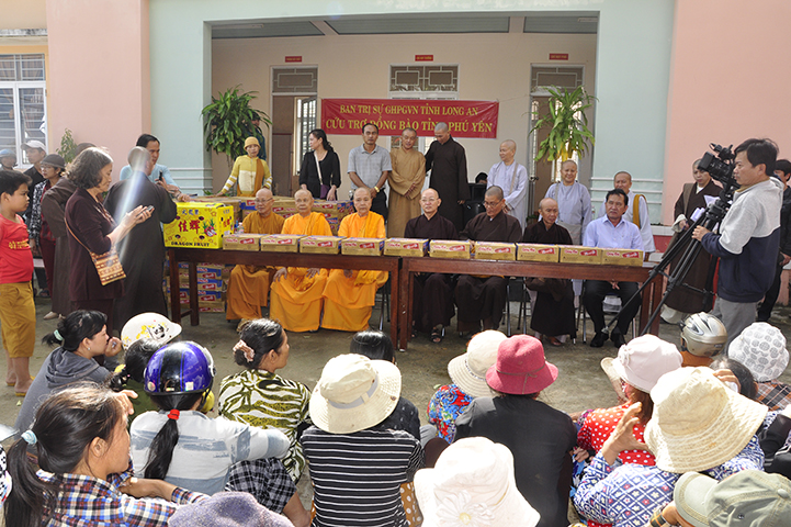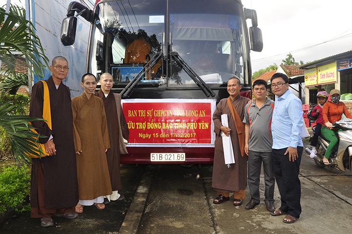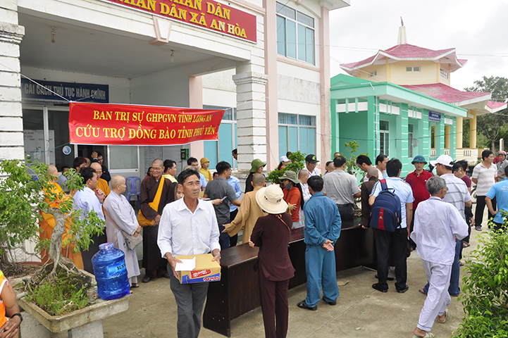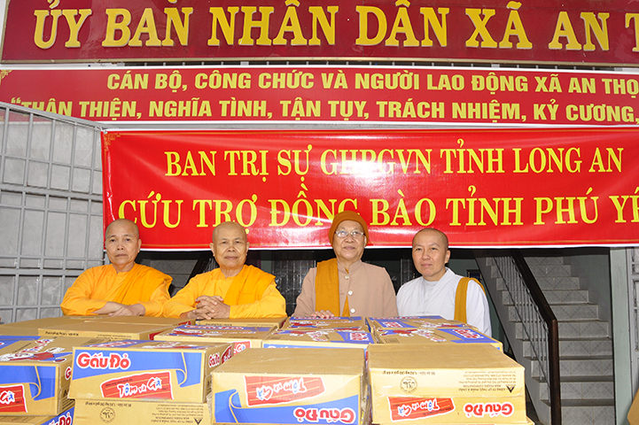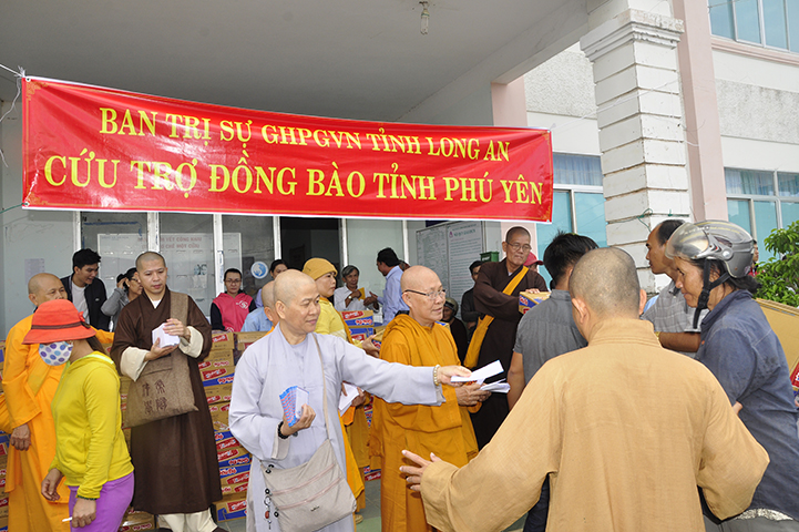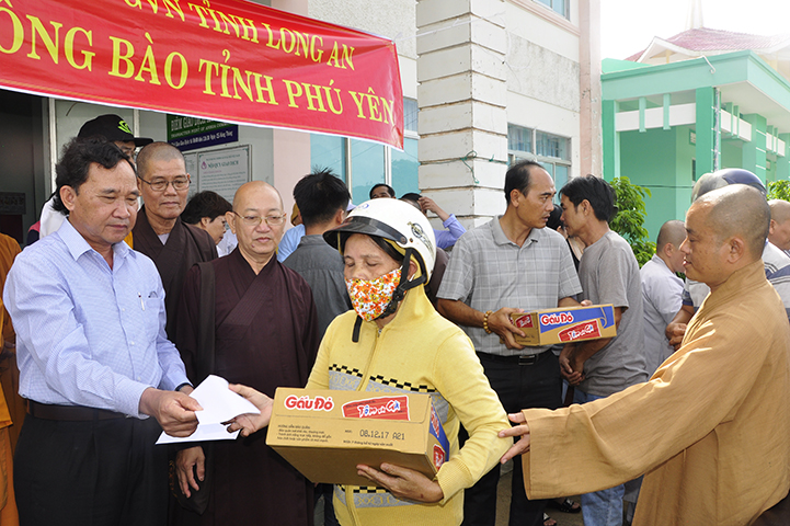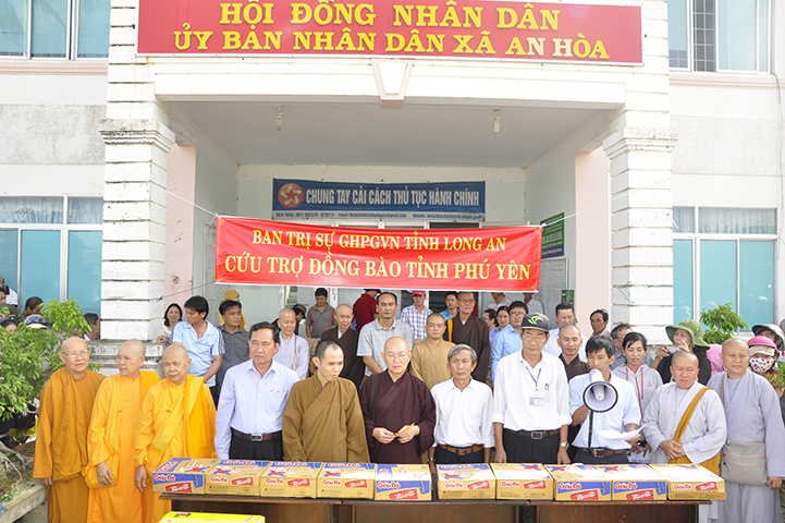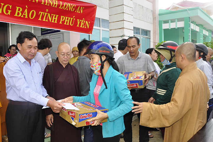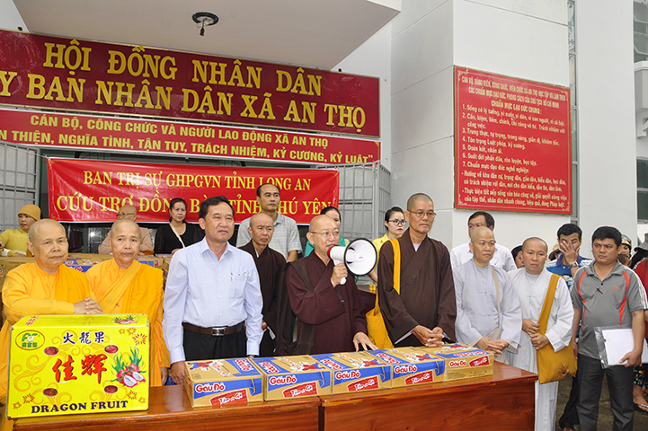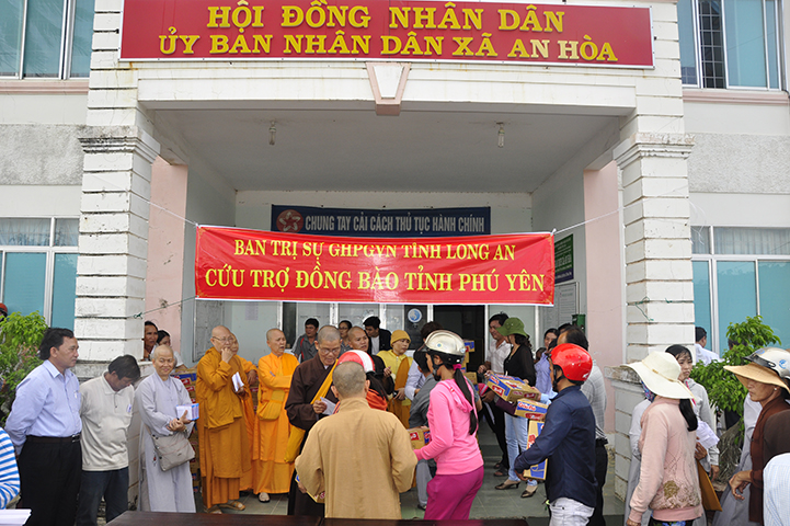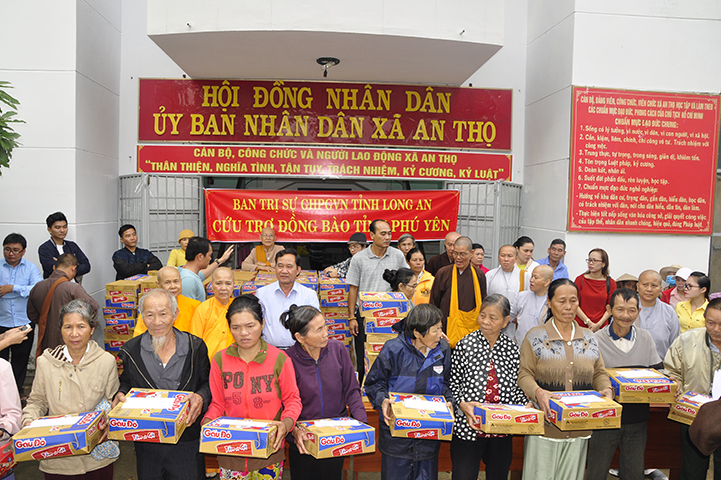 Theo thông tin đã đưa về chuyến cứu trợ đồng bào bị thiên tai bão lũ tại tỉnh Phú Yên của Tăng Ni Phật tử Long An,Sáng ngày 16 tháng 12 năm 2017(28/ 10/ Đinh Dậu) phái đoàn Ban Từ Thiện GHPGVN tỉnh Long An do Thượng tọa Thích Quảng Tâm UVHĐTS, Phó Trưởng Ban Thường trực – Trưởng Ban Từ Thiện GHPGVN tỉnh Long An( làm trưởng đoàn ) hướng dẫn Tăng Ni Phật tử phát quà cho đồng bào tại bốn xã gồm xã An Thọ, An Hiệp, An Hải, An Hòa, huyện Tuy An, tỉnh Phú Yên.