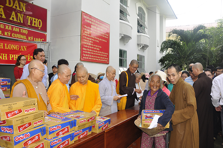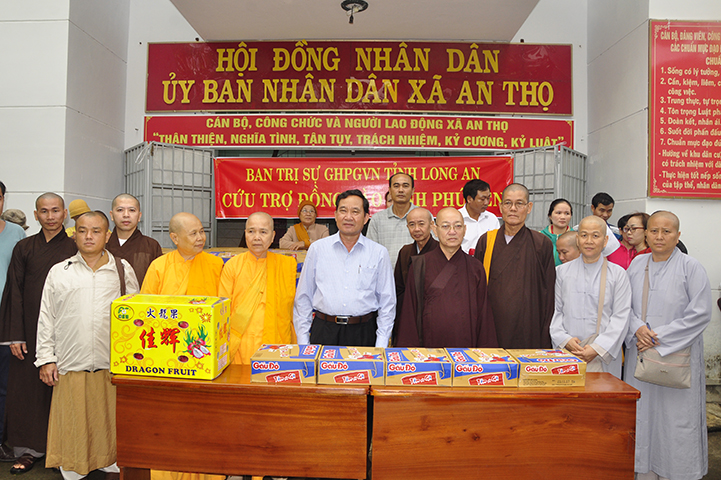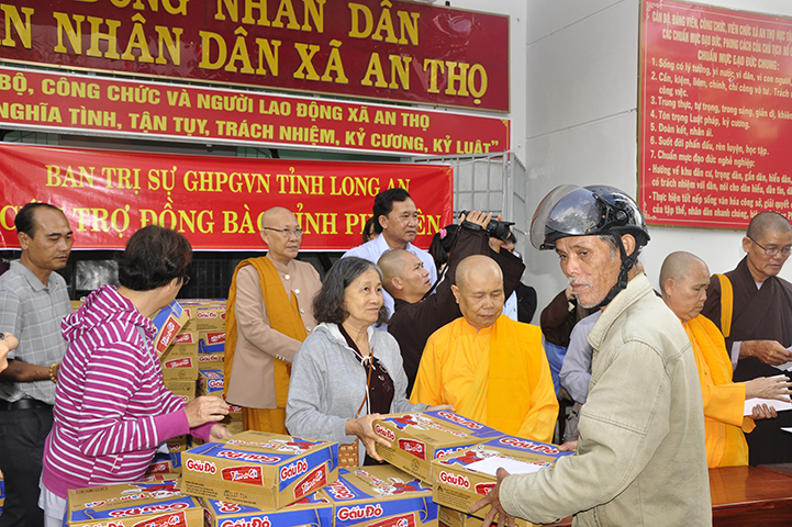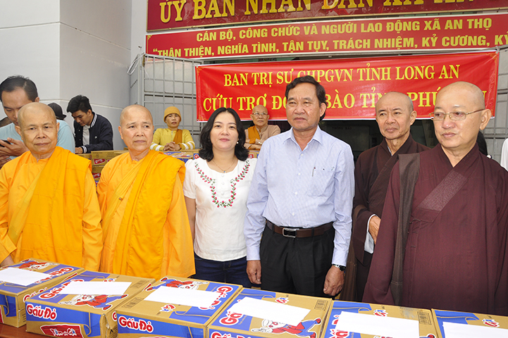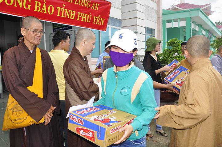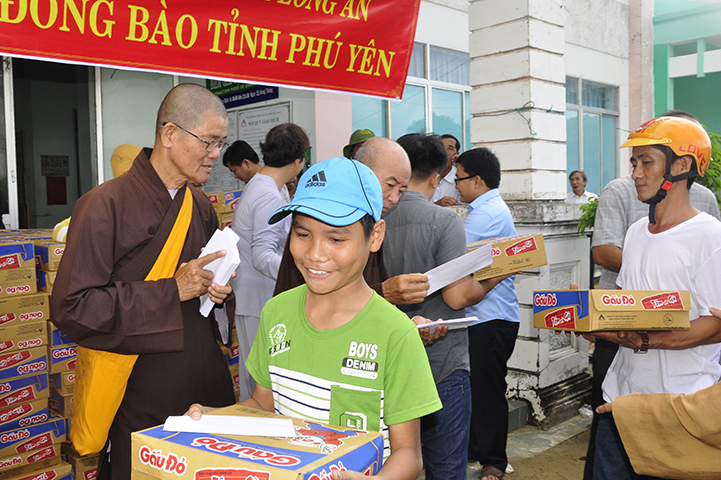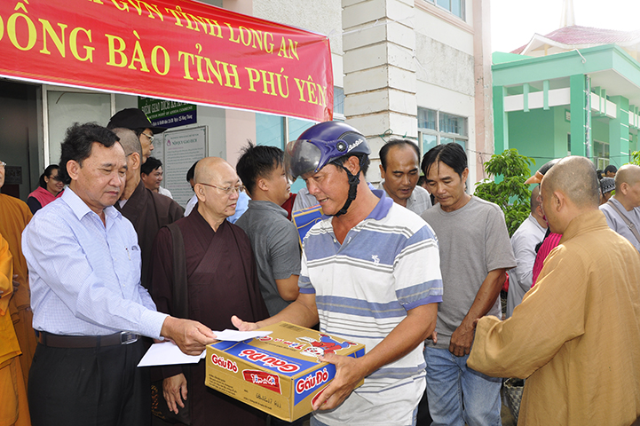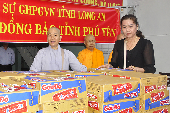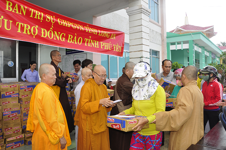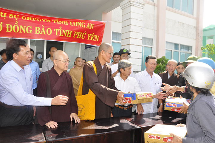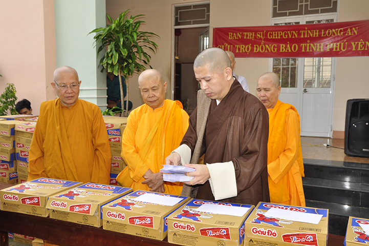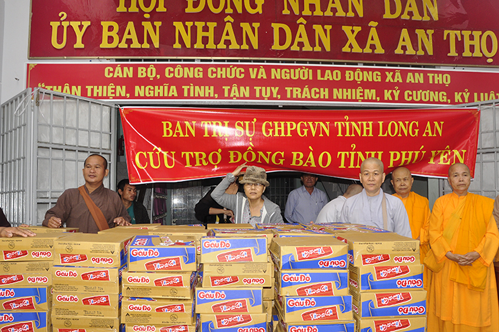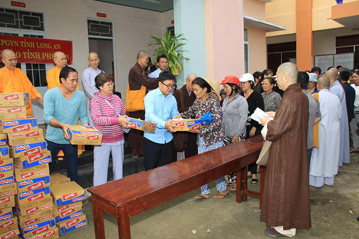 Theo thông tin đã đưa về chuyến cứu trợ đồng bào bị thiên tai bão lũ tại tỉnh Phú Yên của Tăng Ni Phật tử Long An,Sáng ngày 16 tháng 12 năm 2017(28/ 10/ Đinh Dậu) phái đoàn Ban Từ Thiện GHPGVN tỉnh Long An do Thượng tọa Thích Quảng Tâm UVHĐTS, Phó Trưởng Ban Thường trực – Trưởng Ban Từ Thiện GHPGVN tỉnh Long An( làm trưởng đoàn ) hướng dẫn Tăng Ni Phật tử phát quà cho đồng bào tại bốn xã gồm xã An Thọ, An Hiệp, An Hải, An Hòa, huyện Tuy An, tỉnh Phú Yên.