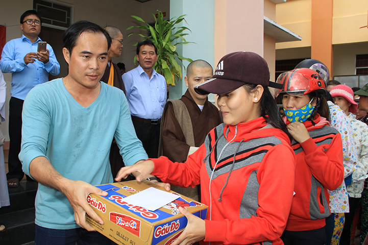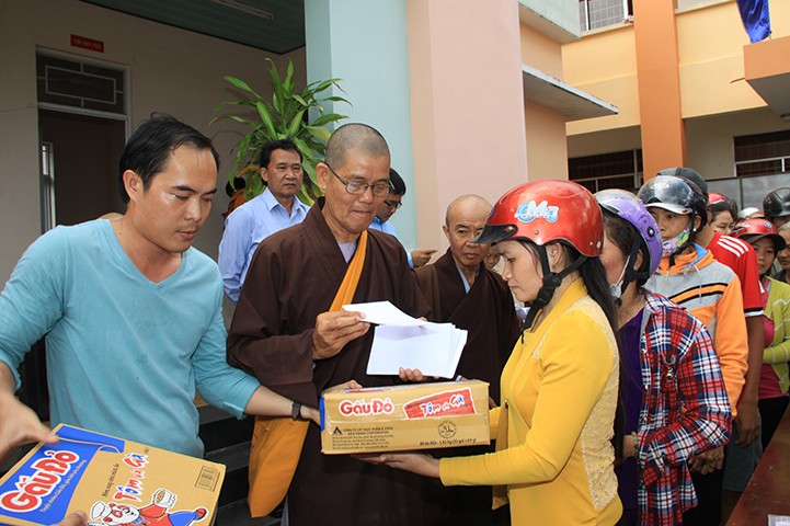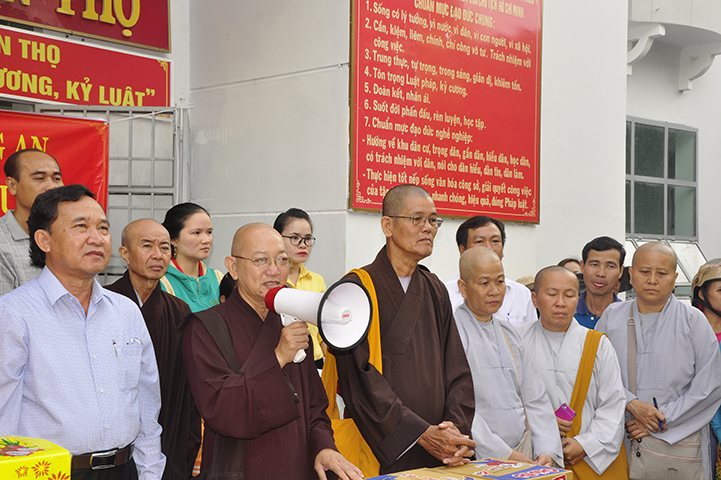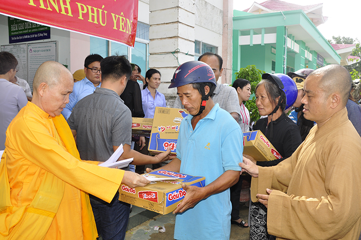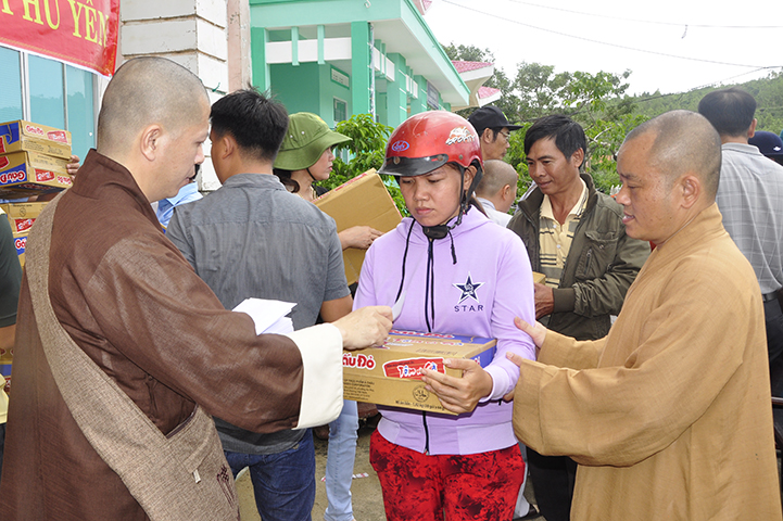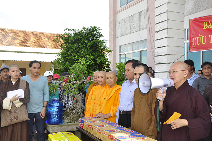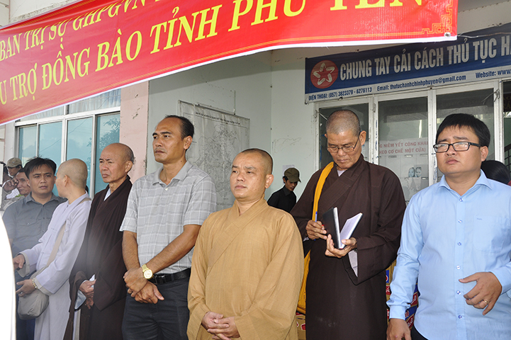 Thay mặt Ban Trị sự GHPGVN tỉnh Phú Yên, ĐĐ. Thích Chúc Phát- Chánh thư ký GHPGVN tỉnh Phú Yên và đại diện Chính Quyền sở tại đã có lời tri ân đến phái đoàn, kính gửi vấn an sức khỏe đến HT. Thích Minh Thiện và chúc chuyến cứu trợ phái đoàn được thành tựu tốt đẹp.