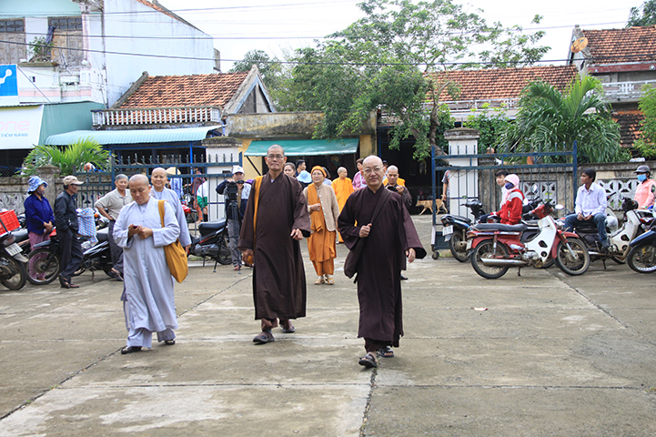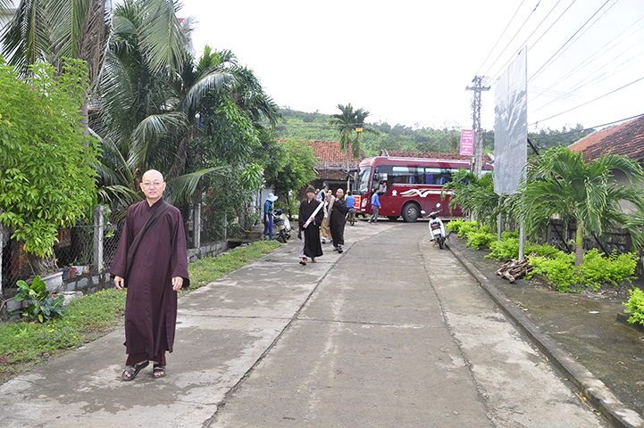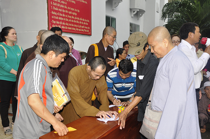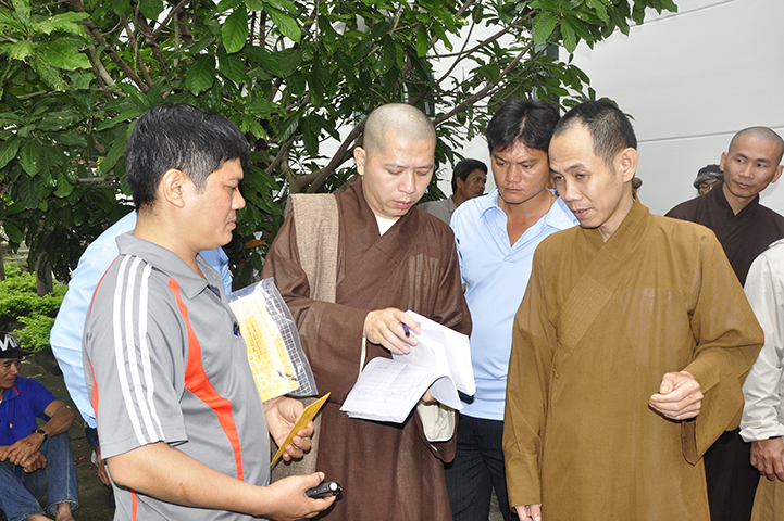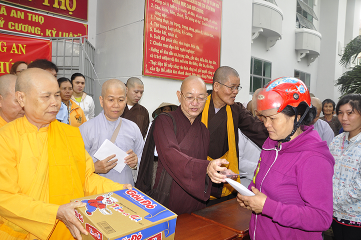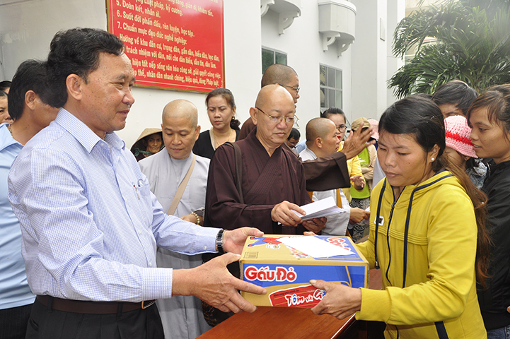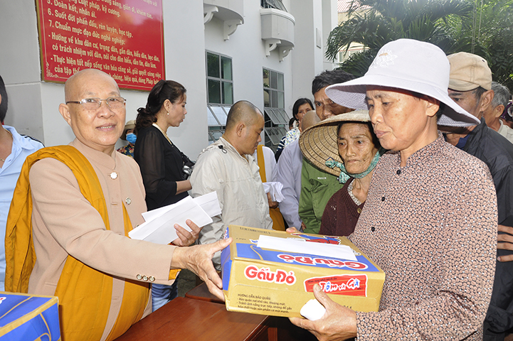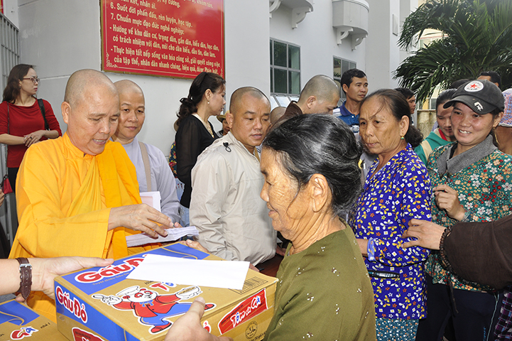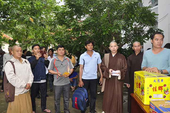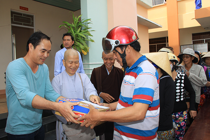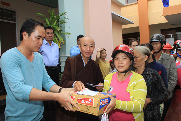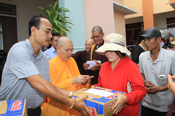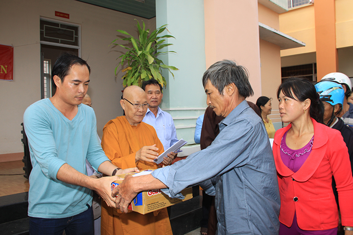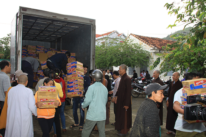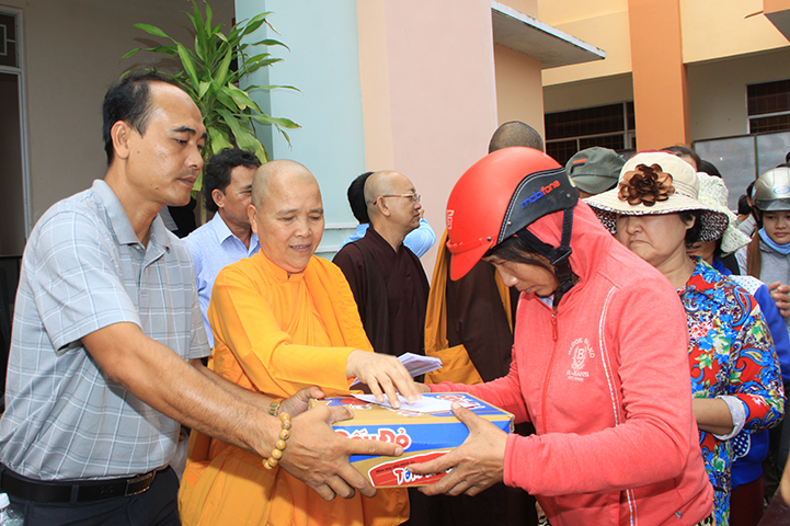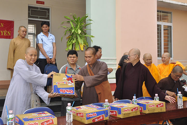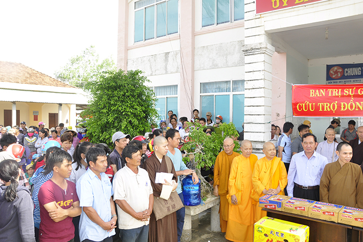 Sau đó, phái đoàn quay về chùa Long Sơn (văn phòng Ban trị sự GHPGVN tỉnh Khánh Hòa), TP. Nha Trang ủng hộ tịnh tài đến 5 chùa gặp bảo lũ trong cơn bảo số 12.