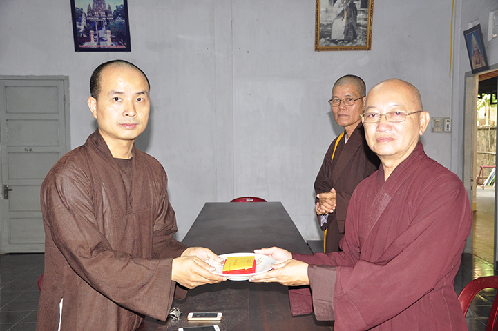 Tháp tùng trong chuyến đi có ĐĐ. Thích Thiện Danh – Phó Thư ký kiêm Chánh văn phòng ban trị sự GHPGVN tỉnh Long An; Đạo hữu Lệ Kiệt- Phó Thư ký kiêm phó Chánh văn phòng BTS. GHPGVN tỉnh Long An; ĐĐ. Thích Lệ Tấn- Phó thường trực Ban trị sự GHPGVN liên huyện Tân Thạnh- Kiến Tường- Mộc Hóa- Vĩnh Hưng; ĐĐ. Thích An Điền – Chánh Thư ký Ban Từ Thiện Xã hội Phật giáo tỉnh Long An; ông Huỳnh Văn Thuần- Phó Giám đốc Sở Nội vụ- Trưởng Ban Tôn giáo tỉnh Long An; ông Nguyễn Văn Tâm- Phó phòng Nghiệp vụ Ban Tôn giáo tỉnh Long An cùng Chư tôn đức Tăng Ni, Phật tử.