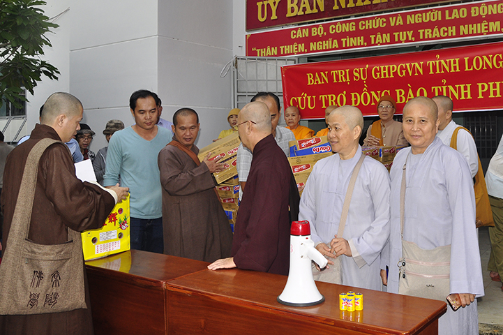 Chuyến cứu trợ đồng bào Miền Trung của Tăng Ni, Phật tử tỉnh Long An thành tựu tốt đẹp. Thay mặt ban tổ chức thành kính tri ân đến Chư Tôn Đức Tăng Ni Phật giáo các huyện, thị xã, thành phố, trực thuộc tỉnh Long An, quý ân nhân, quý mạnh thường quân Phật tử gần xa đã đóng góp tịnh tài, phẩm vật, giúp Ban tổ chức thực hiện chuyến đi này.
