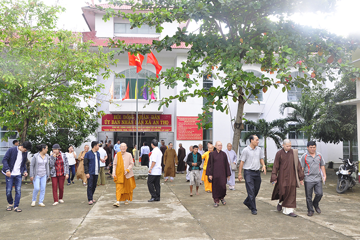 Tiếp đón phái đoàn có HT Thích Nguyên Đức – Ủy viên HĐTSTƯ, Phó Thường trực Ban Trị Sự GHPGVN tỉnh Phú Yên; ĐĐ Thích Chúc Phát – Phó Ban kiêm Chánh Thư ký BTS GHPGVN tỉnh Phú Yên; ông Nguyễn Ngọc Ngoạn- Chủ tịch UBMTTQVN huyện Tuy An; ông Nguyễn Phụng Hoàng- Chủ tịch xã An Thọ; , ông Lê Ngọc Phương- Chủ tịch UBND xã An Hải và đại diện An Hòa.