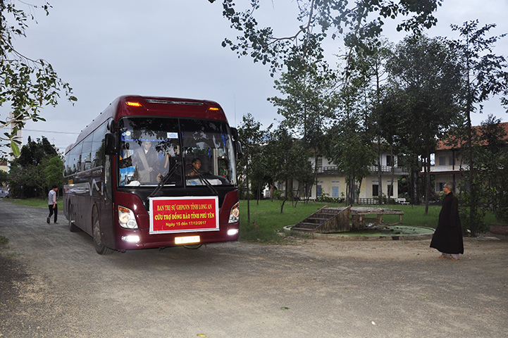 Thực hiện theo thông bạch của Hội đồng Trị sự TWGHPGVN dưới sự chỉ đạo của Ban thường trực BTS GHPGVN tỉnh Long An, Ban Từ Thiện GHPGVN tỉnh Long An do Thượng tọa Thích Quảng Tâm UVHĐTS phó Trưởng Ban Thường trực – Trưởng Ban Từ Thiện GHPGVN tỉnh Long An hướng dẫn phái đoàn Tăng Ni Phật tử tỉnh Long An cứu trợ đồng bào bị thiên tai bão, lũ tại tỉnh Phú Yên từ ngày 15-17/12/2017 số lượng 1000 phần quà. Tổng trị giá trên sáu trăm triệu đồng (600.000.000đ) do Tăng Ni các Ban Trị sự GHPGVN huyện, thị xã, thành phố ủng hộ (theo chỉ tiêu vận động mỗi huyện thị là 50.000.000 đồng) và Phật tử trong và ngoài tỉnh tài trợ. Tham dự đoàn có ông Huỳnh Văn Thừng, Phó Giám đốc Sở Nội vụ Trưởng Ban Tôn giáo tỉnh Long An, ông Nguyễn Văn Tâm Phó phòng Nghiệp vụ Ban Tôn giáo tỉnh Long An.