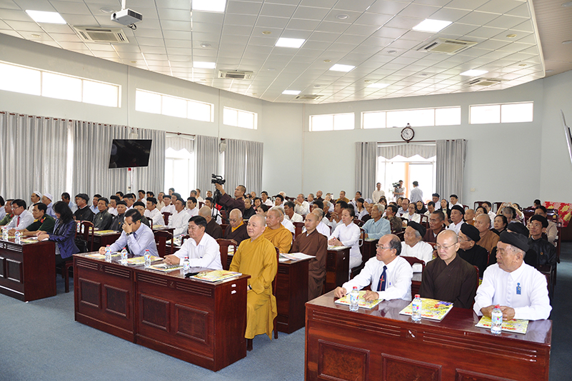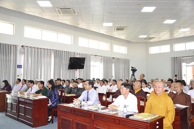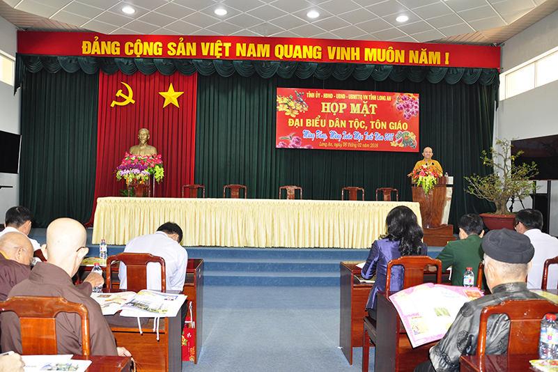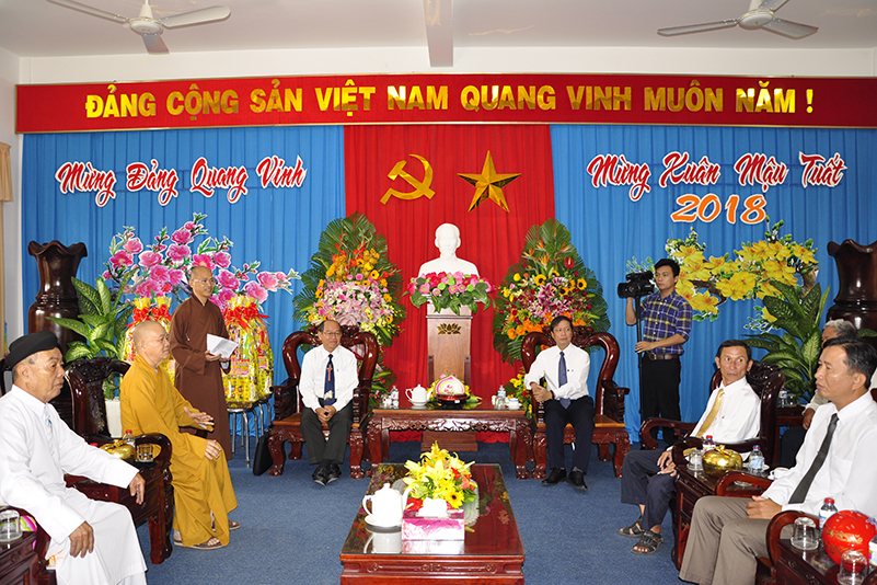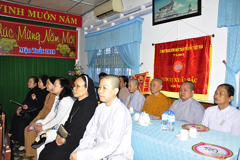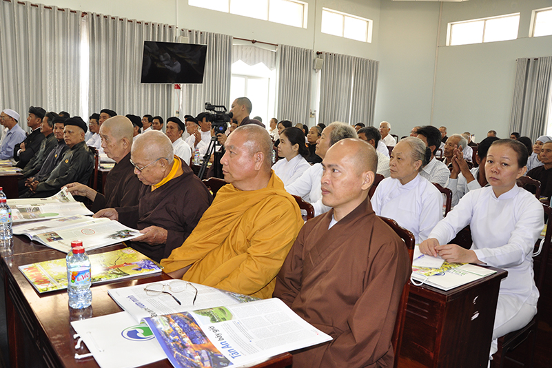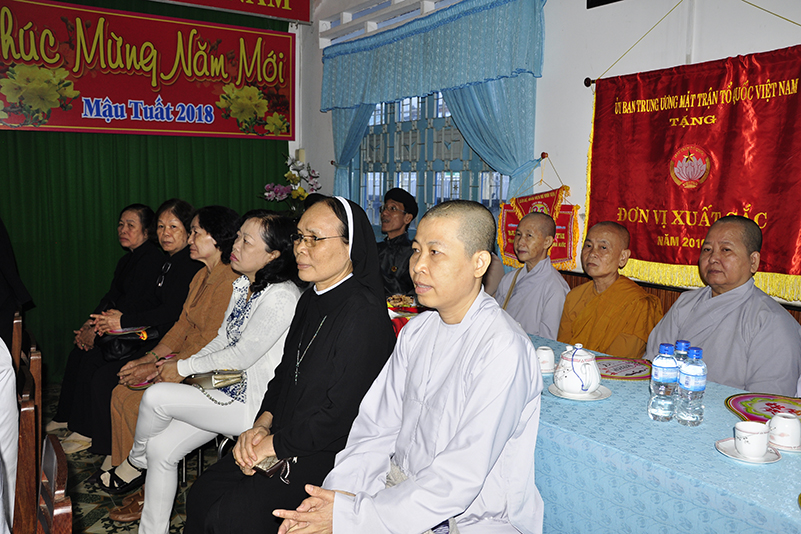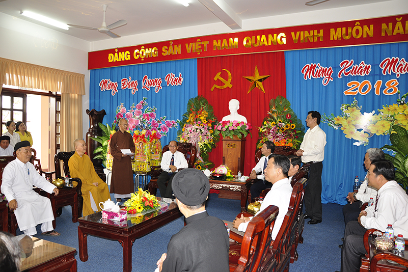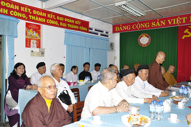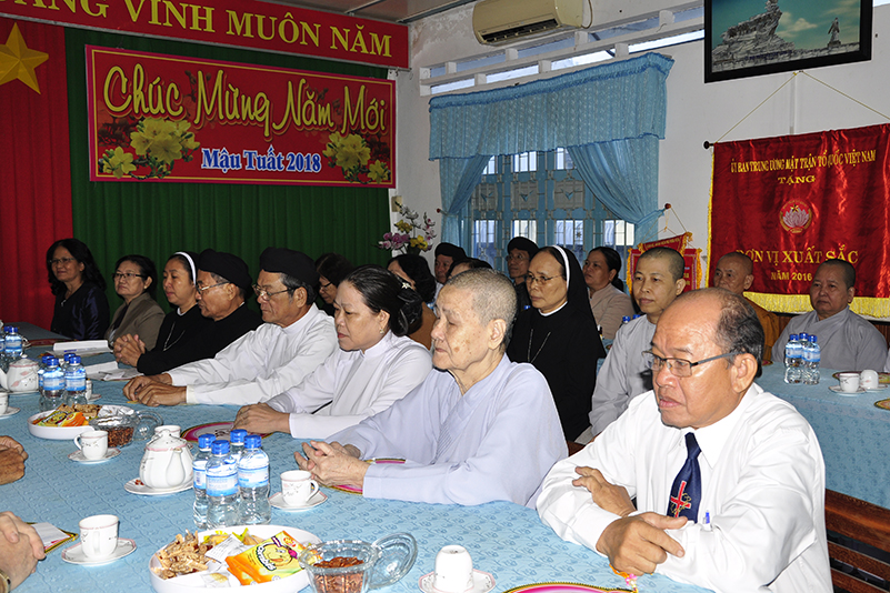 Quý cấp lãnh đạo đã thông tin, chia sẽ thành quả đạt được của tỉnh trong năm 2017 và kế hoạch năm 2018. Cũng dịp này, Hoà thượng Thích Minh Thiện đã cám ơn quý lãnh đạo đã tạo điều kiện cho các Tôn giáo hoạt động, phát triển theo pháp luật. Cũng từ đó tạo nên sự đoàn kết của các Tôn giáo, tạo thành mặt trận khối đại đoàn kết Dân tộc và buổi cơm thân mật.