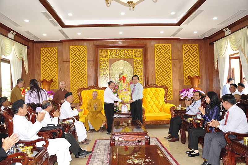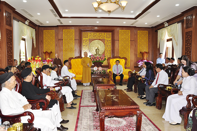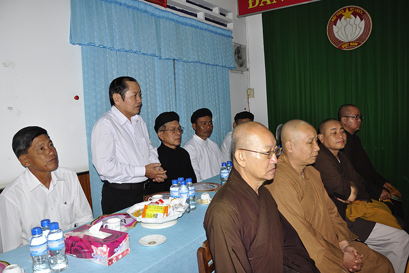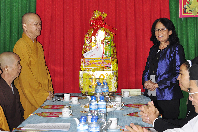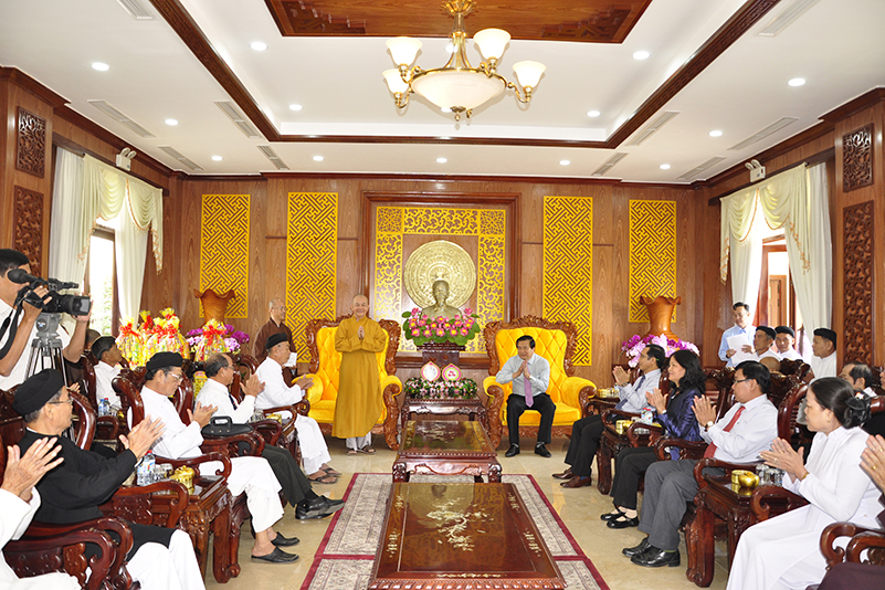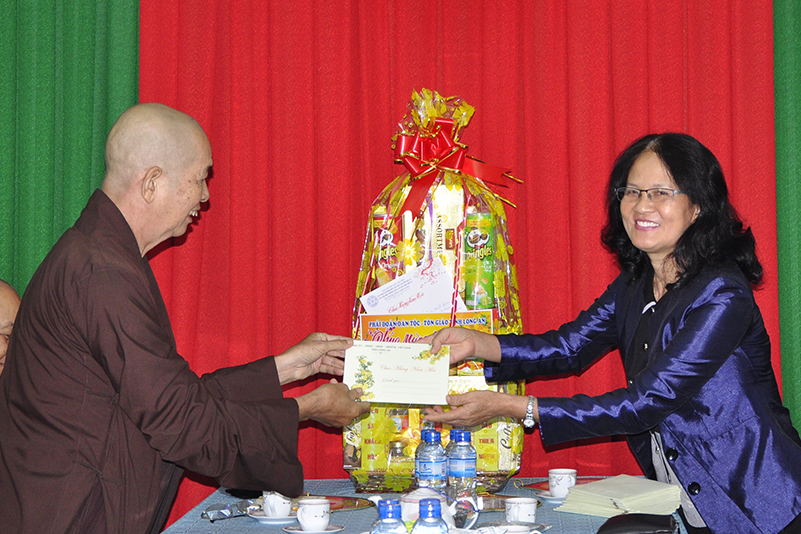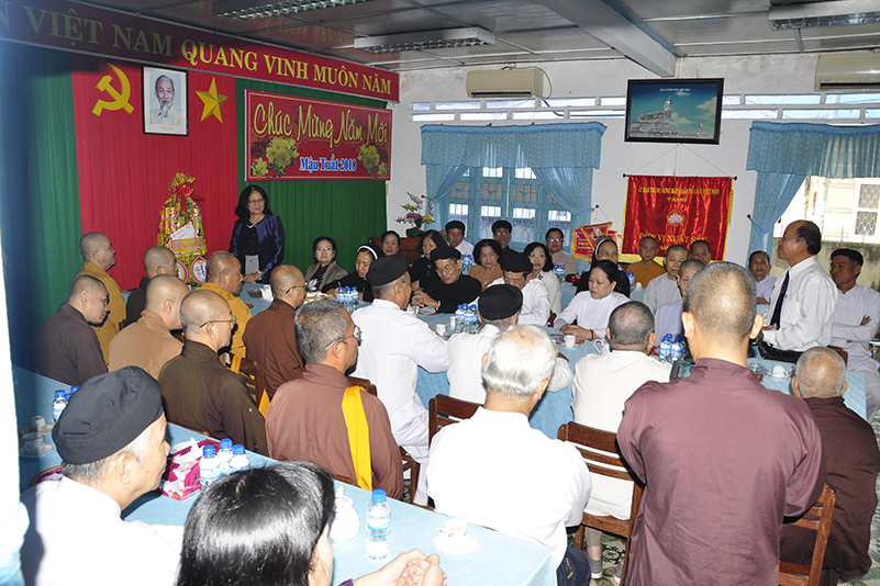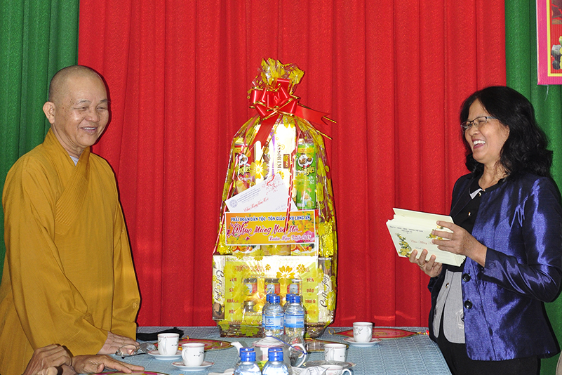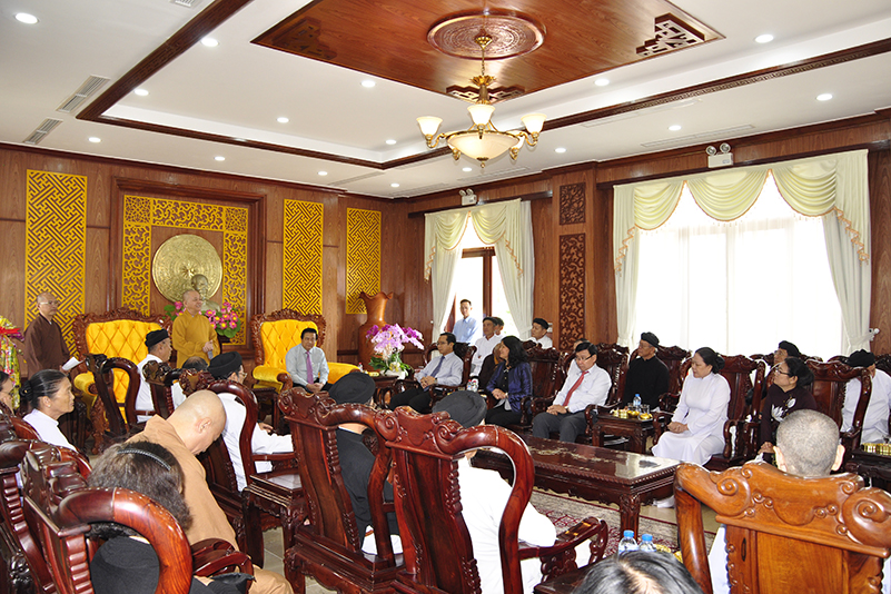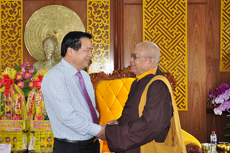 Cuối lời, Hòa thượng đại diện phái đoàn Tôn giáo Dân tộc, chúc quý vị lãnh đạo, an khang – thịnh vượng, có nhiều sức khỏe để tiếp tục cống hiện, chăm lo cho đồng bào nhân dân. Hòa thượng cũng gởi lời chúc đến thành viên gia đình của quý vị lãnh đạo.