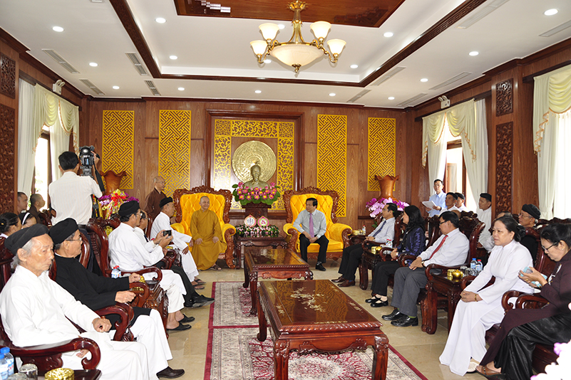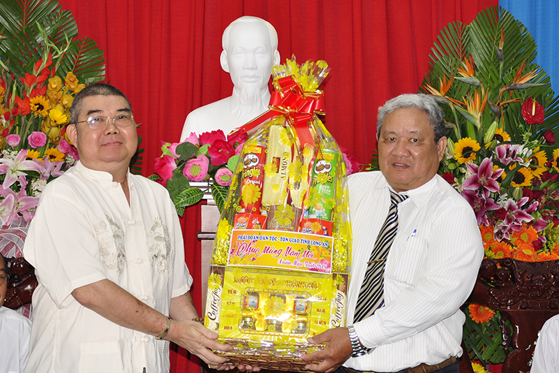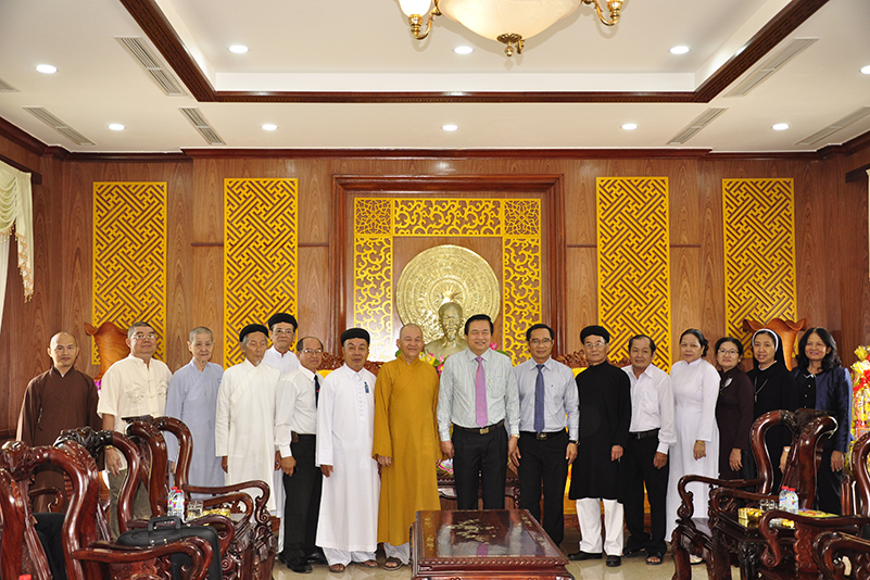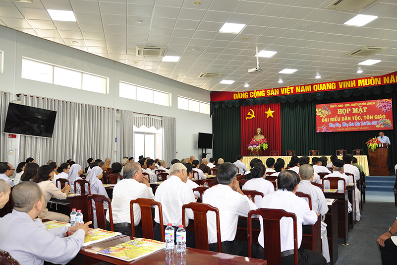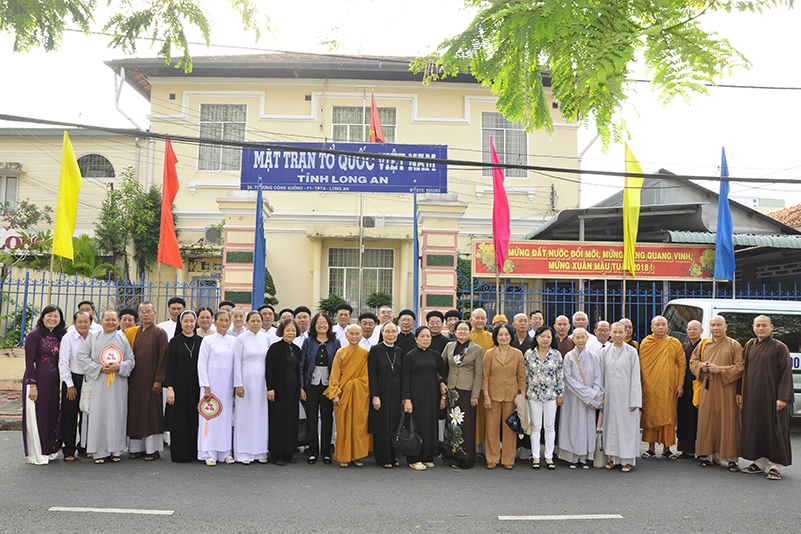 Phái đoàn gồm đại biểu các chức sắc của 12 Tôn giáo do Hòa thượng Thích Minh Thiện Trưởng ban trị sự GHPGVN tỉnh Long An làm trưởng đoàn. Tiếp đoàn có ông Phạm Văn Rạnh – Ủy viên TW Đảng, Bí thư Tỉnh ủy, Chủ tịch HĐND tỉnh Long An; ông Nguyễn Văn Được Ủy viên thường vụ Tỉnh ủy, Phó chủ tịch UBND tỉnh Long An; bà Nguyễn Thị Ngọc Hạnh – Ủy viên thường vụ Tỉnh Ủy, Trưởng ban Dân vận Tỉnh ủy cùng các cấp lãnh đạo tỉnh, Tp . Tân An.