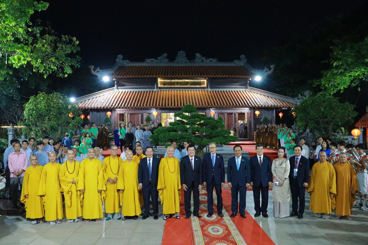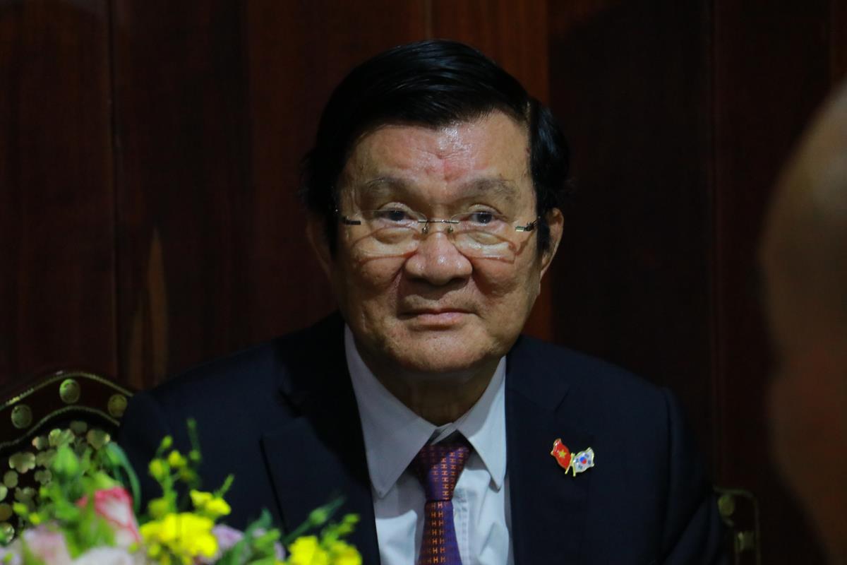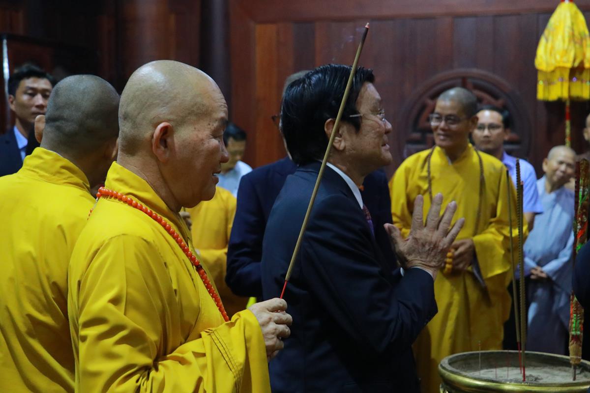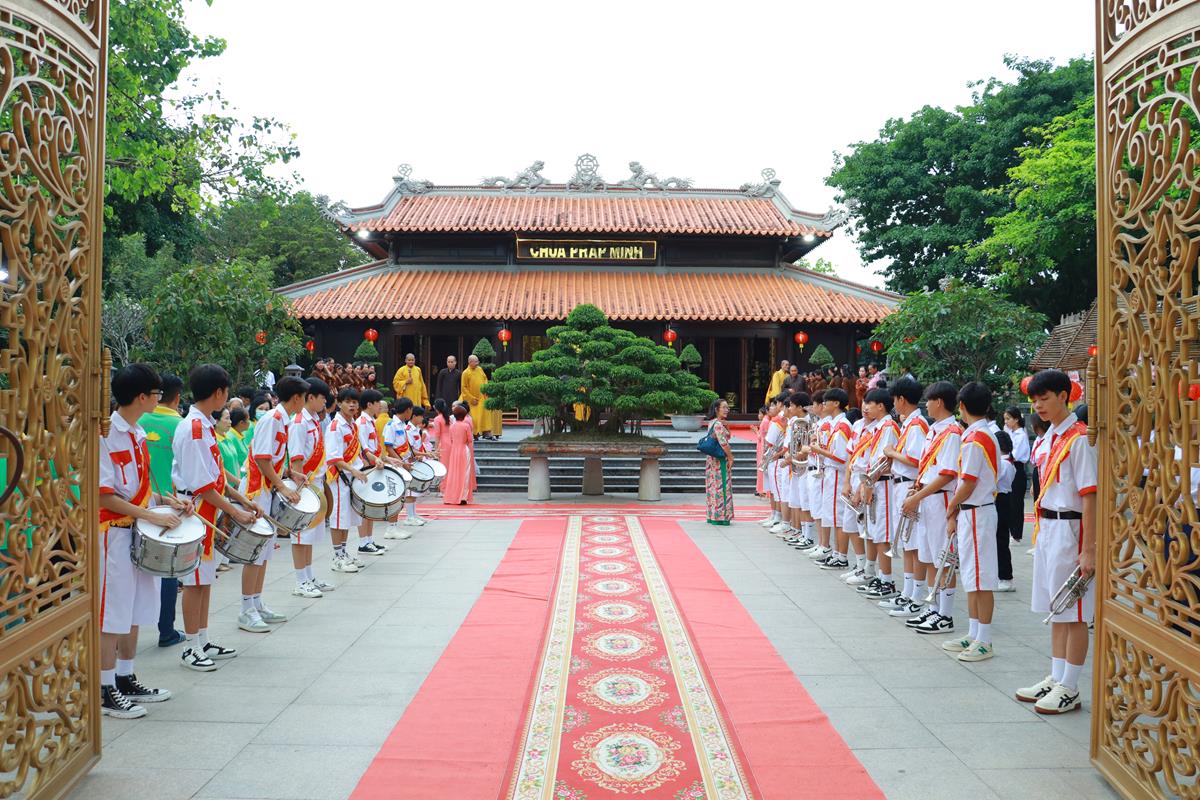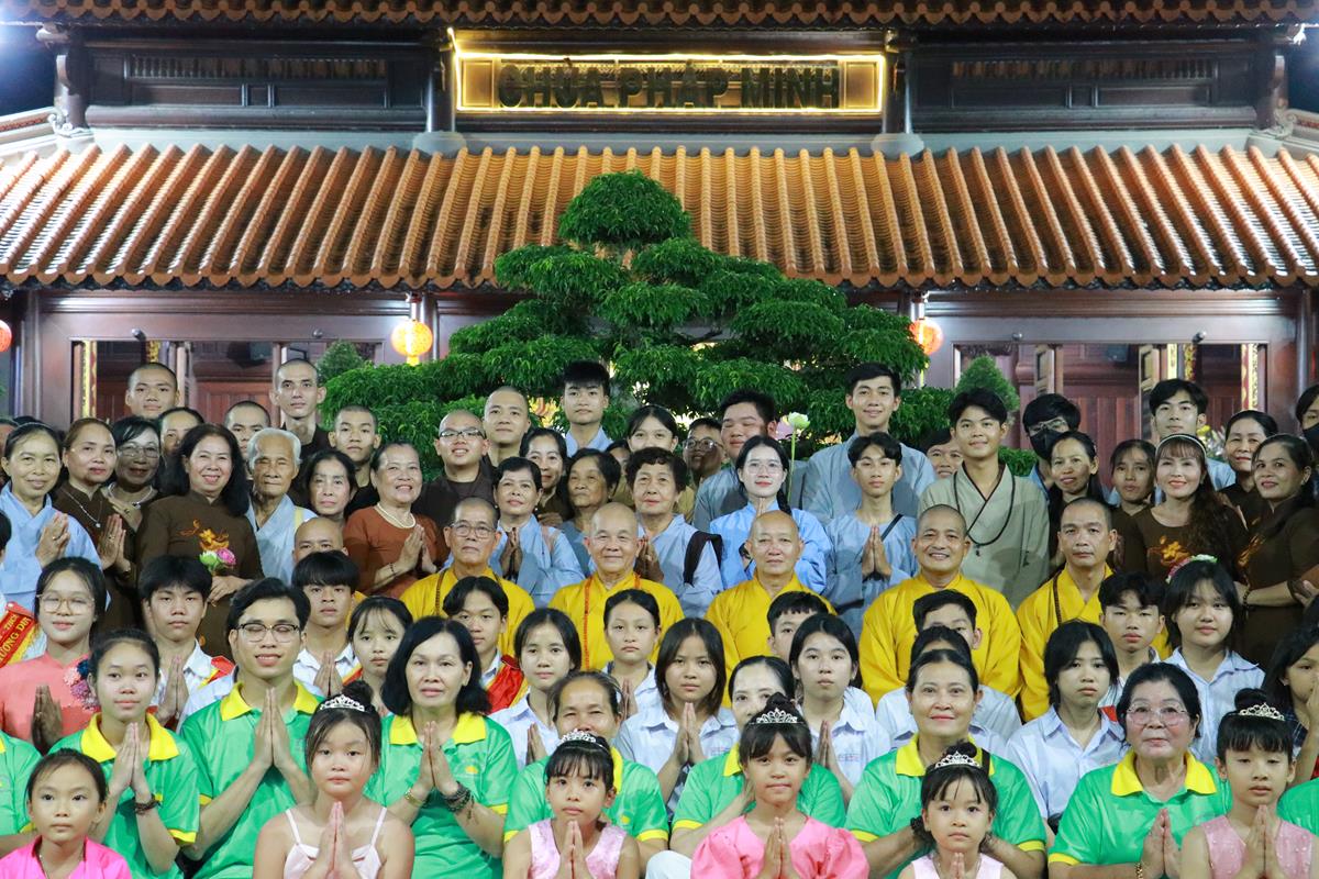 Tại buổi đón tiếp, HT. Thích Minh Thiện đã giới thiệu khái quát về quá trình hình thành và phát triển của chùa Pháp Minh. Chùa Pháp Minh do Hoà thượng Thích Liễu Lạc (1878-1937) thành lập vào năm 1933. Hòa thượng là ông 5 của Ngài Trương Tấn Sang (nội tổ của Ngài Trương Tấn Sang thứ 3). Trong thời kỳ chống thực dân Pháp (1948), chùa là địa điểm bí mật nuôi giấu dân quân kháng chiến. Bọn mật thám của giặc Pháp dò biết, quan huyện Đức Hoà ra lệnh cho Cai Nhung đem lính Mã Tà cướp phá chùa Pháp Minh và chở cột, kèo, mè… về huyện.