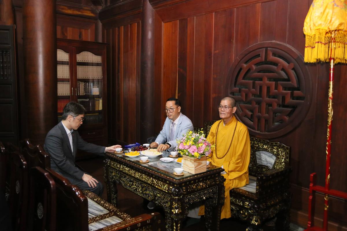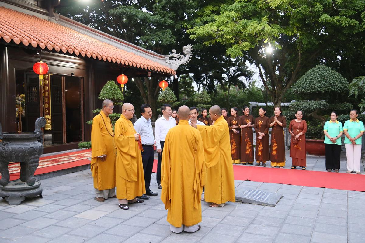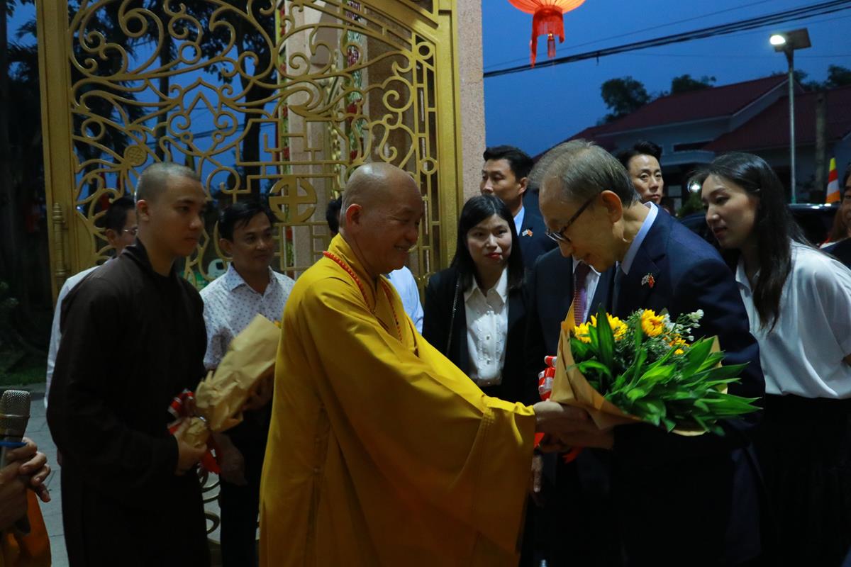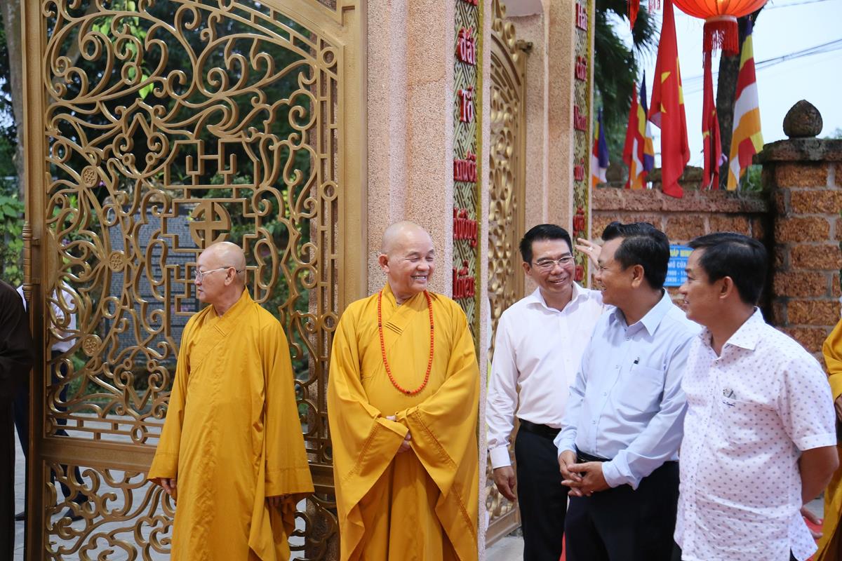 Đón tiếp phái đoàn có: HT. Thích Minh Thiện – UV HĐTS, Phó ban Hoằng pháp TW, Trưởng BTS GHPGVN tỉnh Long An; TT. Thích Quảng Tâm – UV HĐTS, Phó ban Từ thiện Xã hội TW, Phó Trưởng ban Thường trực BTS GHPGVN tỉnh Long An; TT. Thích Lệ Trí – UV HĐTS, Phó ban Văn hóa TW, Phó Trưởng BTS GHPGVN tỉnh Long An; ĐĐ. Thích Lệ Duyên – Phó ban kiêm Chánh Thư ký BTS GHPGVN tỉnh Long An, Trưởng BTS GHPGVN huyện Đức Hòa; TT. Thích Lệ Tấn – Trưởng BTS GHPGVN huyện Tân Thạnh; NT. TN. Như Hương – Chứng minh Phân ban Ni giới GHPGVN huyện Thạnh Hóa; chư Tôn đức Ban Thường trực BTS GHPGVN tỉnh Long An, huyện Đức Hòa, chư tôn đức Tăng Ni đồng tham dự đón tiếp.