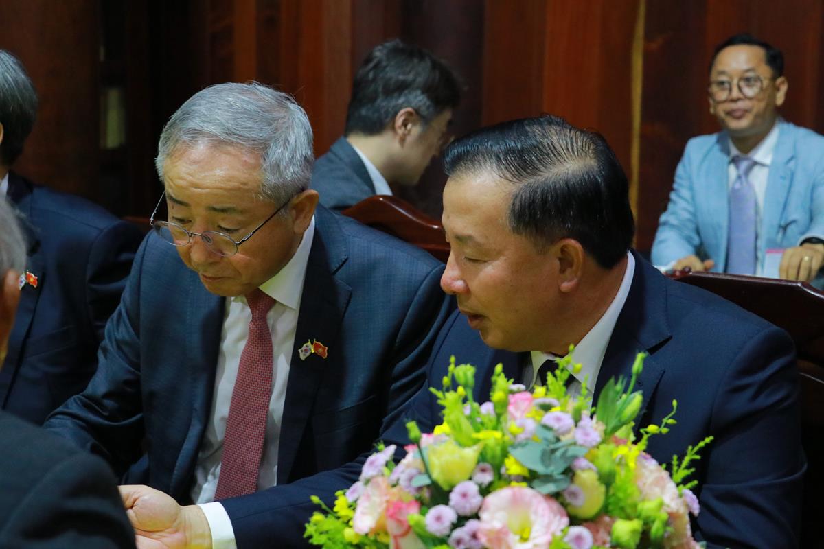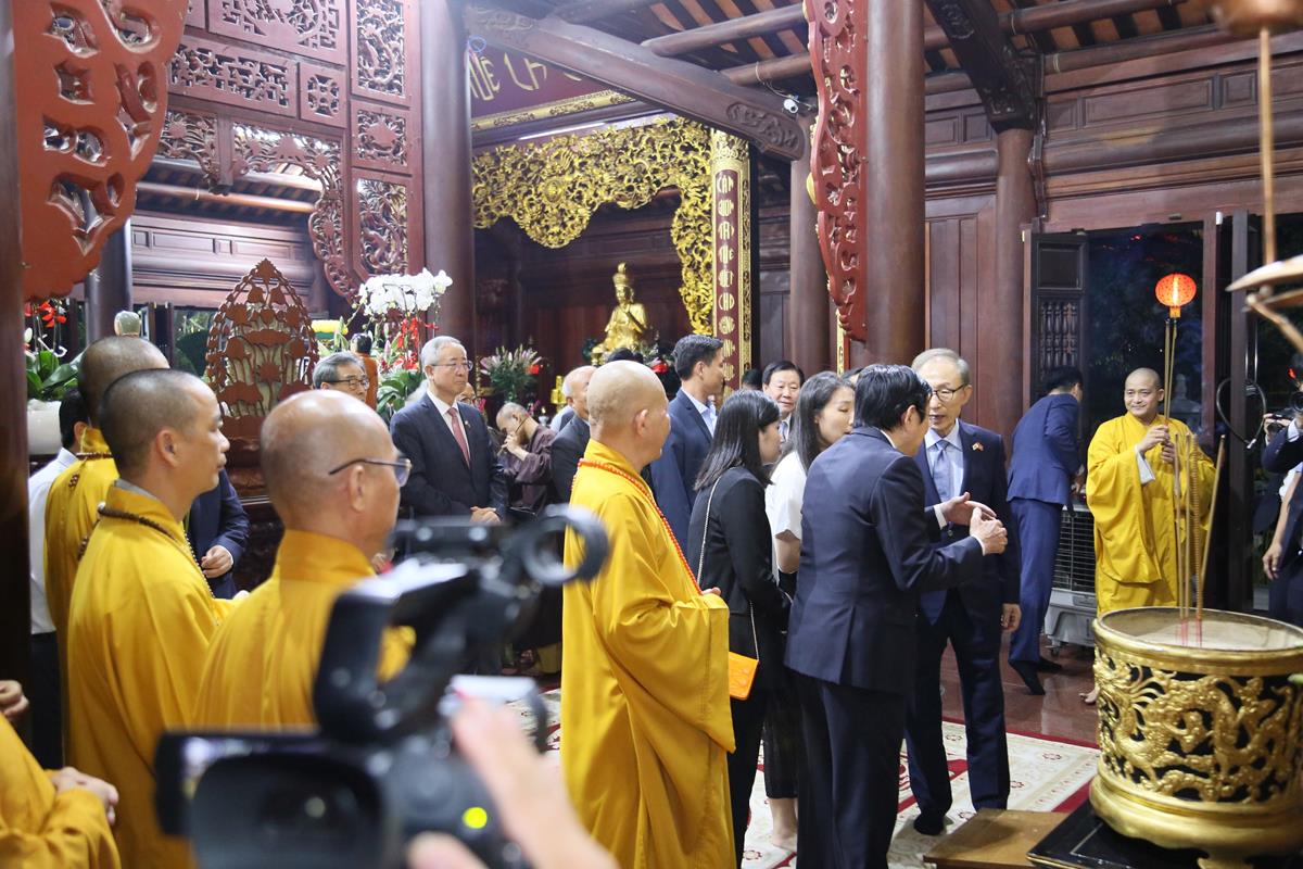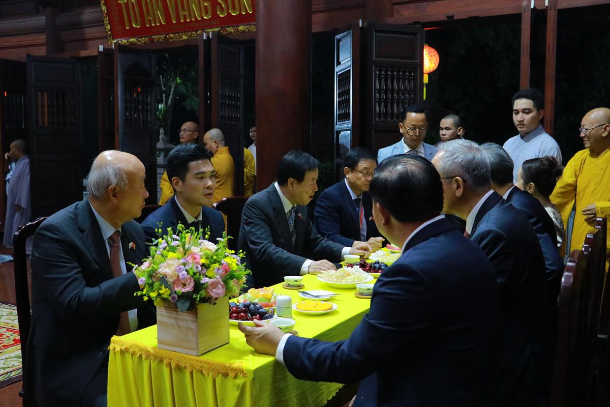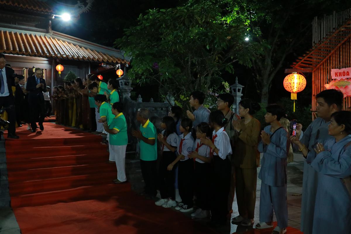 Đón tiếp phái đoàn có: HT. Thích Minh Thiện – UV HĐTS, Phó ban Hoằng pháp TW, Trưởng BTS GHPGVN tỉnh Long An; TT. Thích Quảng Tâm – UV HĐTS, Phó ban Từ thiện Xã hội TW, Phó Trưởng ban Thường trực BTS GHPGVN tỉnh Long An; TT. Thích Lệ Trí – UV HĐTS, Phó ban Văn hóa TW, Phó Trưởng BTS GHPGVN tỉnh Long An; ĐĐ. Thích Lệ Duyên – Phó ban kiêm Chánh Thư ký BTS GHPGVN tỉnh Long An, Trưởng BTS GHPGVN huyện Đức Hòa; TT. Thích Lệ Tấn – Trưởng BTS GHPGVN huyện Tân Thạnh; NT. TN. Như Hương – Chứng minh Phân ban Ni giới GHPGVN huyện Thạnh Hóa; chư Tôn đức Ban Thường trực BTS GHPGVN tỉnh Long An, huyện Đức Hòa, chư tôn đức Tăng Ni đồng tham dự đón tiếp.