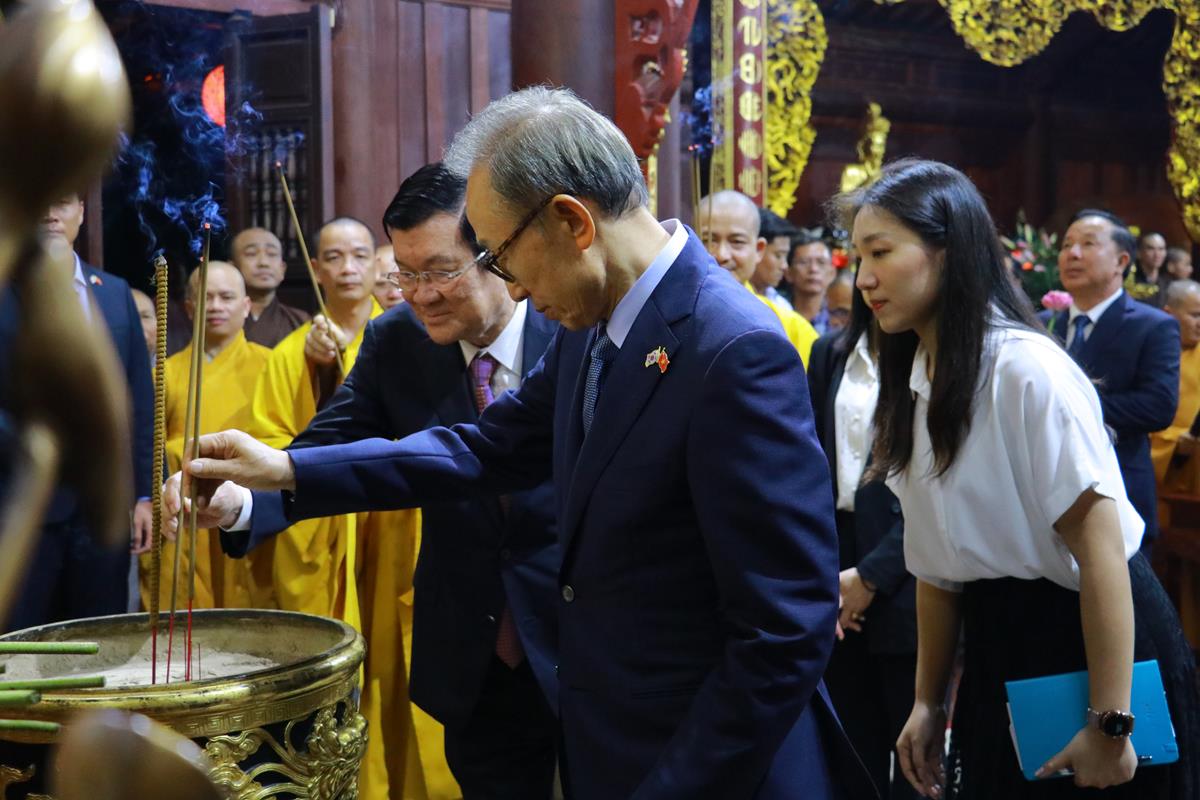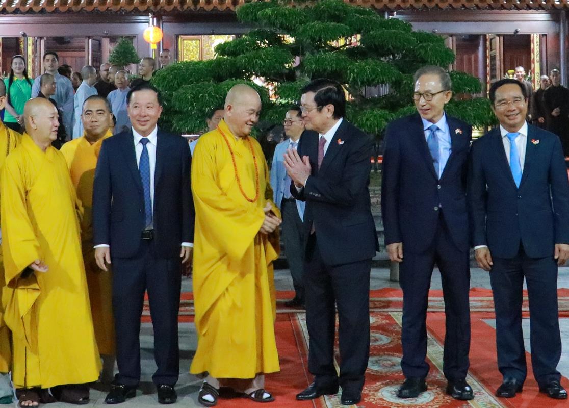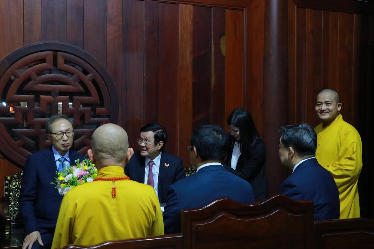 Chiều ngày 03/12/2023, Ban Trị sự GHPGVN tỉnh Long An, Ban Phật giáo Quốc tế GHPGVN tỉnh Long An, Ban Trị sự GHPGVN huyện Đức Hòa, Chư Tăng và Phật tử chùa Pháp Minh long trọng đón tiếp Ngài Trương Tấn Sang – Nguyên Ủy viên Bộ Chính trị, nguyên Chủ tịch nước Cộng Hòa Xã Hội Chủ Nghĩa Việt Nam; Ngài Lee Myung-Bak – Cựu Tổng thống Hàn Quốc nhân chuyến công tác tại Long An đã viếng thăm chùa Pháp Minh, ấp Giồng Lớn, xã Mỹ Hạnh Nam, huyện Đức Hòa, tỉnh Long An.