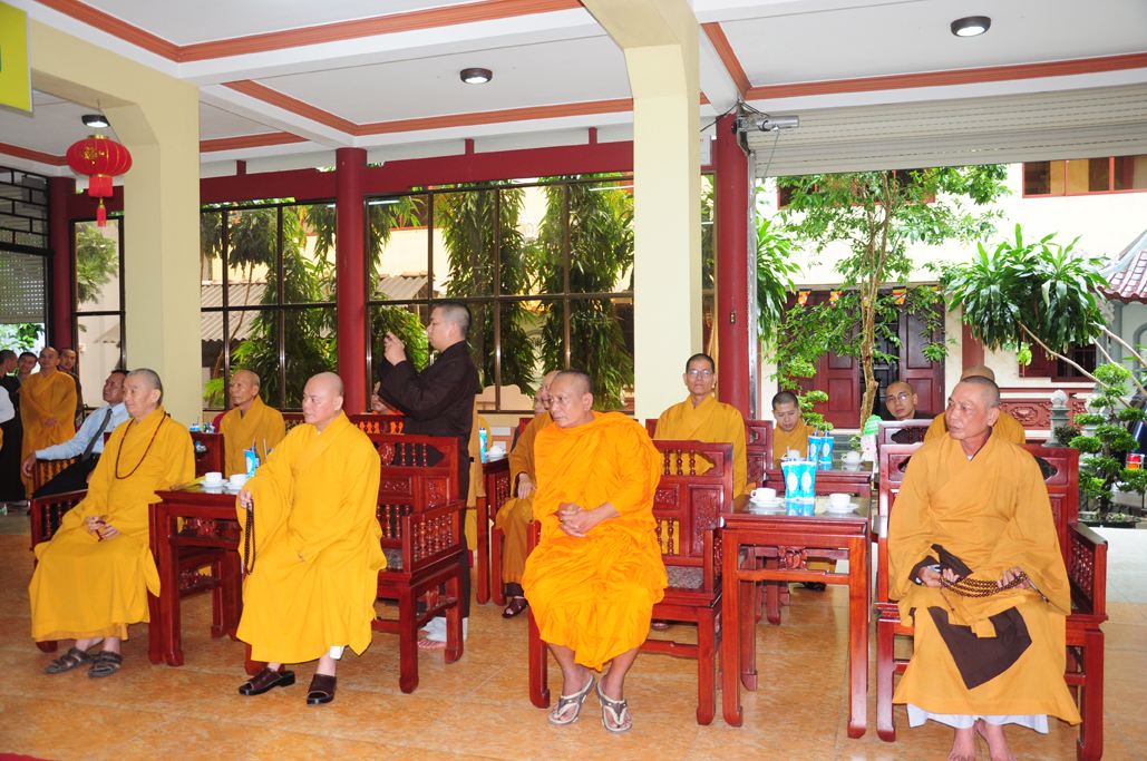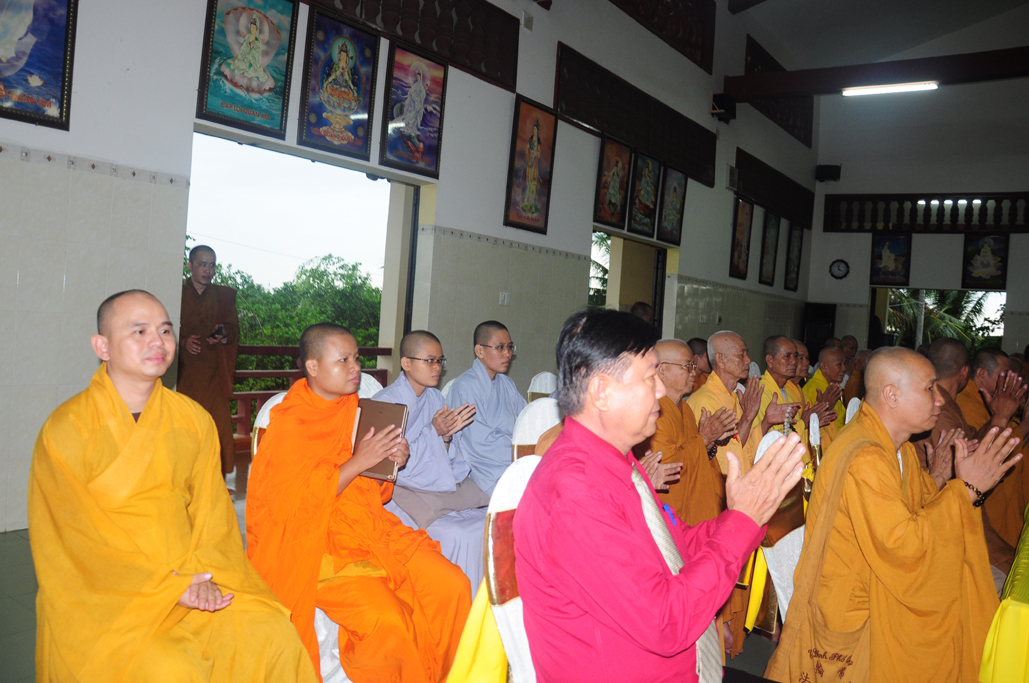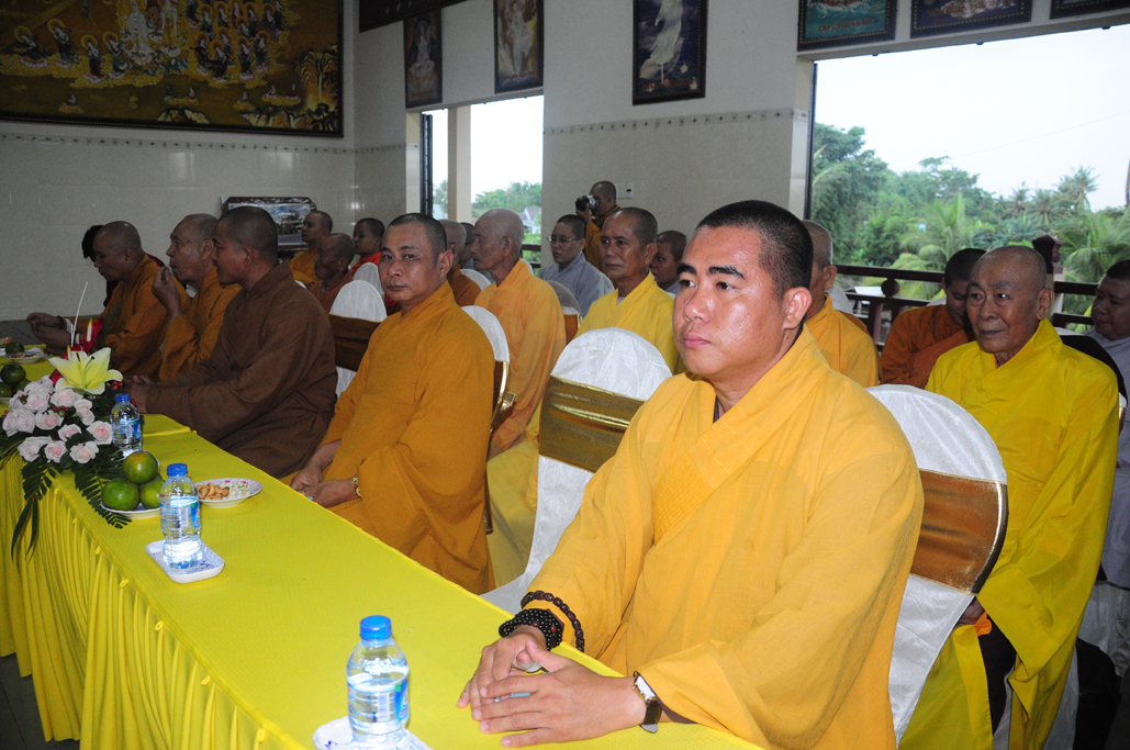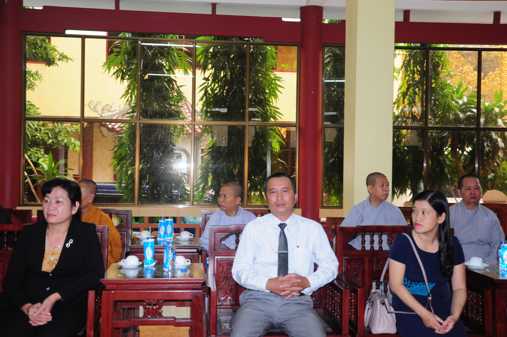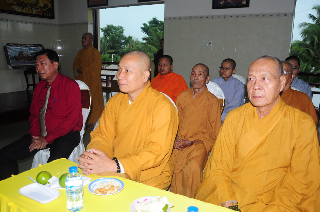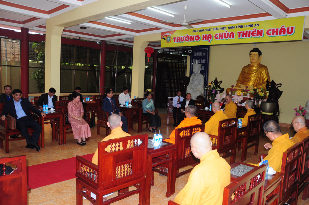 Tham dự buổi đón tiếp có sự hiện diện của HT Thích Thanh Hùng – UV TT HĐTS, Phó ban thường trực ban Hướng dẫn Phật tử TW, Phó ban Hoằng pháp TW; HT Thích Tấn Đạt – UV TT HĐTS, Phó văn phòng 2 TW, Phó ban thường trực ban Hoằng pháp TW; HT Danh Lung – UV Thường trực HĐTS, Phó văn phòng 2 TW; HT Thích Thiện Huệ – Chứng minh BTS GHPGVN tỉnh Long An; HT Thích Minh Thiện – UV HĐTS, Trưởng ban BTS GHPGVN tỉnh Long An, cùng Chư tôn đức Tăng Ni trong Ban Thường trực BTS GHPGVN tỉnh Long An.