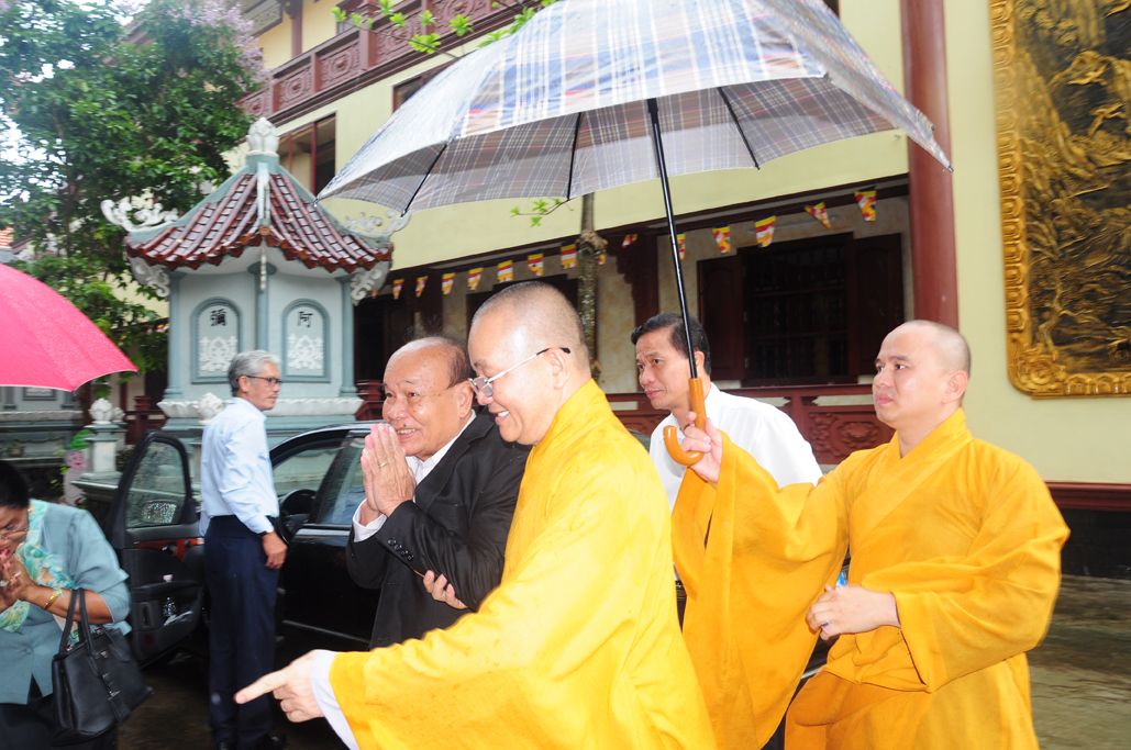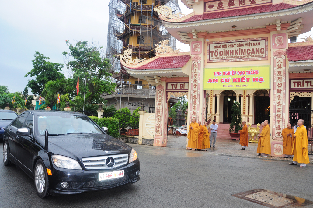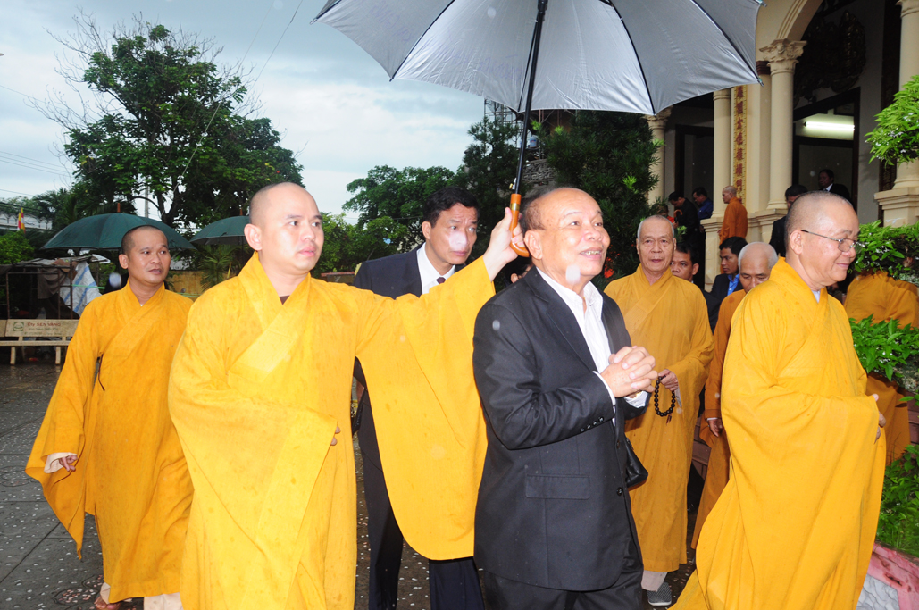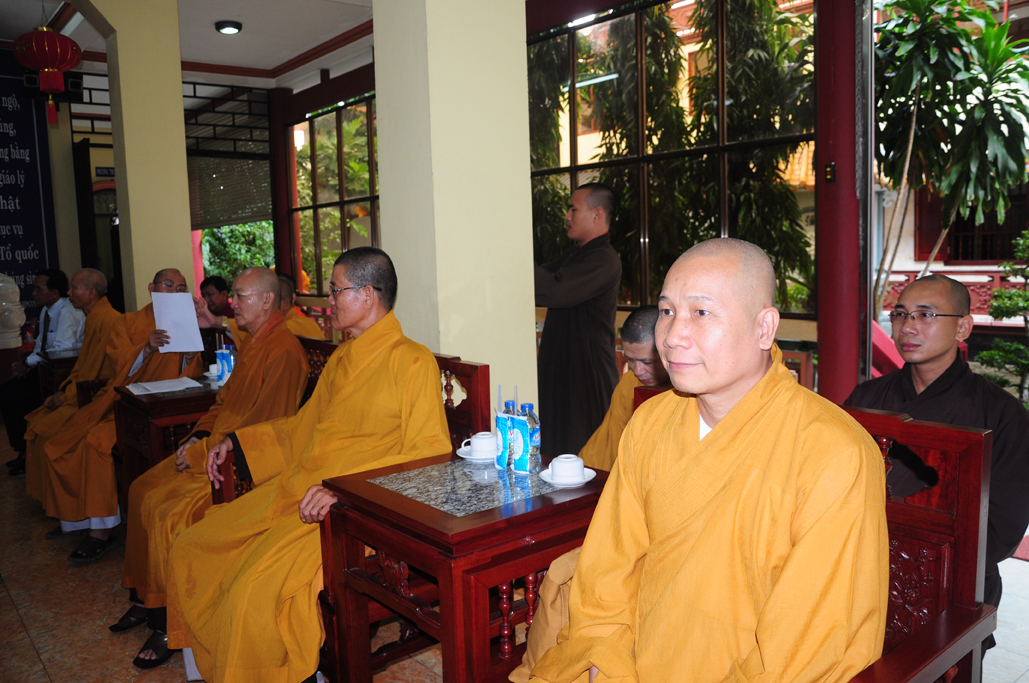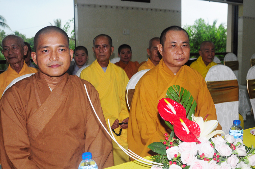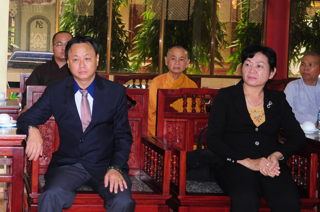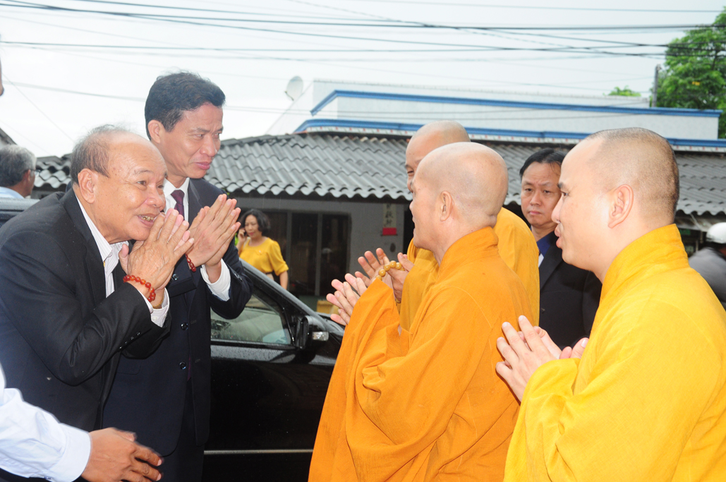 Tham dự buổi đón tiếp có sự hiện diện của HT Thích Thanh Hùng – UV TT HĐTS, Phó ban thường trực ban Hướng dẫn Phật tử TW, Phó ban Hoằng pháp TW; HT Thích Tấn Đạt – UV TT HĐTS, Phó văn phòng 2 TW, Phó ban thường trực ban Hoằng pháp TW; HT Danh Lung – UV Thường trực HĐTS, Phó văn phòng 2 TW; HT Thích Thiện Huệ – Chứng minh BTS GHPGVN tỉnh Long An; HT Thích Minh Thiện – UV HĐTS, Trưởng ban BTS GHPGVN tỉnh Long An, cùng Chư tôn đức Tăng Ni trong Ban Thường trực BTS GHPGVN tỉnh Long An.