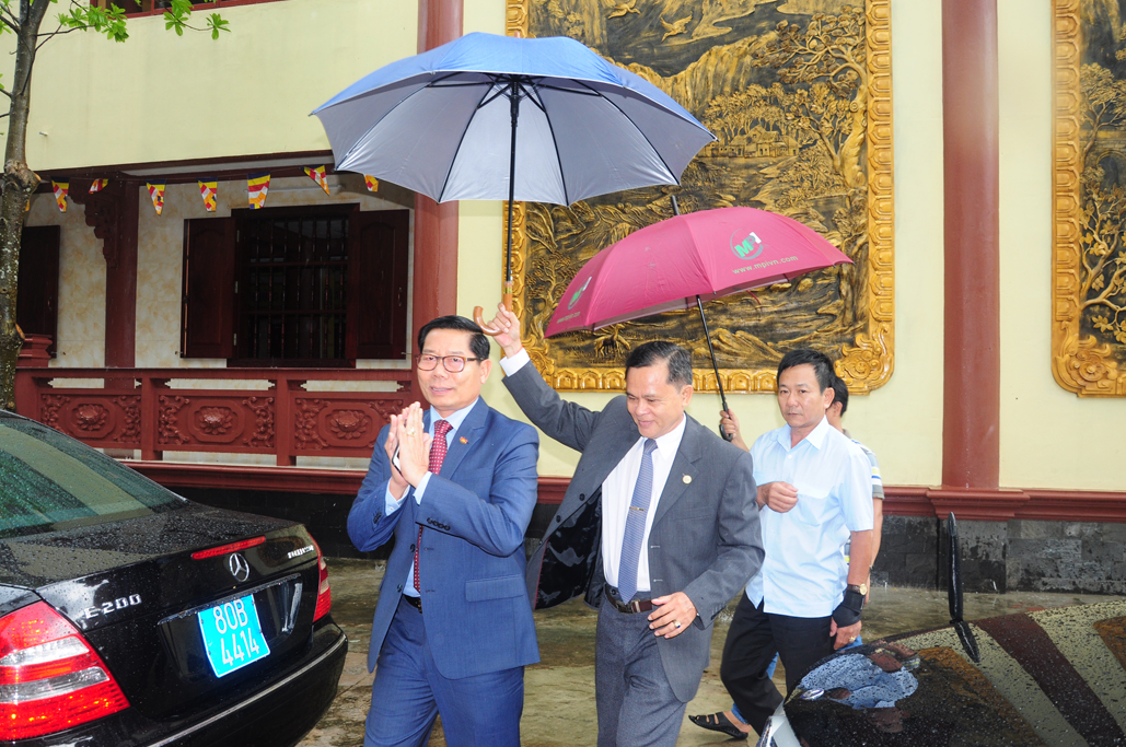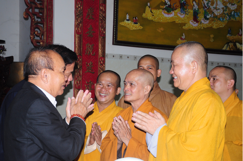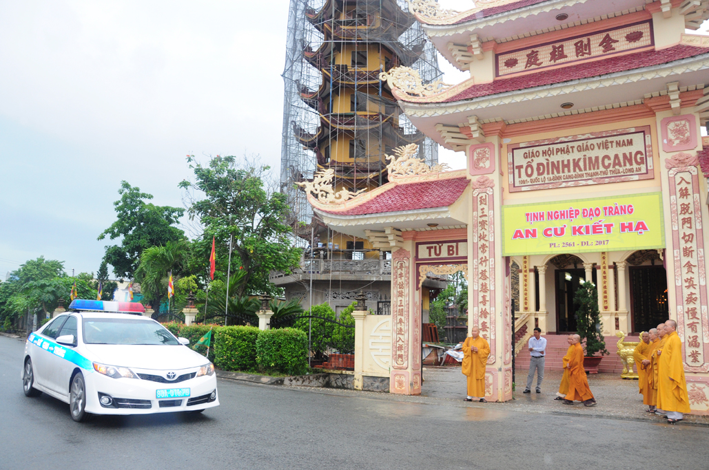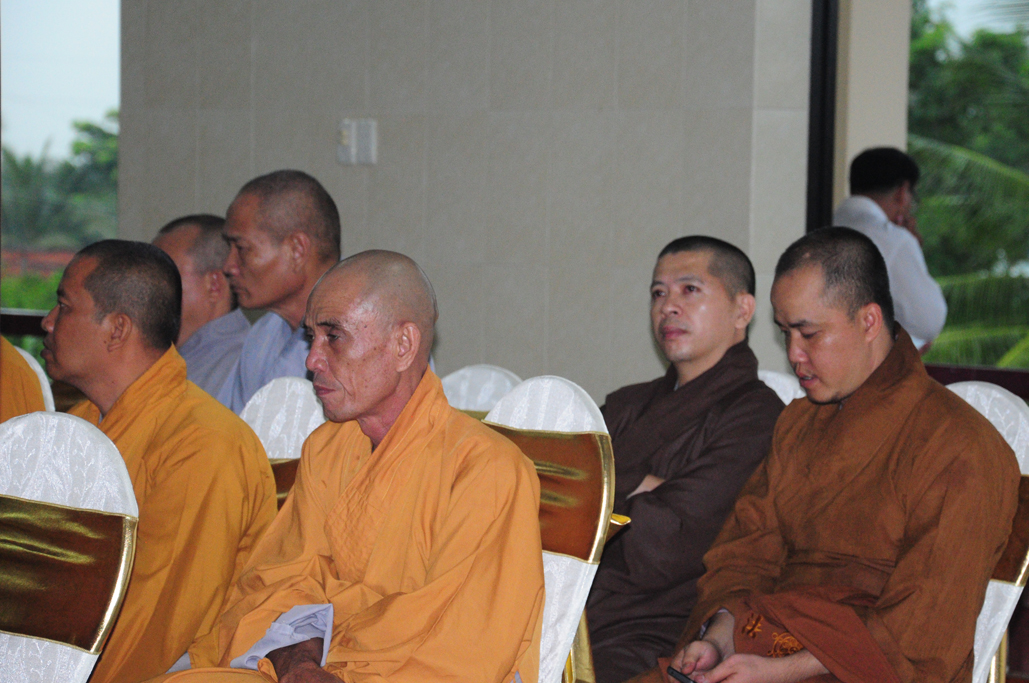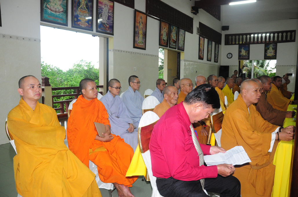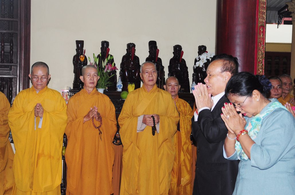 Tham dự buổi đón tiếp có sự hiện diện của HT Thích Thanh Hùng – UV TT HĐTS, Phó ban thường trực ban Hướng dẫn Phật tử TW, Phó ban Hoằng pháp TW; HT Thích Tấn Đạt – UV TT HĐTS, Phó văn phòng 2 TW, Phó ban thường trực ban Hoằng pháp TW; HT Danh Lung – UV Thường trực HĐTS, Phó văn phòng 2 TW; HT Thích Thiện Huệ – Chứng minh BTS GHPGVN tỉnh Long An; HT Thích Minh Thiện – UV HĐTS, Trưởng ban BTS GHPGVN tỉnh Long An, cùng Chư tôn đức Tăng Ni trong Ban Thường trực BTS GHPGVN tỉnh Long An.