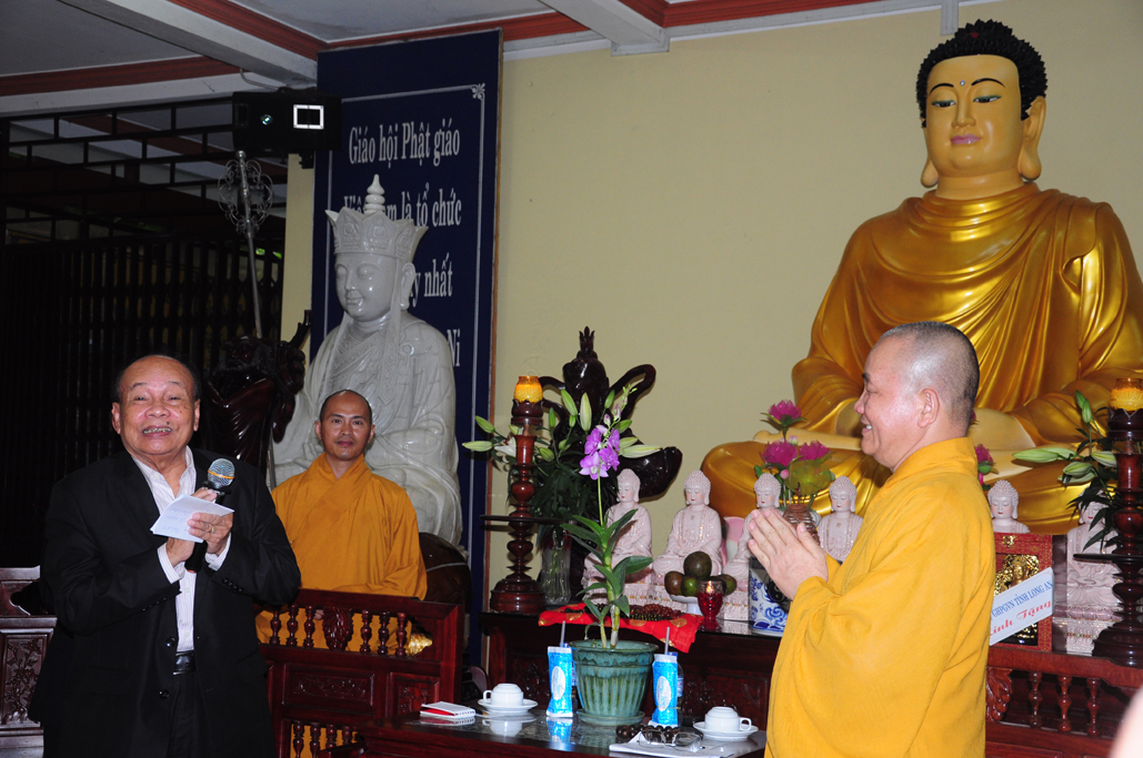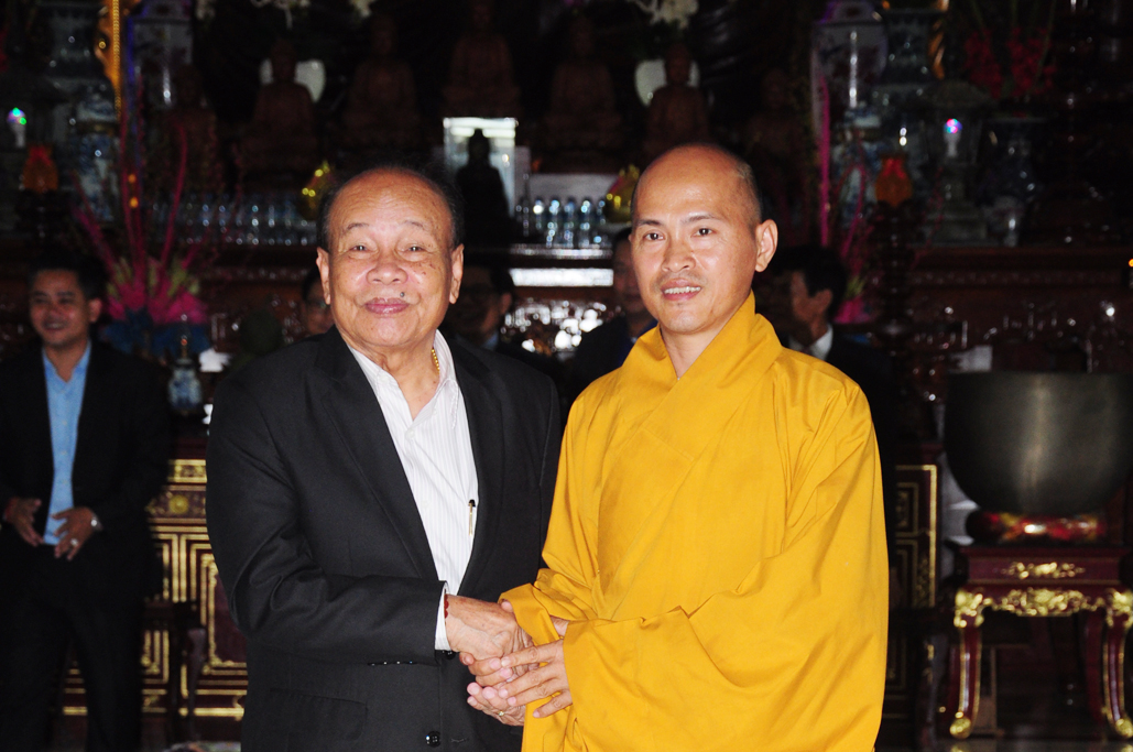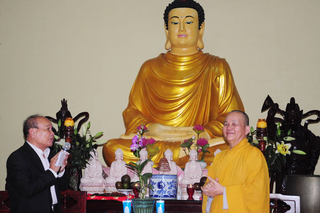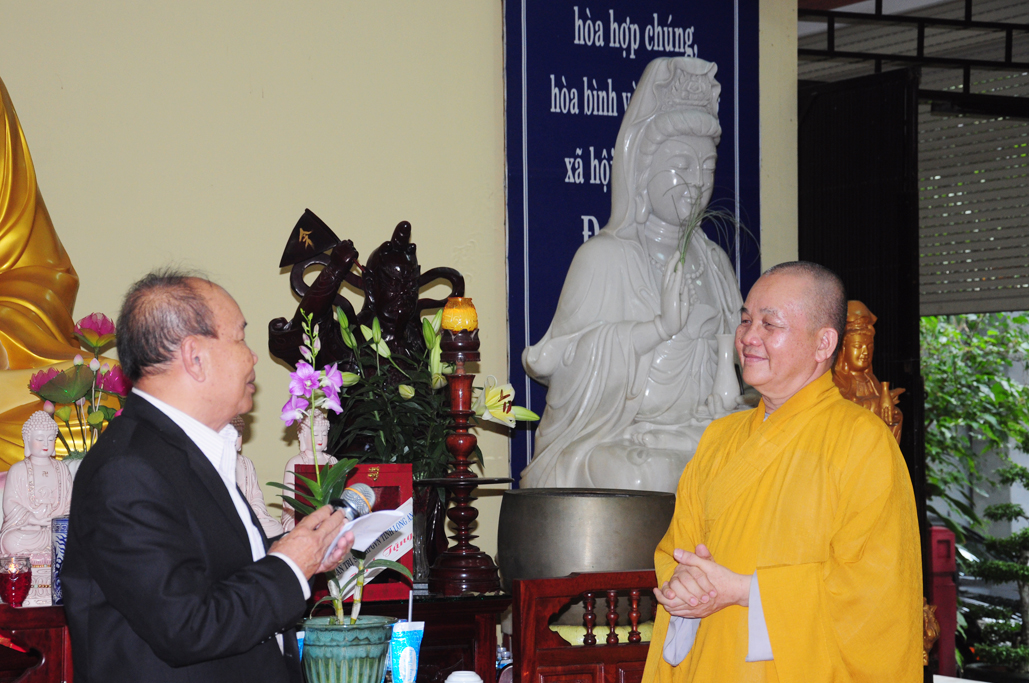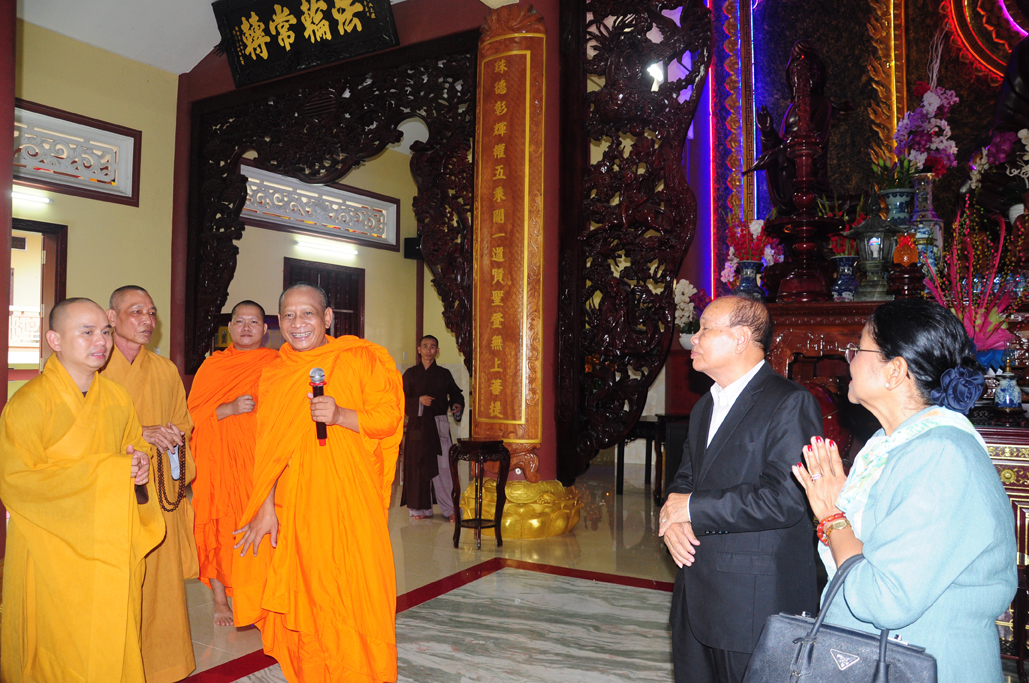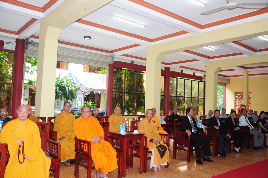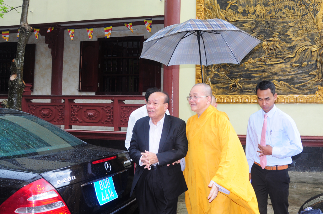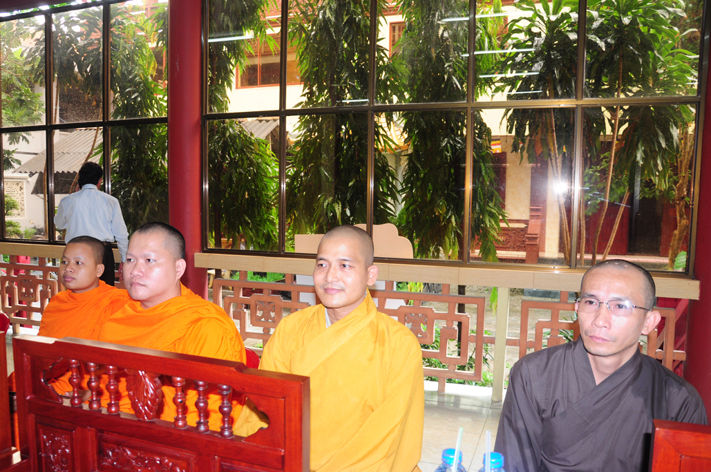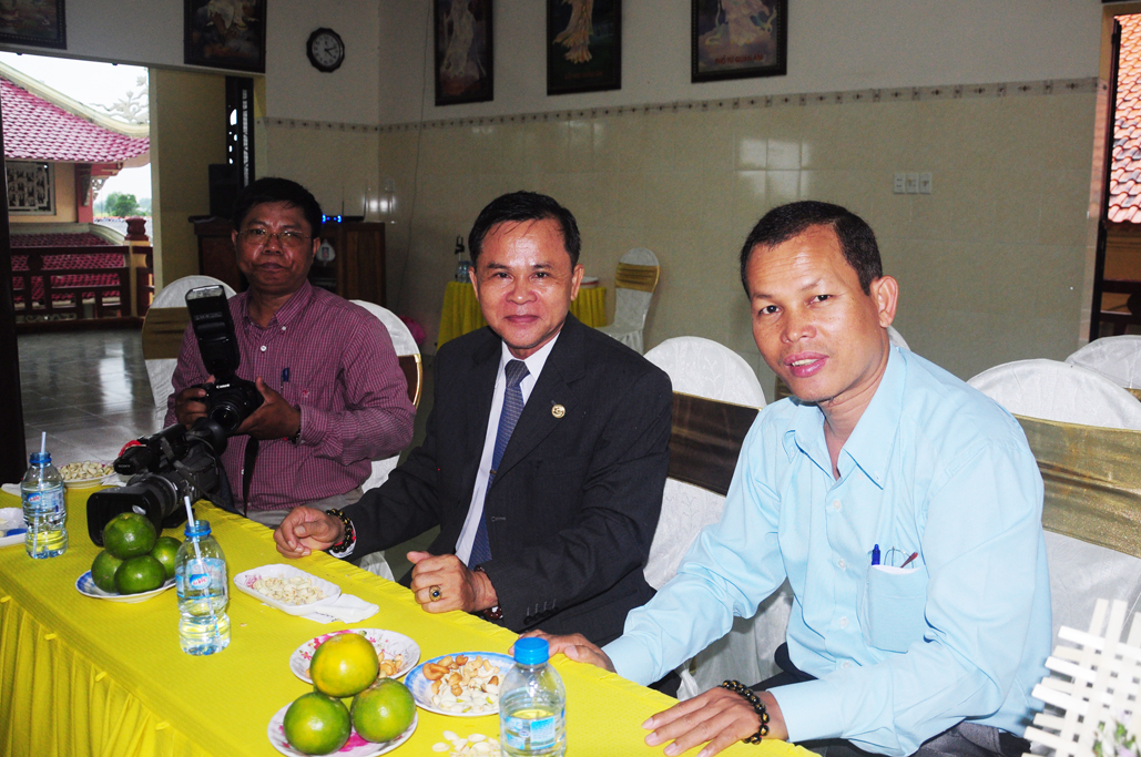 HT Thích Minh Thiện đã phát biểu chào mừng sự viếng thăm của Đoàn. Hoà thượng tán thán về mối quan hệ thân thiết của hai dân tộc từ thời kháng chiến chống thực dân đế quốc đến 2 nước được độc lập như hôm nay. Trong đó, tỉnh Long An là một tỉnh miền Tây nước Việt Nam có biên giới tiếp giáp với nước Campuchia, chịu ảnh hưởng nền văn hóa sông Mekong và tín ngưỡng Phật giáo rất đậm đà theo tinh thần từ bi và trí huệ của Đạo Phật Nam, Bắc truyền. Cho nên, mối bang giao hữu nghị giữa Chính quyền, nhân dân của tỉnh Long An và các tỉnh biên giới nước Campuchia về mặt kinh tế xã hội, từ thiện và tôn giáo…xưa nay rất tốt đẹp.