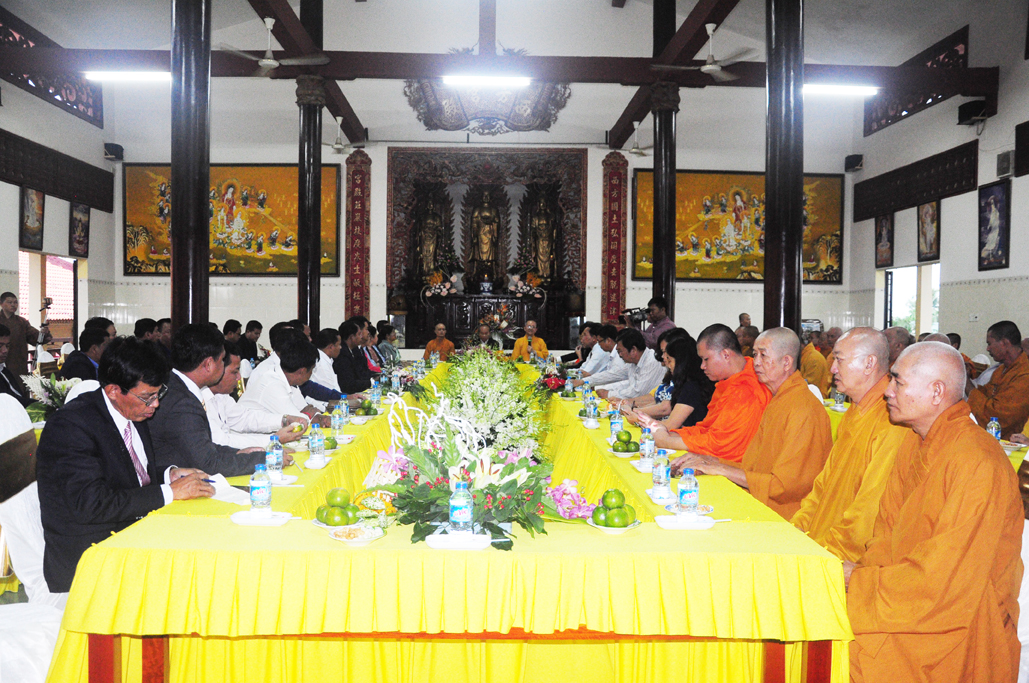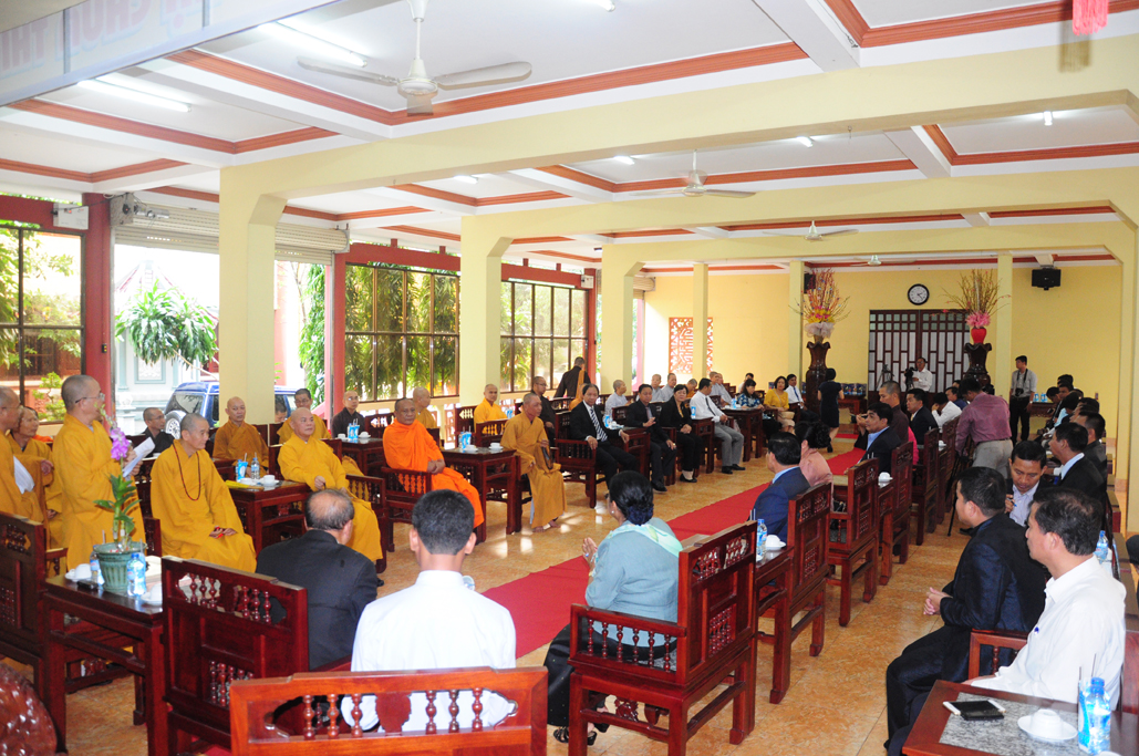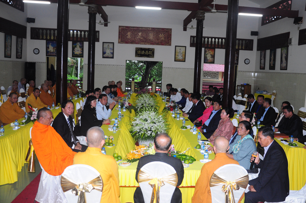 Chư tôn đức GHPGVN tỉnh Long An cùng Ngài Bộ trưởng Bộ Lễ nghi và tôn giáo Vương quốc Campuchia đã có sự trao đổi thân mật trong tinh thần hữu nghị đoàn kết và đạo vị.