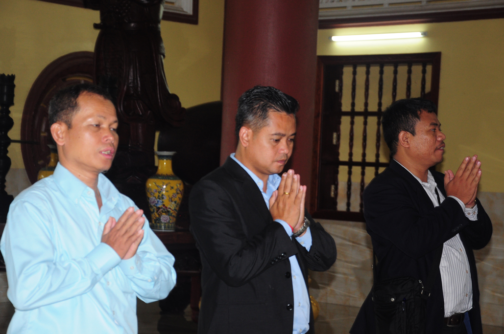 Sau đó, đoàn đã đến chánh điện chùa Thiên Châu đãnh lễ Tam bảo và cầu nguyện.