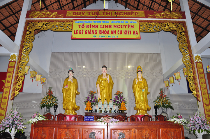 Chứng minh đại lễ, Ban tổ chức được cung tiếp: Hòa thượng Thích Thiện Huệ: Chứng minh Ban Trị sự Giáo hội Phật giáo Việt Nam tỉnh Long An; Hoà thượng Thích Minh Thiện: Uỷ viên trực Hội Đồng Trị sự Trung ương, Phó ban Hoằng pháp kiêm Trưởng giảng sư đoàn Trung ương giáo hội Phật giáo Việt Nam, Trưởng ban Trị sự Giáo hội Phật giáo Việt Nam tỉnh Long An; Hòa thượng Thích Thiện Tâm:Phó ban Trị sự Giáo hội Phật giáo Việt Nam tỉnh Long An; Hòa thượng Thích Thiện Phúc: Ủy viện ban Trị sự Giáo hội Phật giáo Việt Nam tỉnh Long An, Trưởng ban Trị sự Giáo hội Phật giáo liên huyện Đức Hòa, Đức Huệ; Hòa thượng Thích Chơn Đạo: Giáo thọ trường trung cấp Phật học Long An; Hòa thượng Thích Quãng Ý: Trưởng ban Trị sự Giáo hội Phật giáo Việt Nam liên huyện: Kiến Tường, Vĩnh Hưng, Tân Thạnh; Hòa thượng Thích Thiện Tài: quyền Trưởng ban Nghi lễ Giáo hội Phật giáo Việt Nam tỉnh Long An; Hòa thượng Thích Từ Thiện: Trưởng ban Trị sự Giáo hội Phật giáo Việt Nam huyện Tân Trụ; Đại đức Thích Lệ Trí: Uỷ viên Hội đồng Trị sự Trung ương Giáo hội Phật giáo Việt Nam, Trưởng ban Hoằng pháp Giáo hội Phật giáo Việt Nam tỉnh Long An; cùng chư giáo phẩm tỉnh/ huyện, chư tôn thiền đức Tăng Ni.
