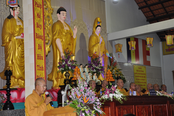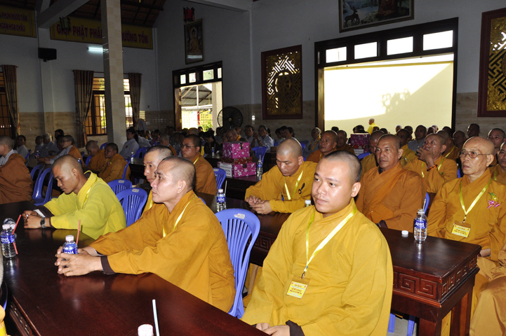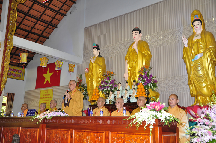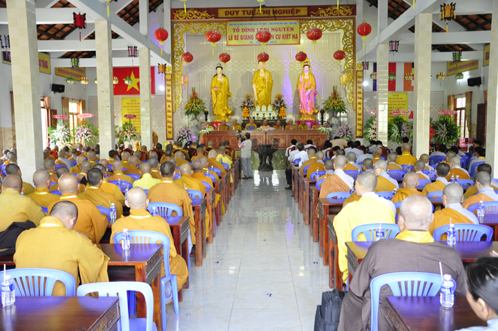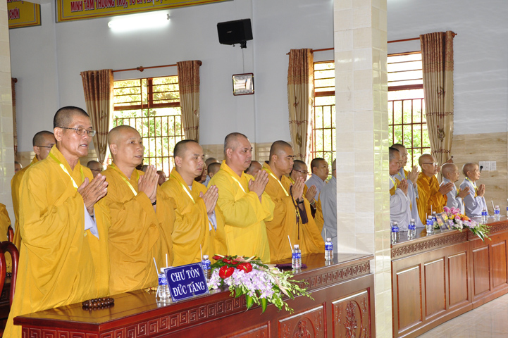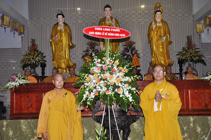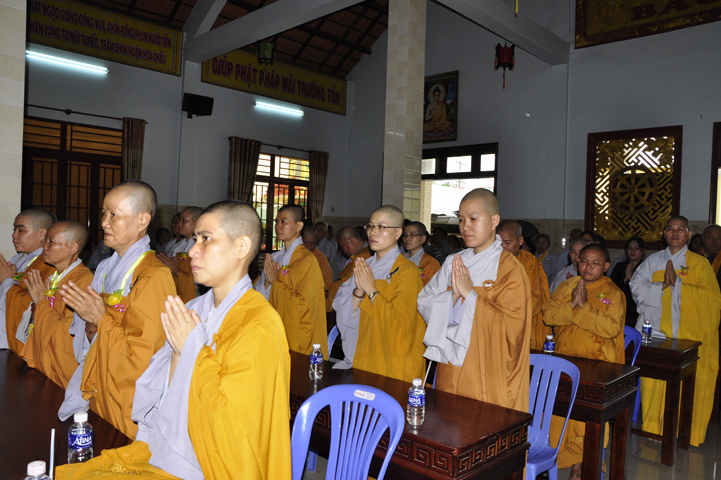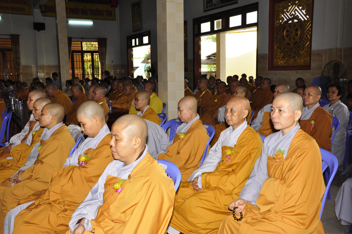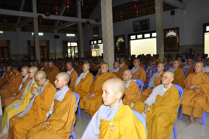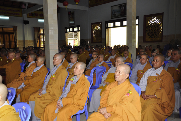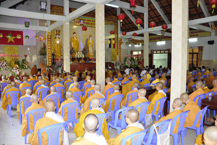Buổi lễ, được Hòa thượng Thích Thiện Huệ – Chứng minh Ban Trị sự Giáo hội Phật giáo Việt Nam tỉnh Long An huấn từ. Hòa thượng đã hoan hỷ công đức tu tập đại chúng Tăng Ni, và sự hộ đạo của đồng bào Phật tử. Hòa thượng cũng nhắc lại tinh thần Tỳ Ni Luật tạng và pháp Lục hòa trong Tăng đoàn.